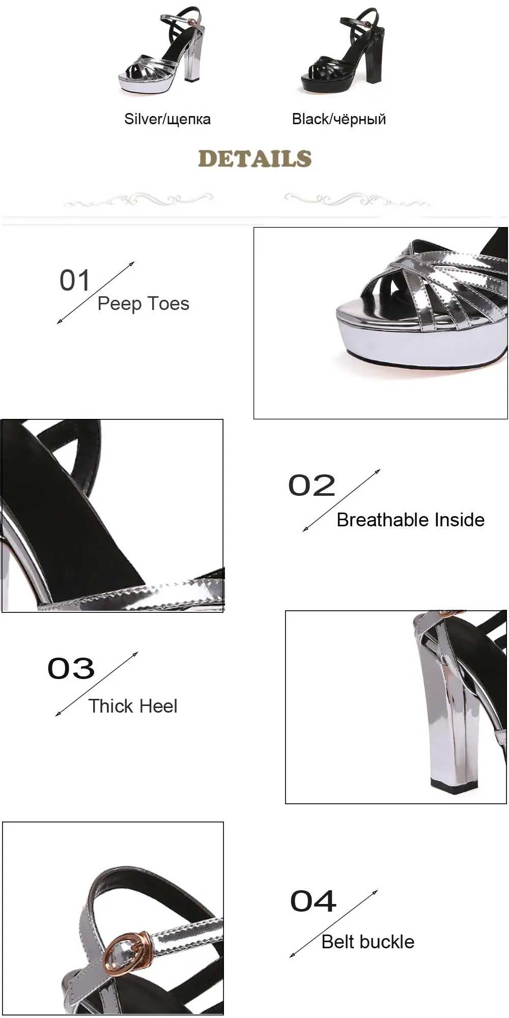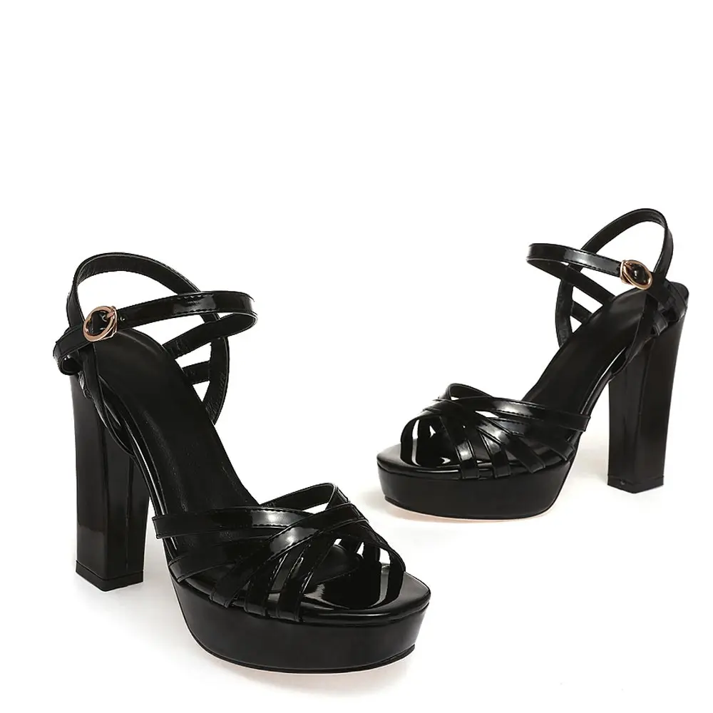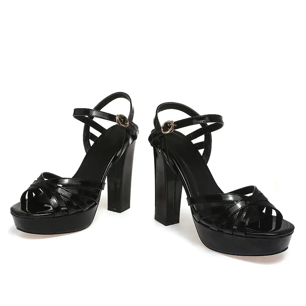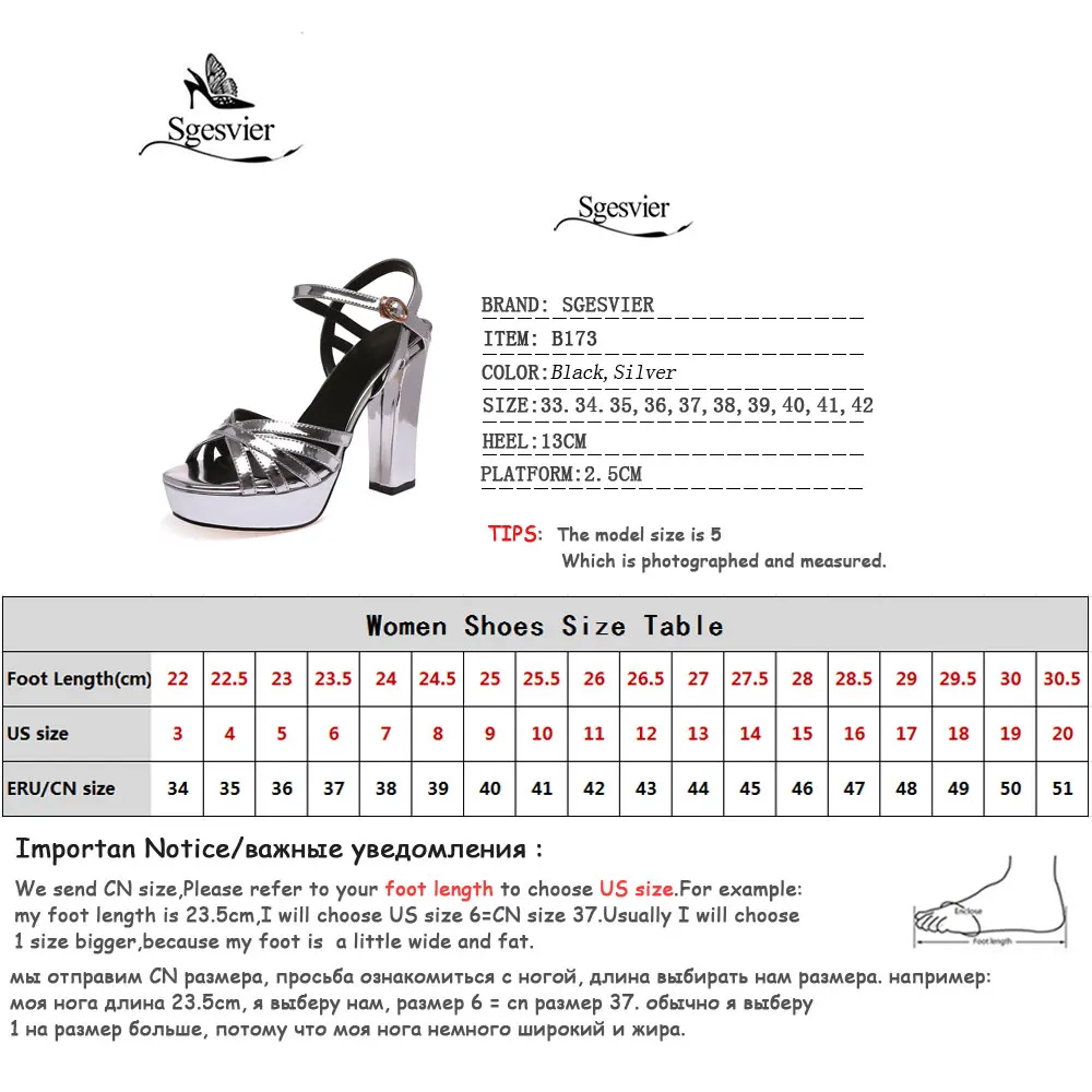 Sgesvier Women Sandals Platform Shoes Women Thick High Heel Footwear Open Toe Gladiator Sandalia Party Shoes Black Silver B173
