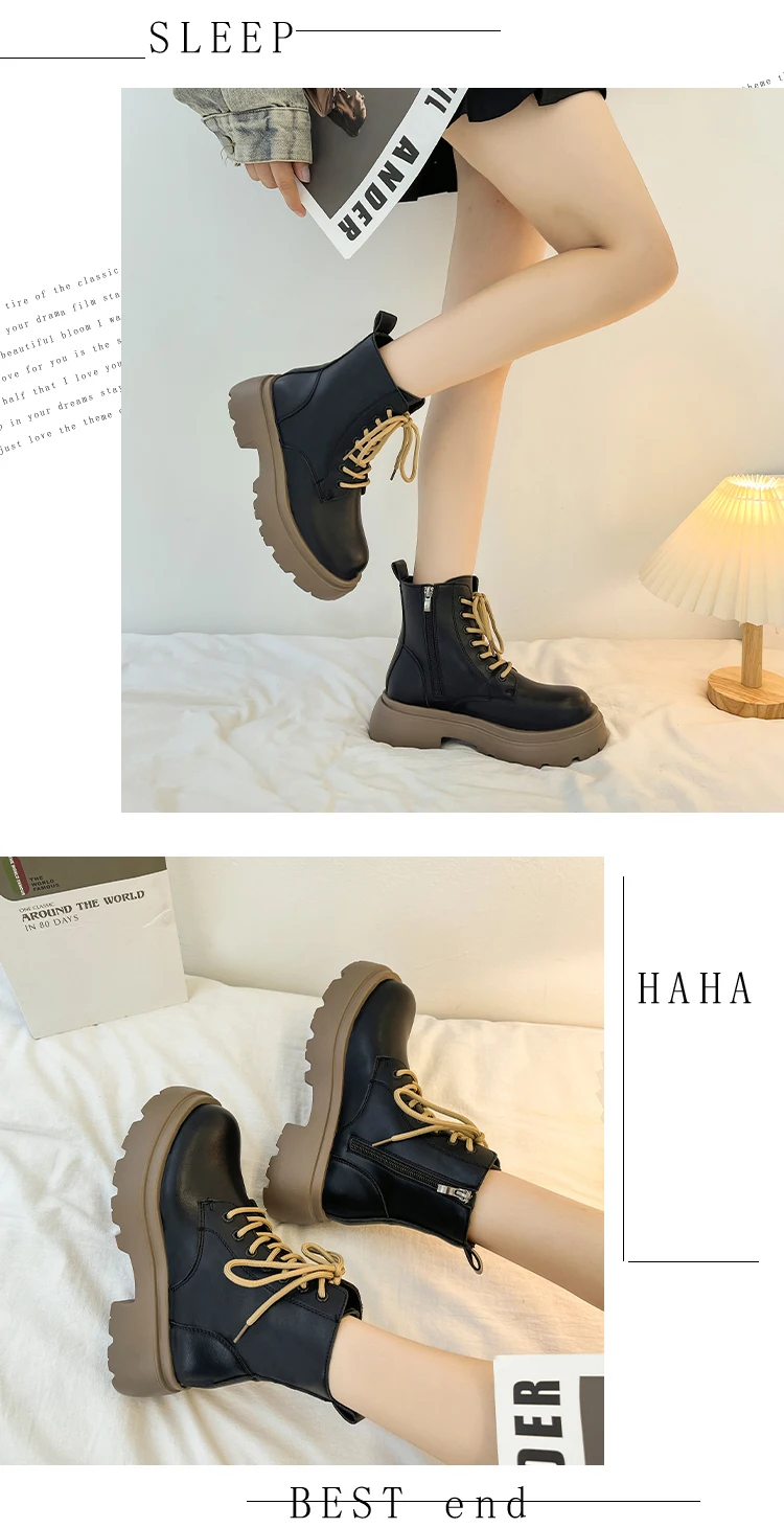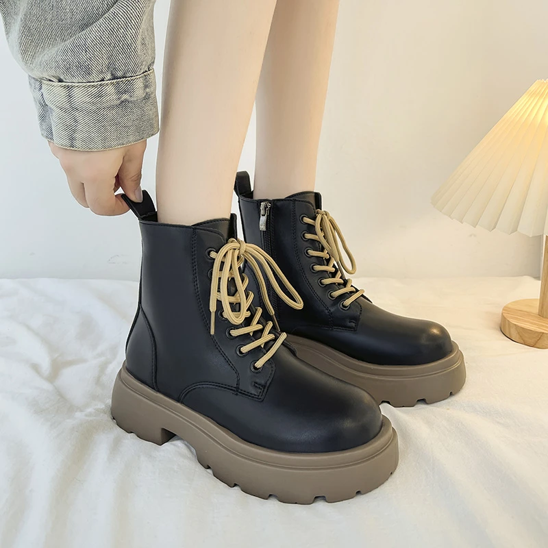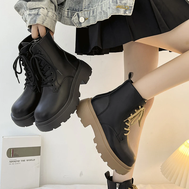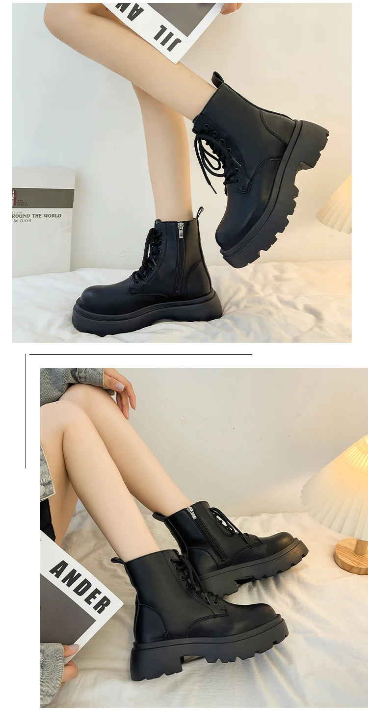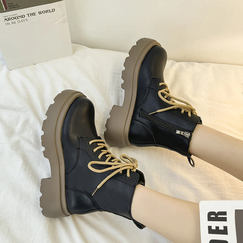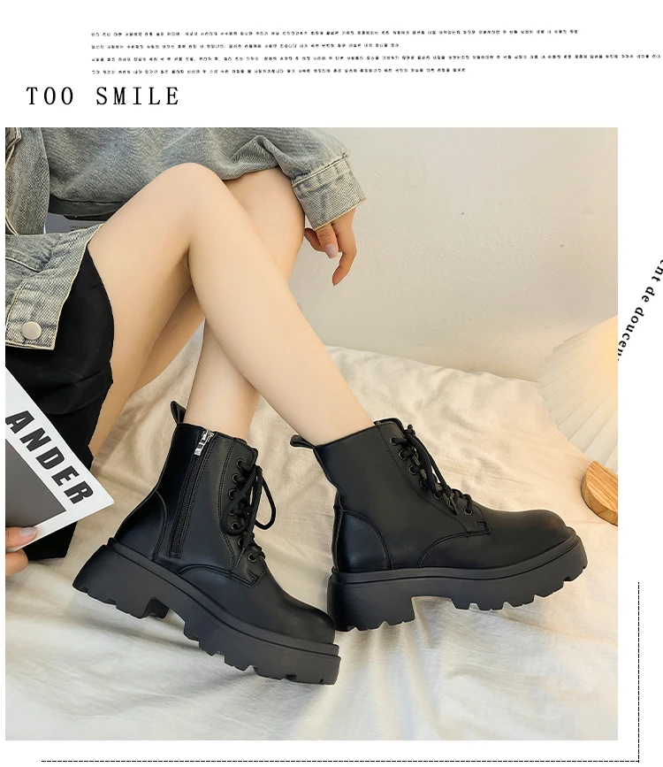 Shoes Flat Heel White Ankle Boots Boots-Women Round Toe Zipper Med Low Lolita 2022 Ladies Autumn Rock Cotton Fabric PVC Basic S