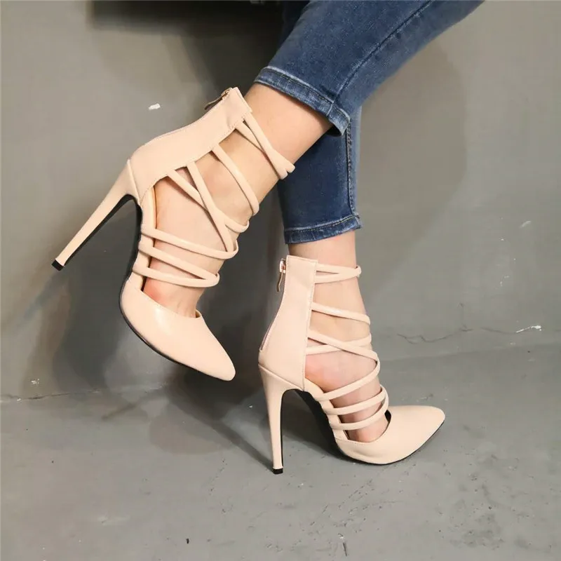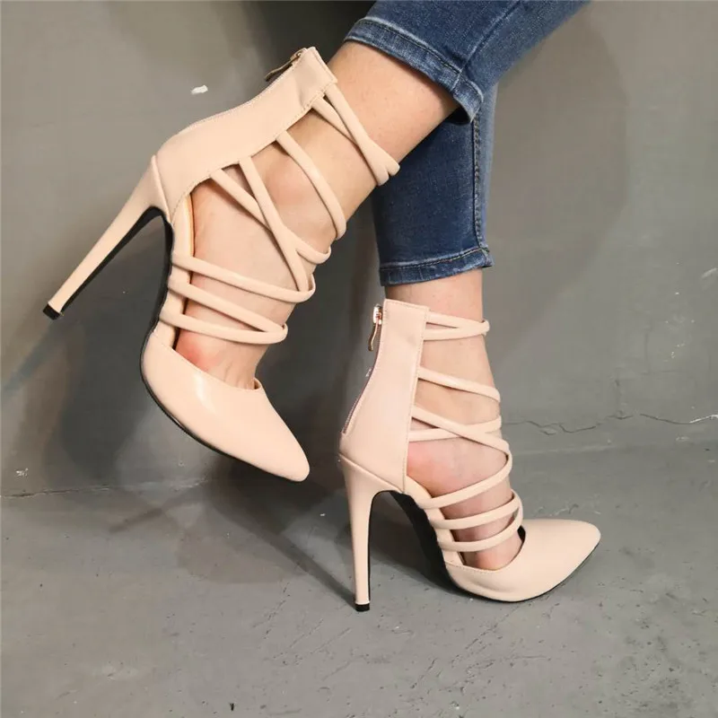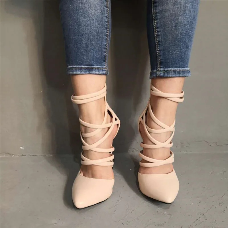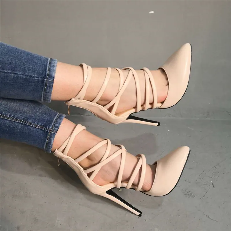 Shoes For Women 2020 Nude Leather High Heels Sandalias Strap Rope Designer Pumps Female Party Wedding Sandals Summer Size 12 13