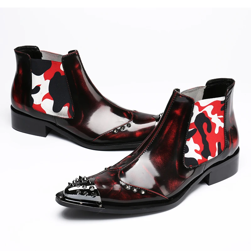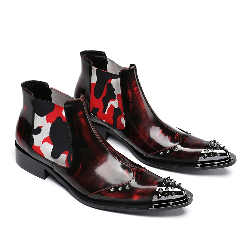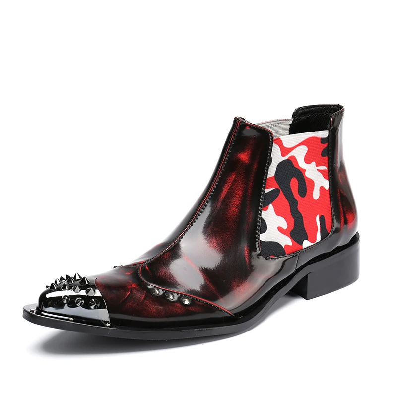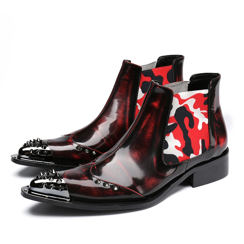Shoes men winter patent genuine leather military work shoes steel toe cowboy ankle boots footwear plus size botas hombre 2019