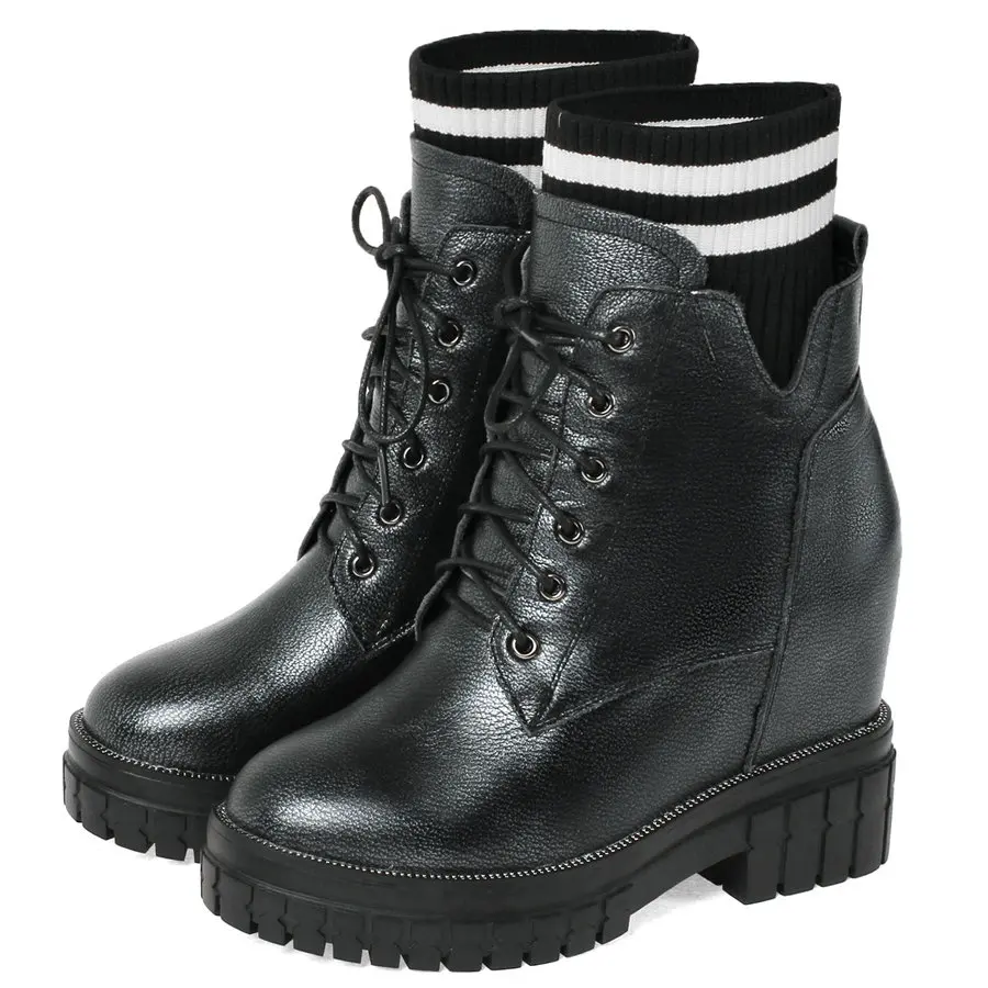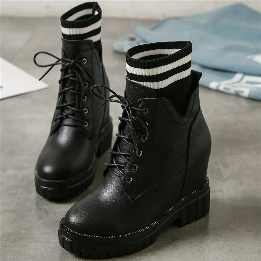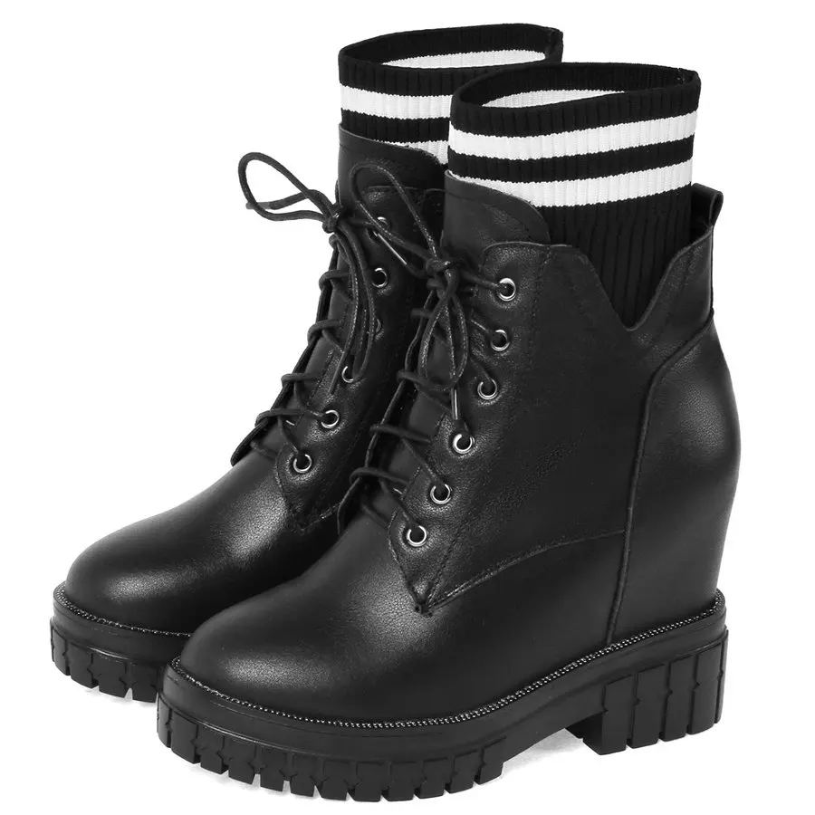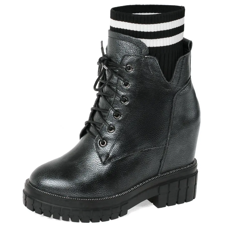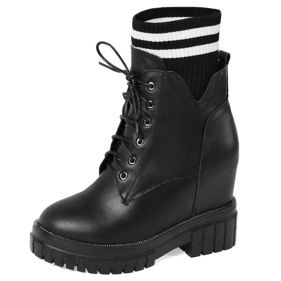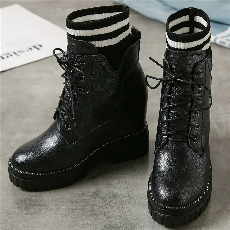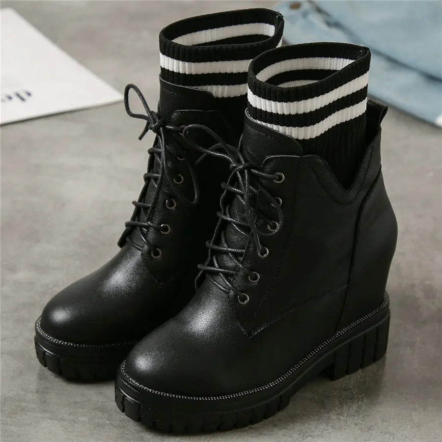 Shoes Women Genuine Leather Wedges High Heel Pumps Female Knitting Round Toe Military Ankle Boots Fashion Sneakers Casual Shoes