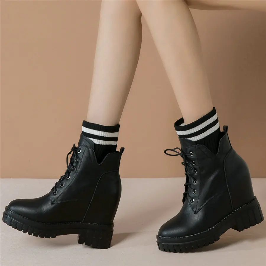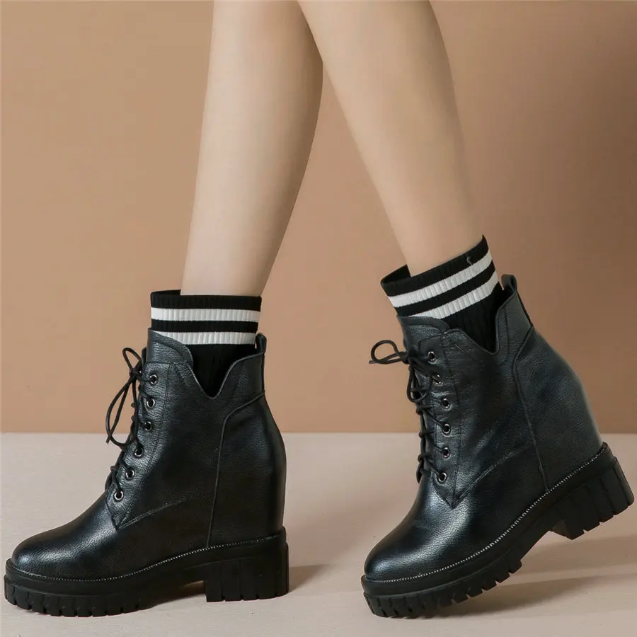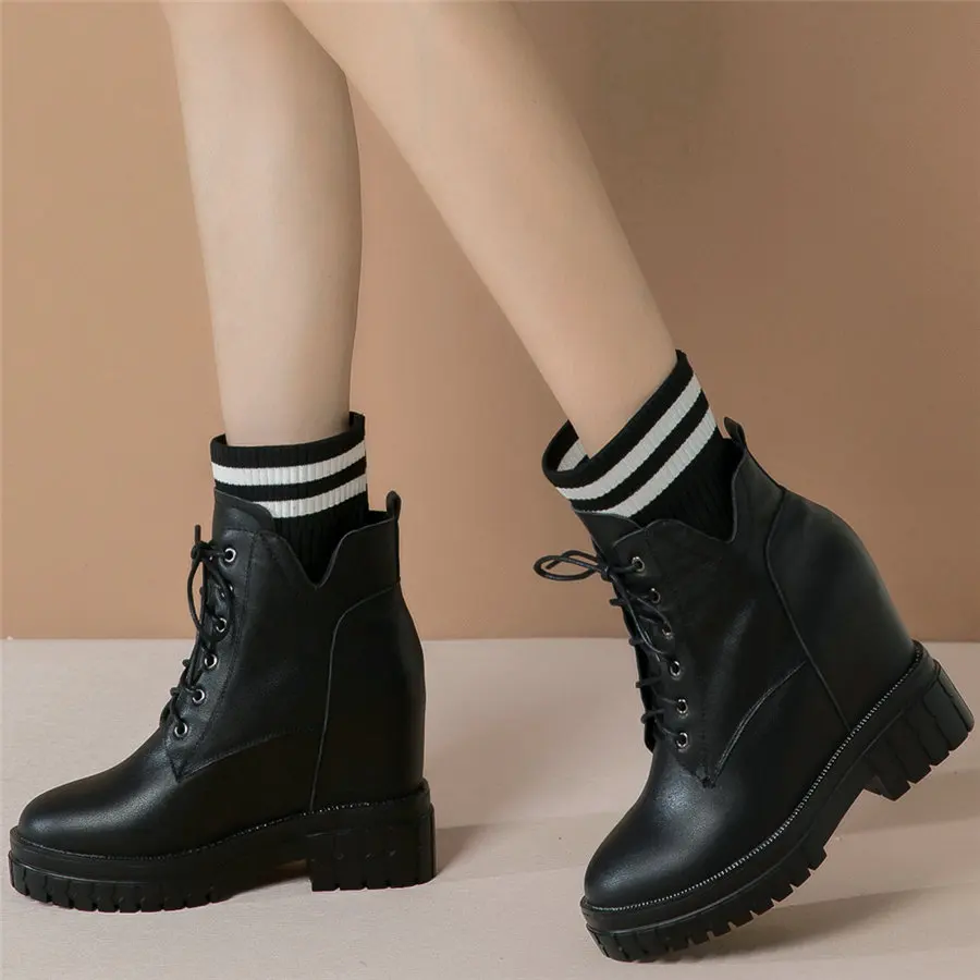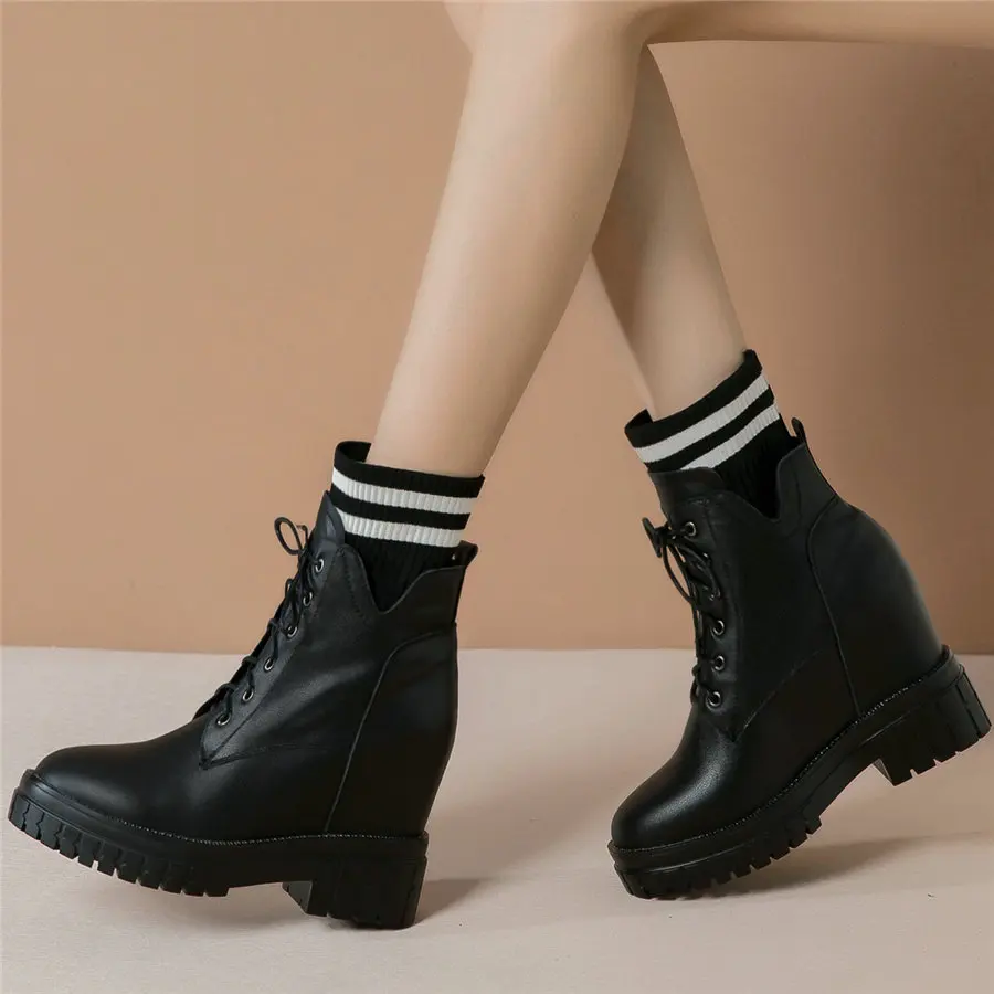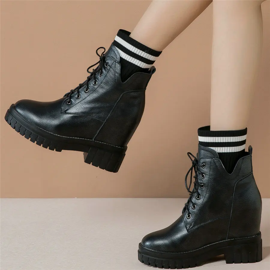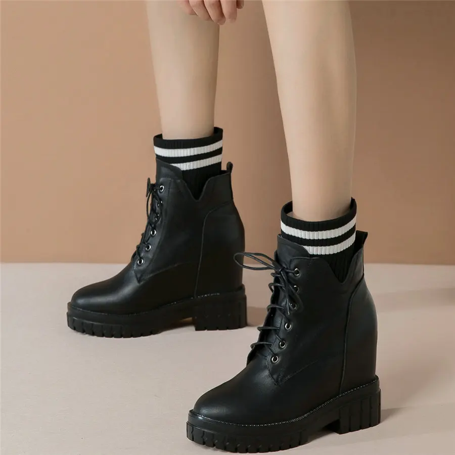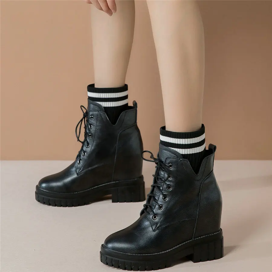 Shoes Women Genuine Leather Wedges High Heel Pumps Female Knitting Round Toe Military Ankle Boots Fashion Sneakers Casual Shoes