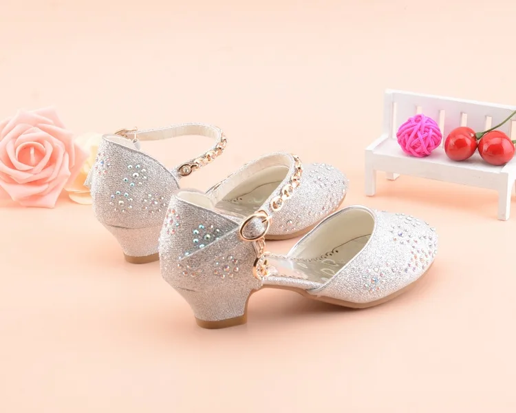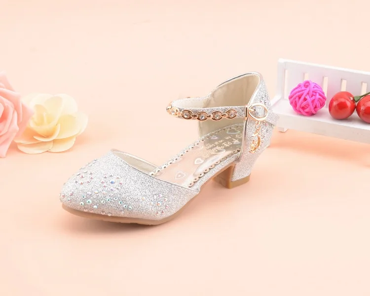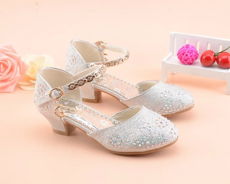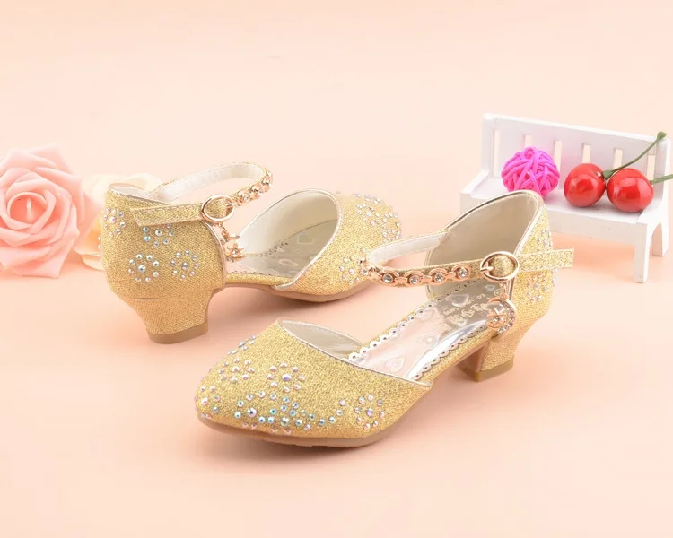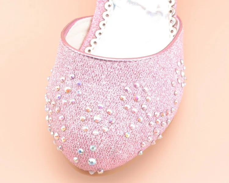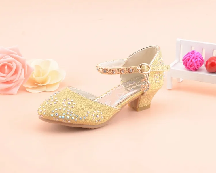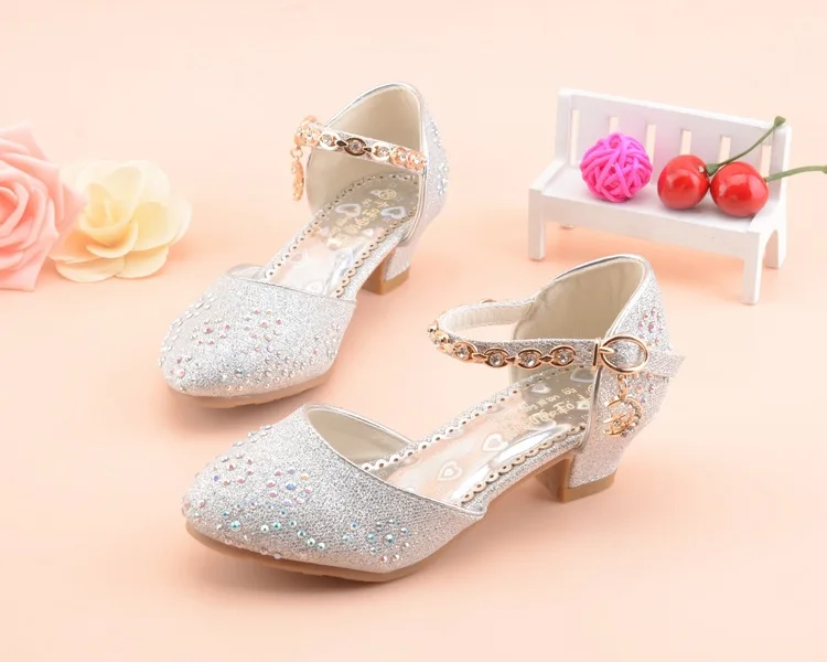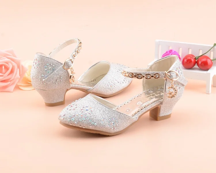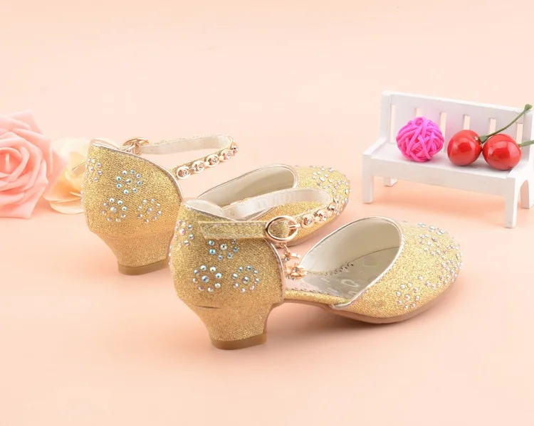 shorha Summer Children Girls Shoes Glitter Princess High Heels Sandals Pink Dance Weddings Kids Fashion Crystal Leather Party
