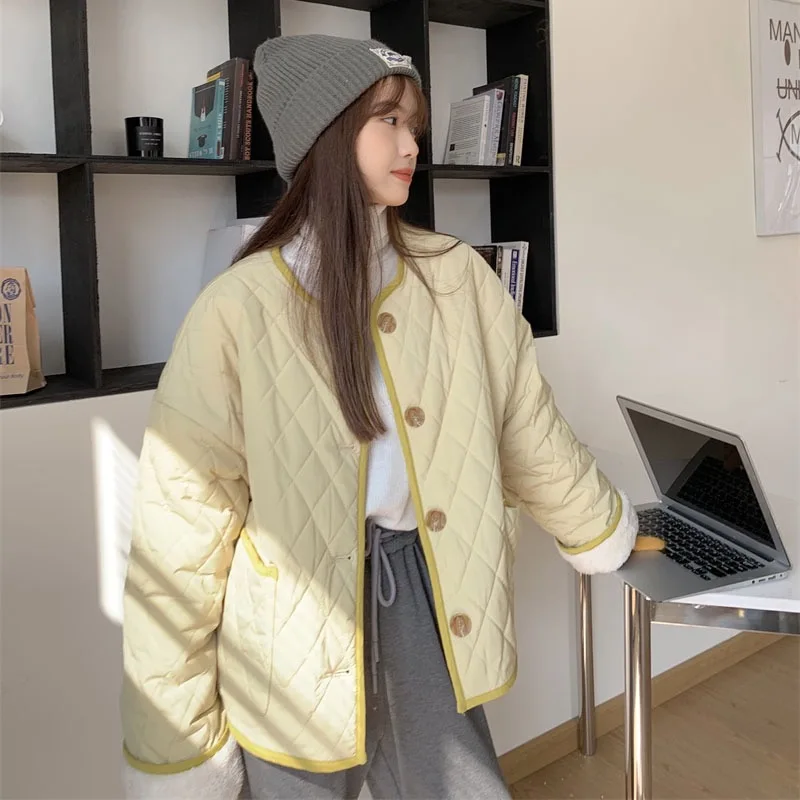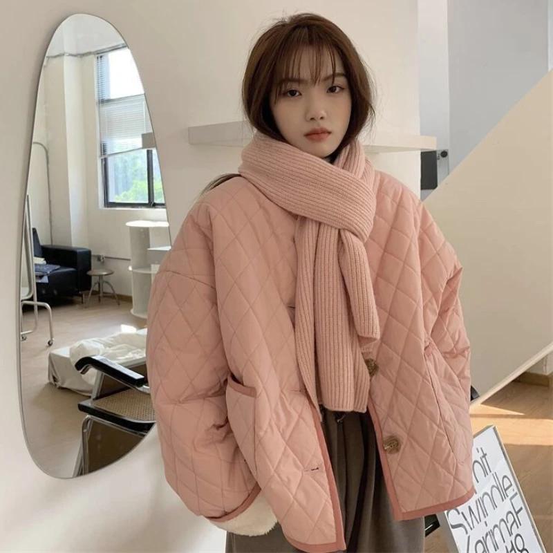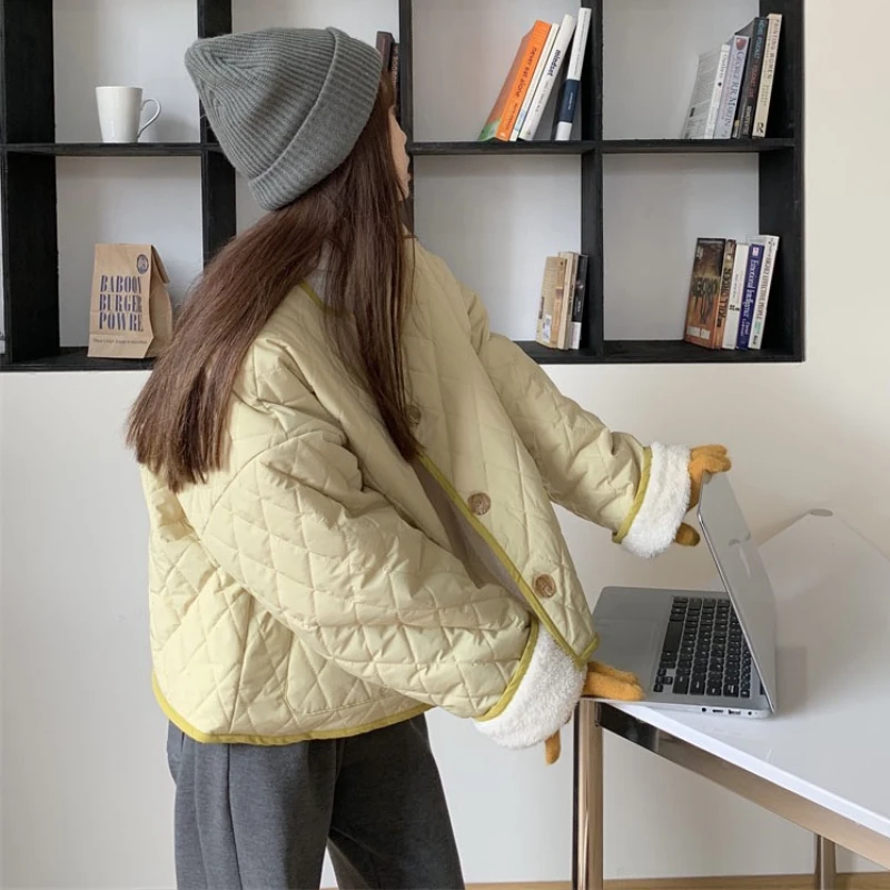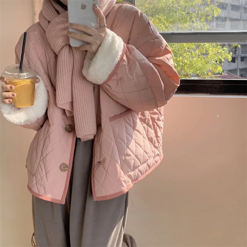 Short Style Parkas for Women Sweet Cute Girls Harajuku Elegant Long Sleeve Loose Korean Fashion Thick Clothes All-match Coats