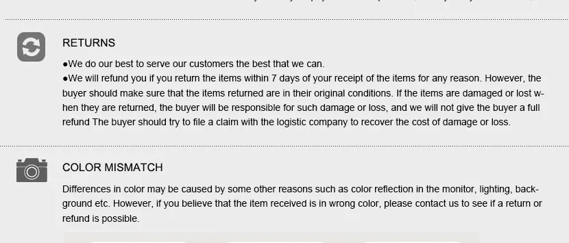 Your satisfaction is our #1 priority. Therefore, you can request a refund or reshipment for ordered products if: