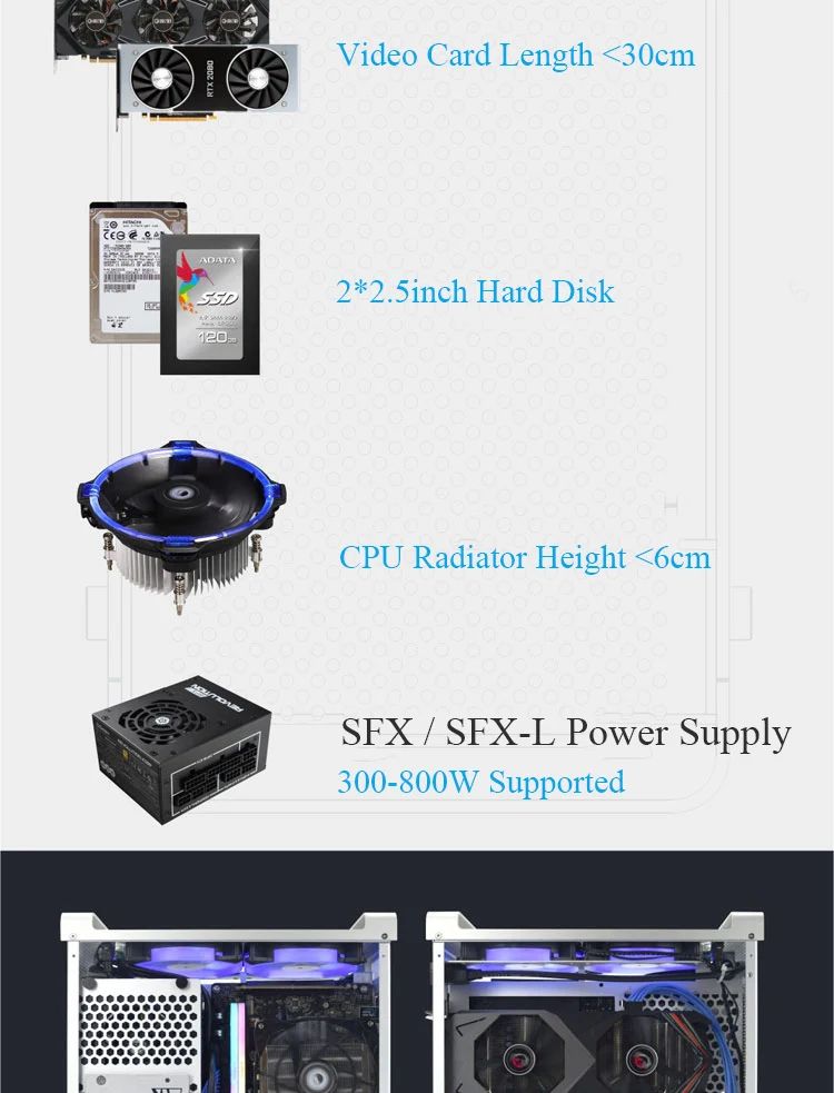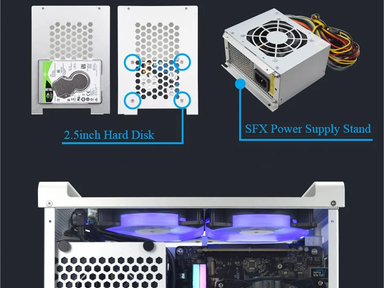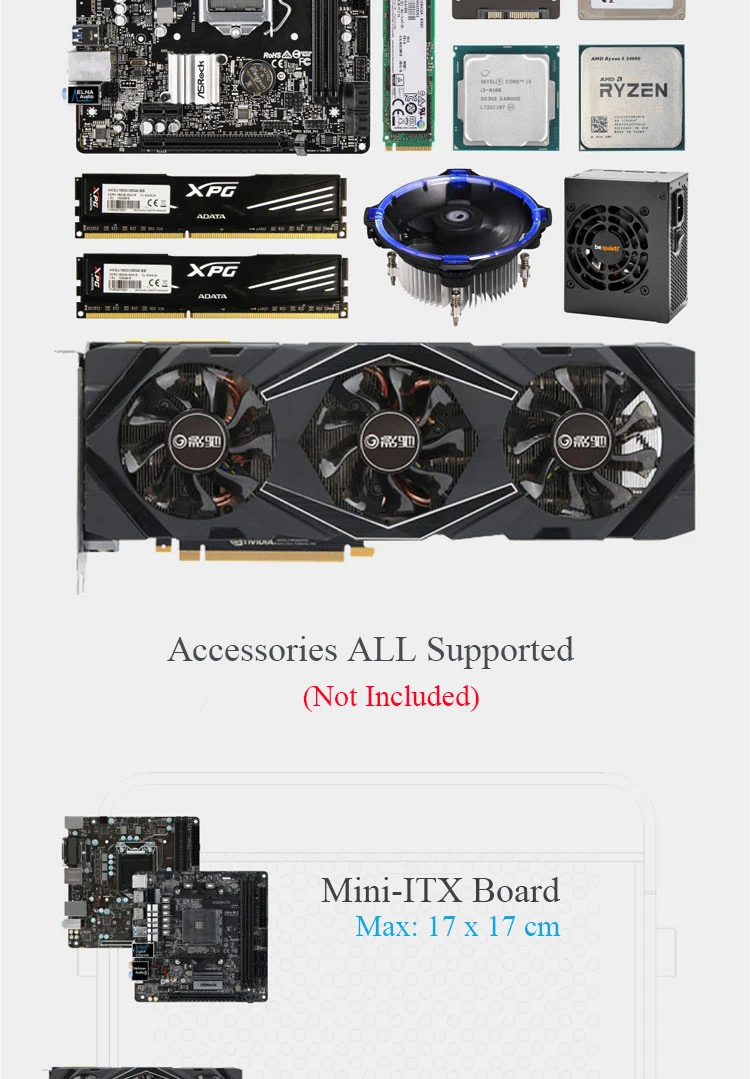 Side Open DIY ITX Desktop Gaming Case Mini-ITX Computer Cases With 120mm LED Mute Cooling Fan SFX Powr Supply Kits Mini PC Case