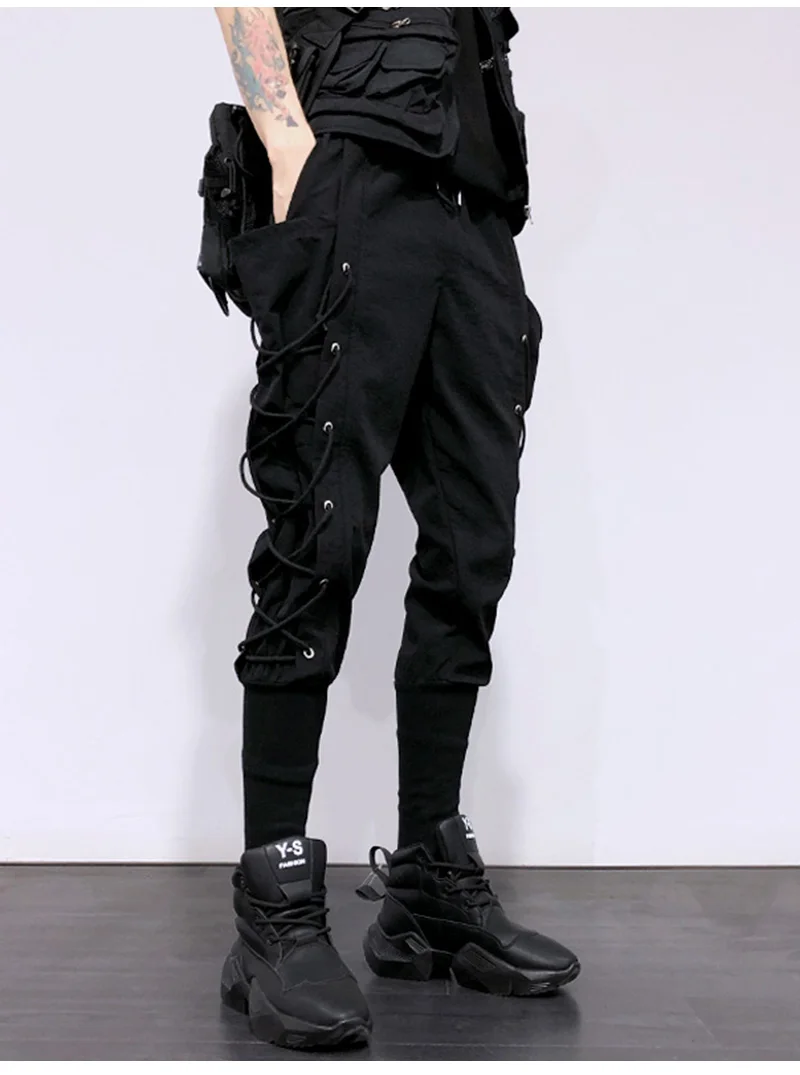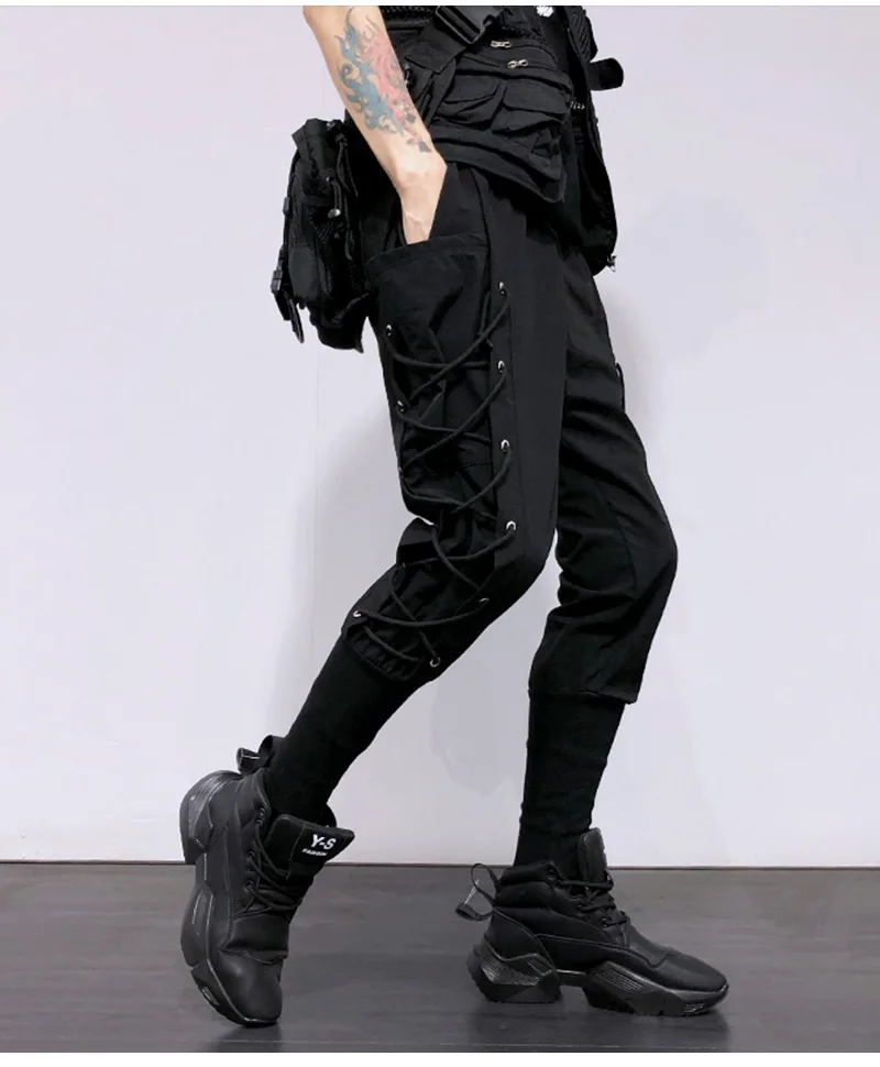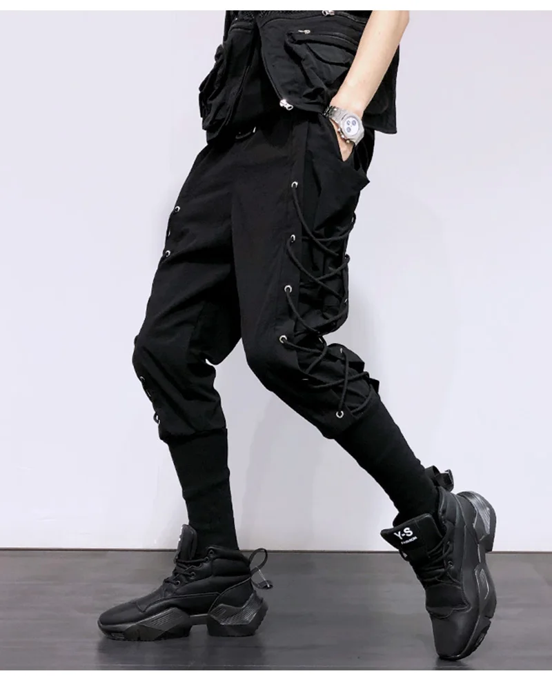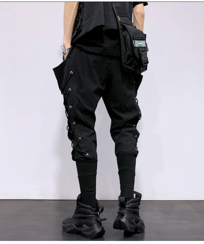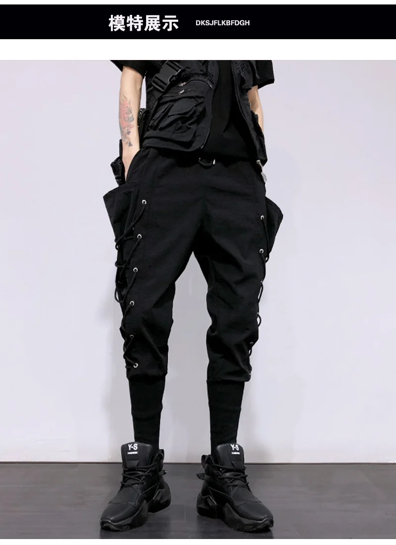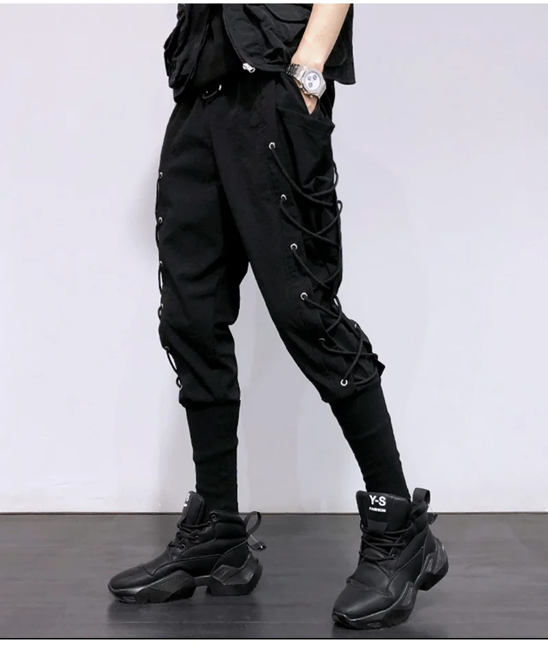 Sides Drawstring Weaving Techwear Harem Pants Men Harajuku Hip Hop Skinny Pants Goth Punk Street Joggers