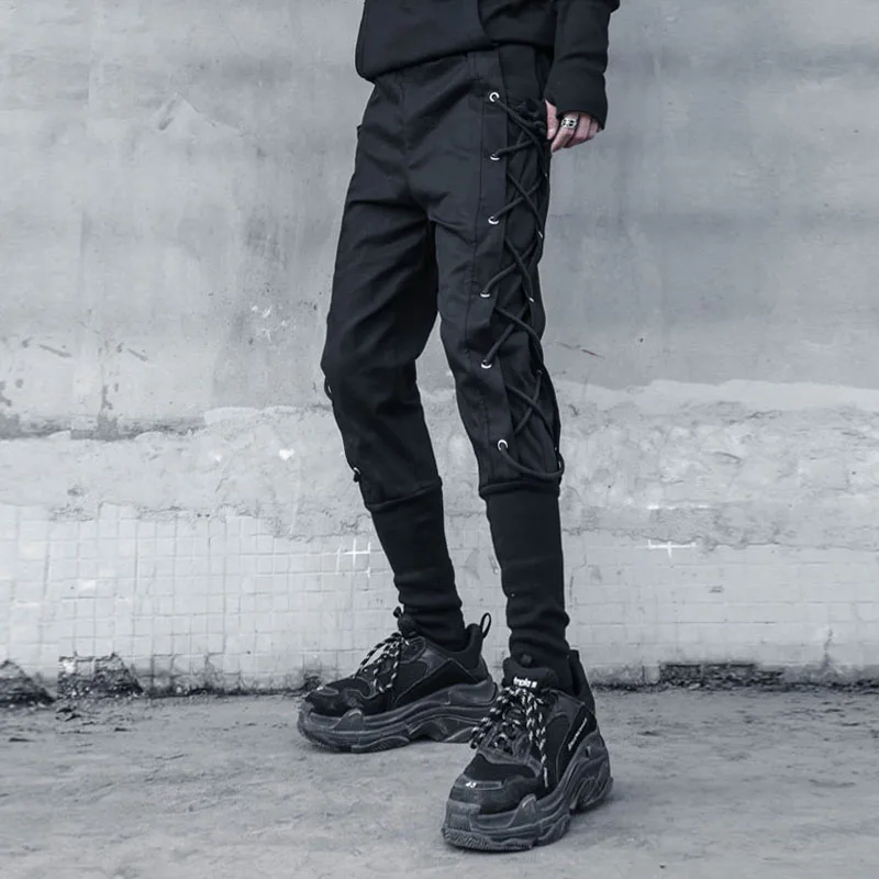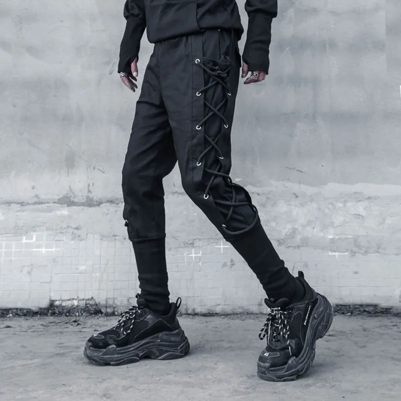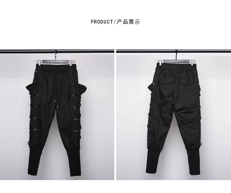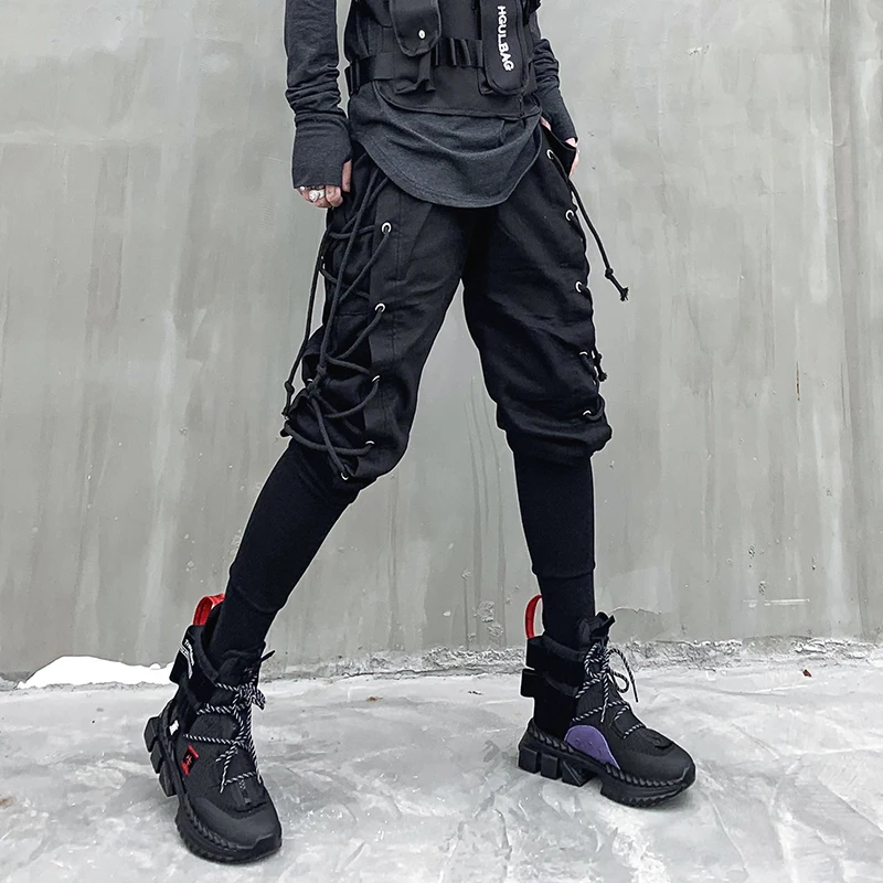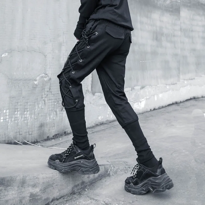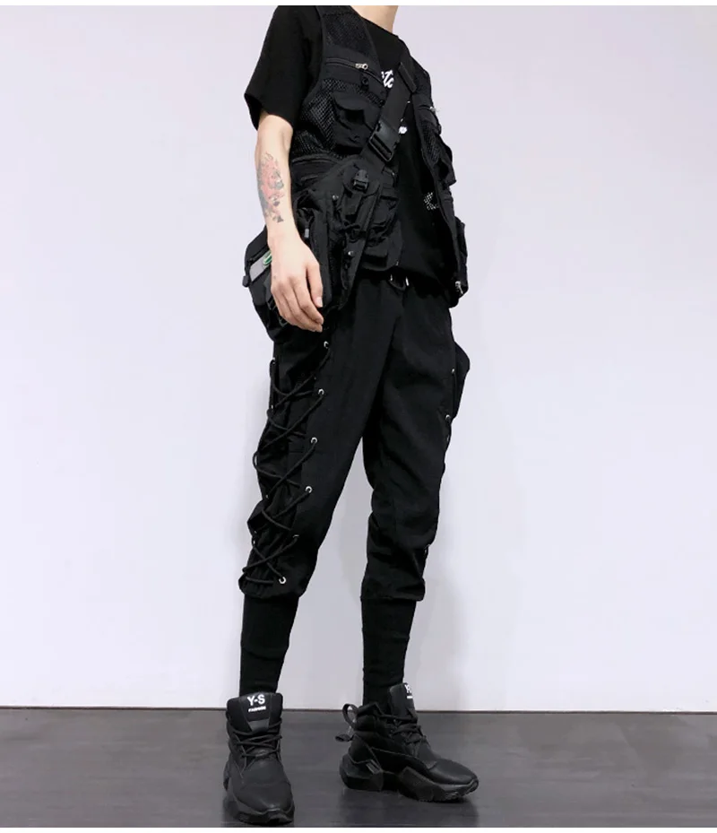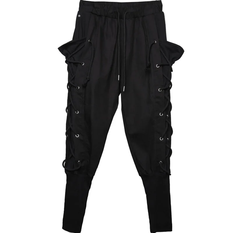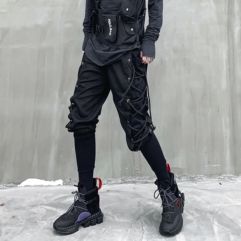 Sides Drawstring Weaving Techwear Harem Pants Men Harajuku Hip Hop Skinny Pants Goth Punk Street Joggers