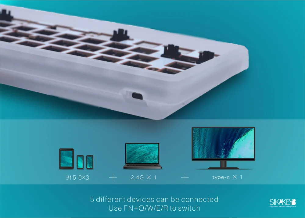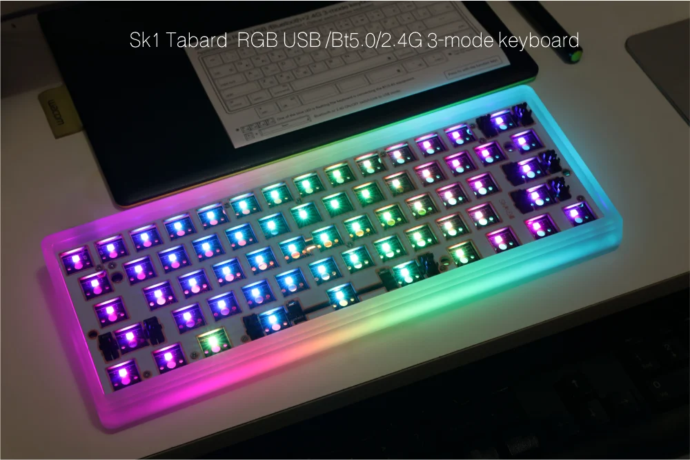SIKAKEYB SK1 Tabard translucent keyboard 3 Mode RGB BT Backlit Wireless Hot-swappable Gaming Keyboard for Mac Laptop PC