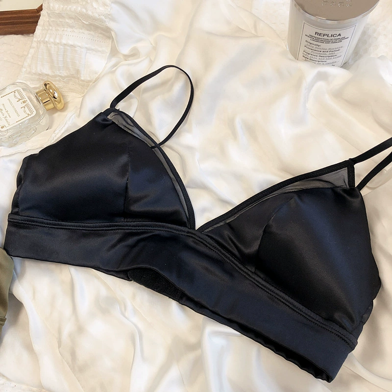 Silk no steel ring bra smooth satin mulberry silk underwear thin sexy top bralette women triangle cup lingerie