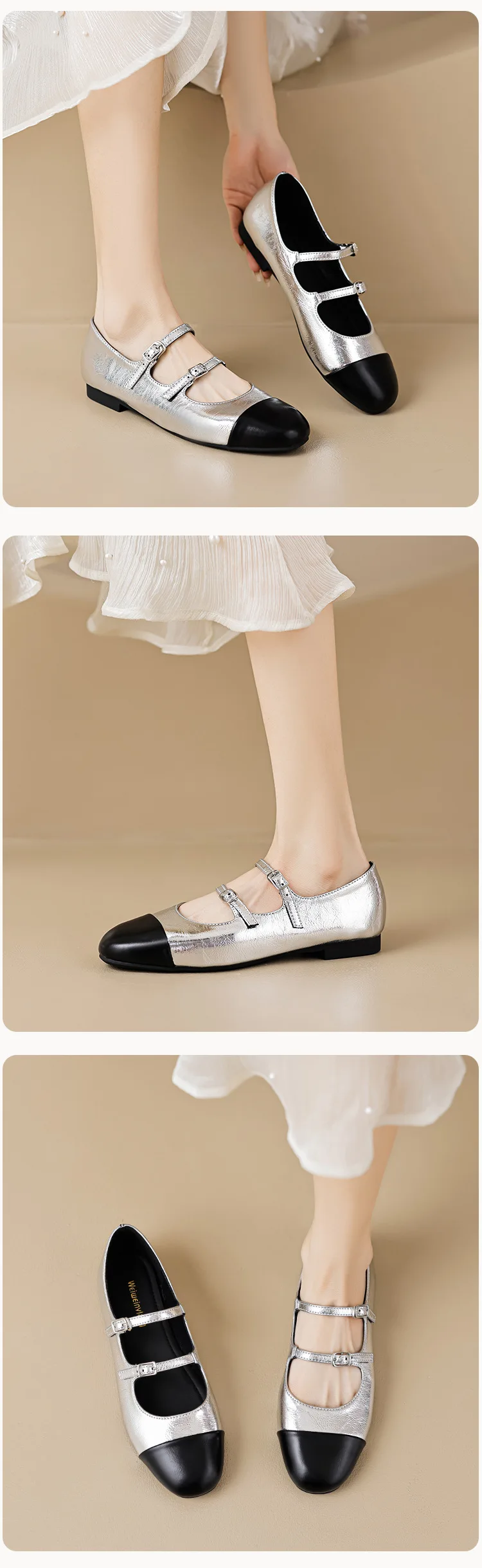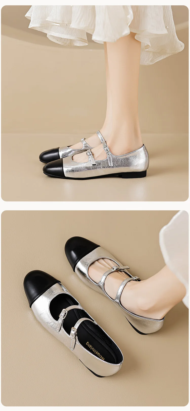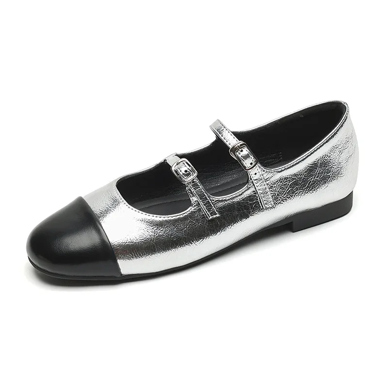 Silver Mary Jane Shoes Women Flat Shoes Large Size 35-43 Women’s Shoes