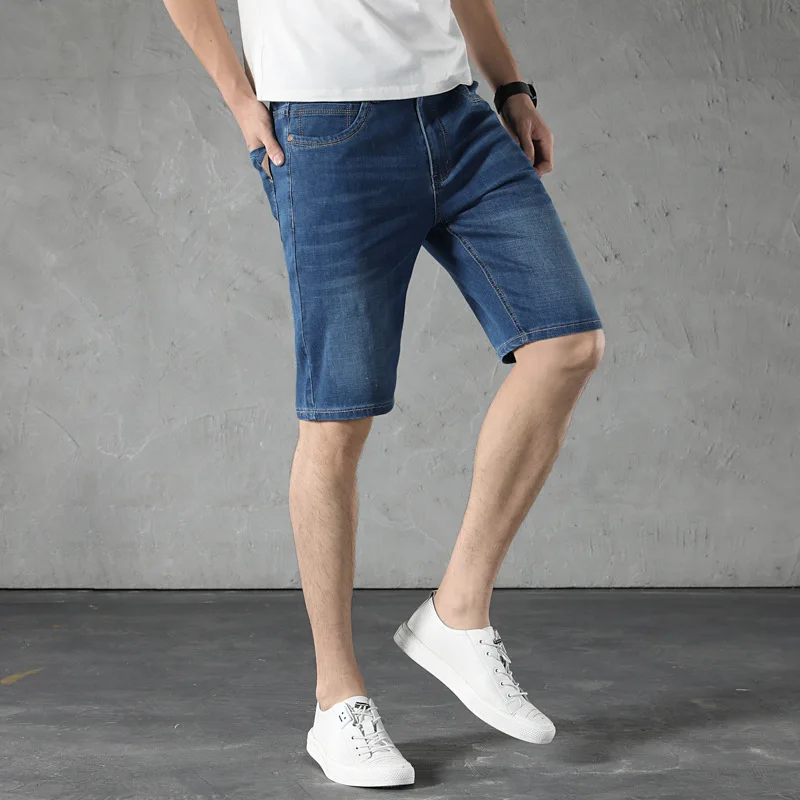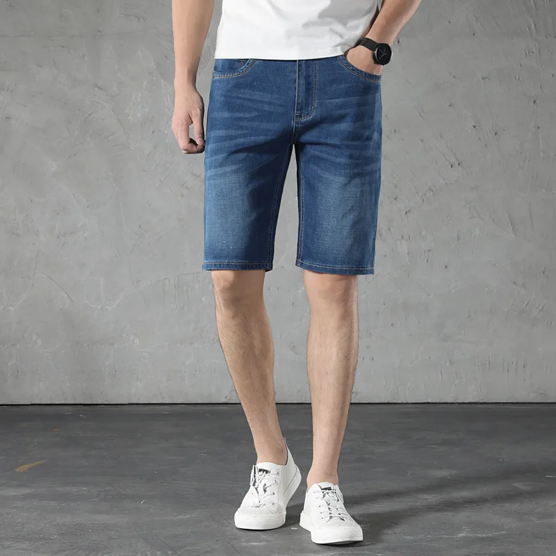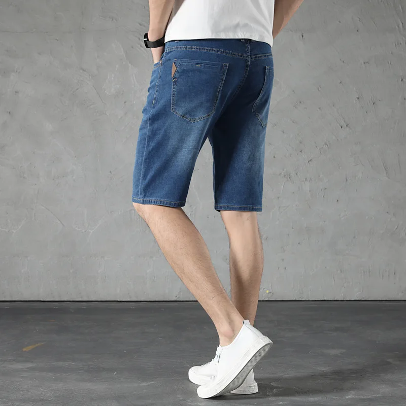 Simple blue fashion casual denim shorts large size 2019 summer new style thin loose straight jeans men’s cotton shorts
