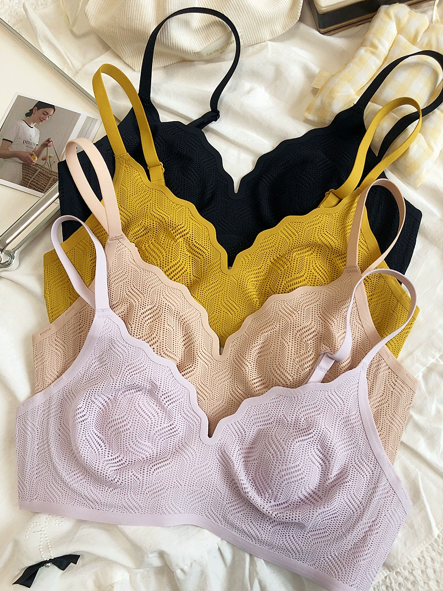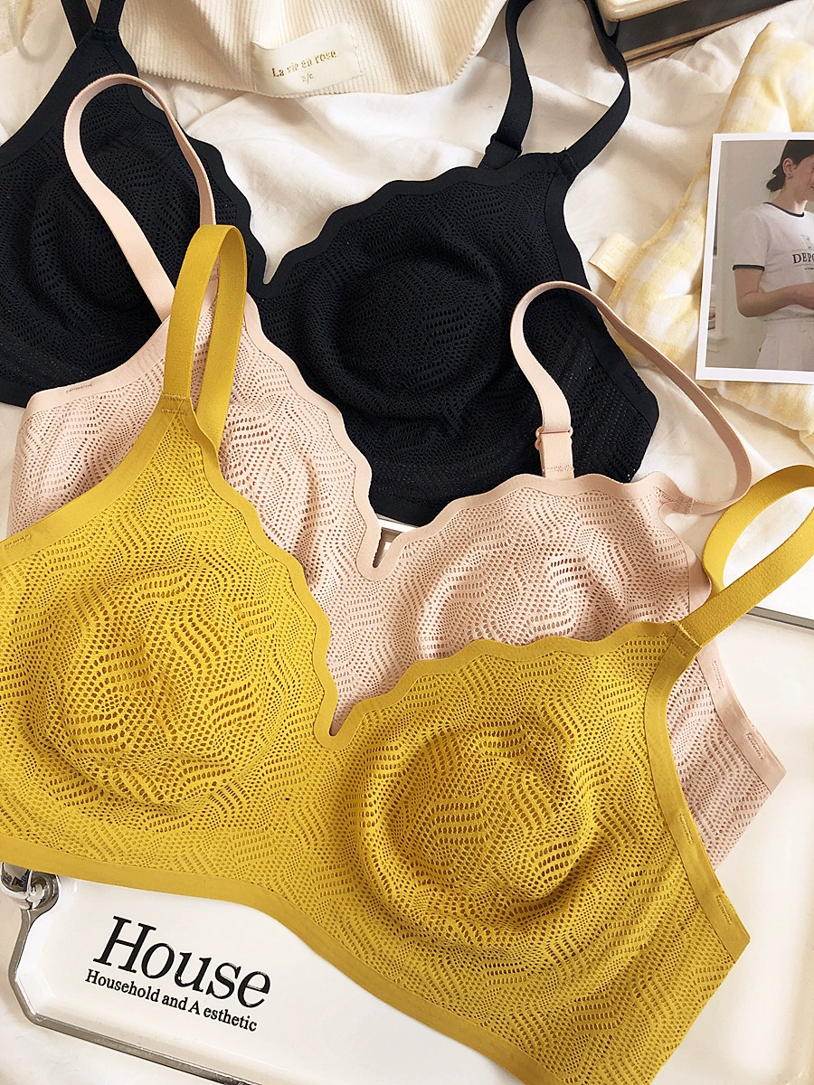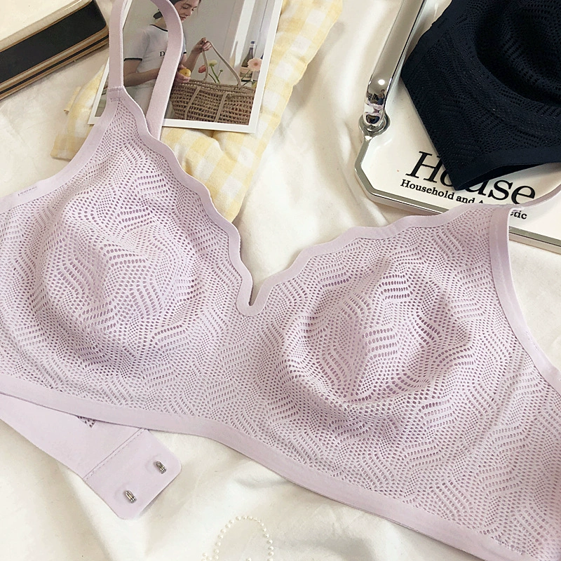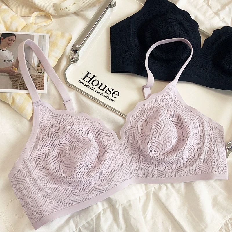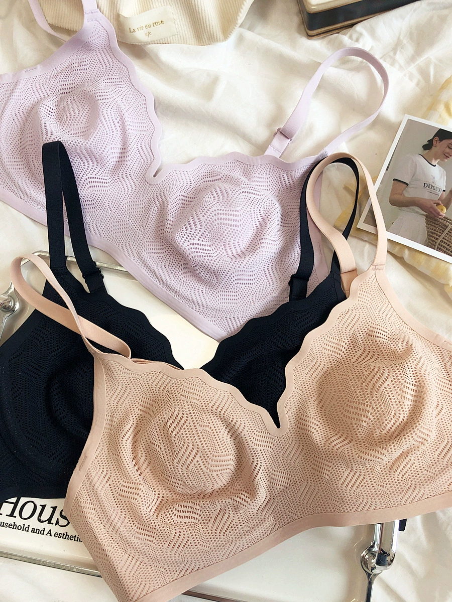 Simple sexy hollow ultra-thin breathable rabbit ears crystal cup bra large breasts show small comfortable no steel ring underwea