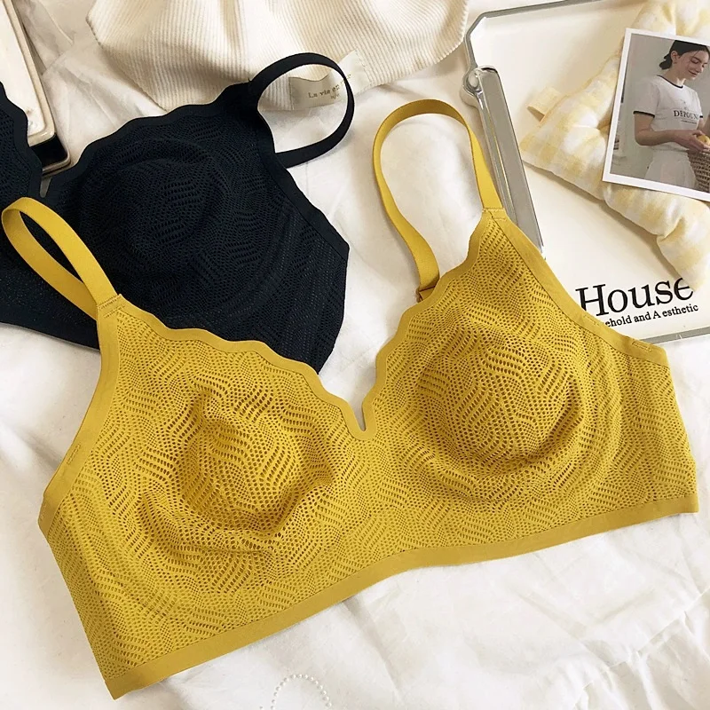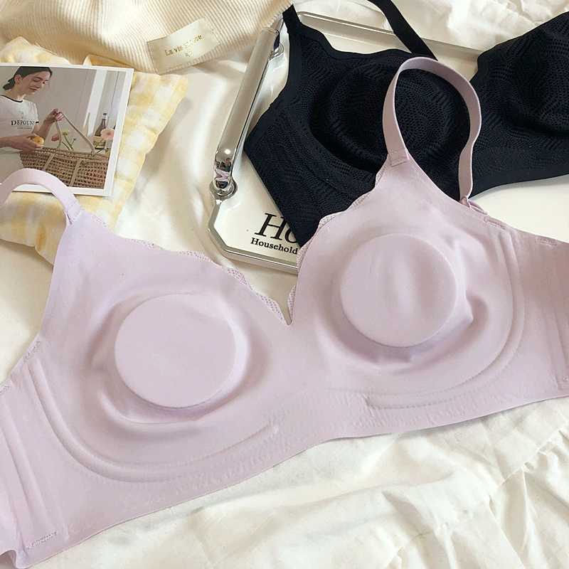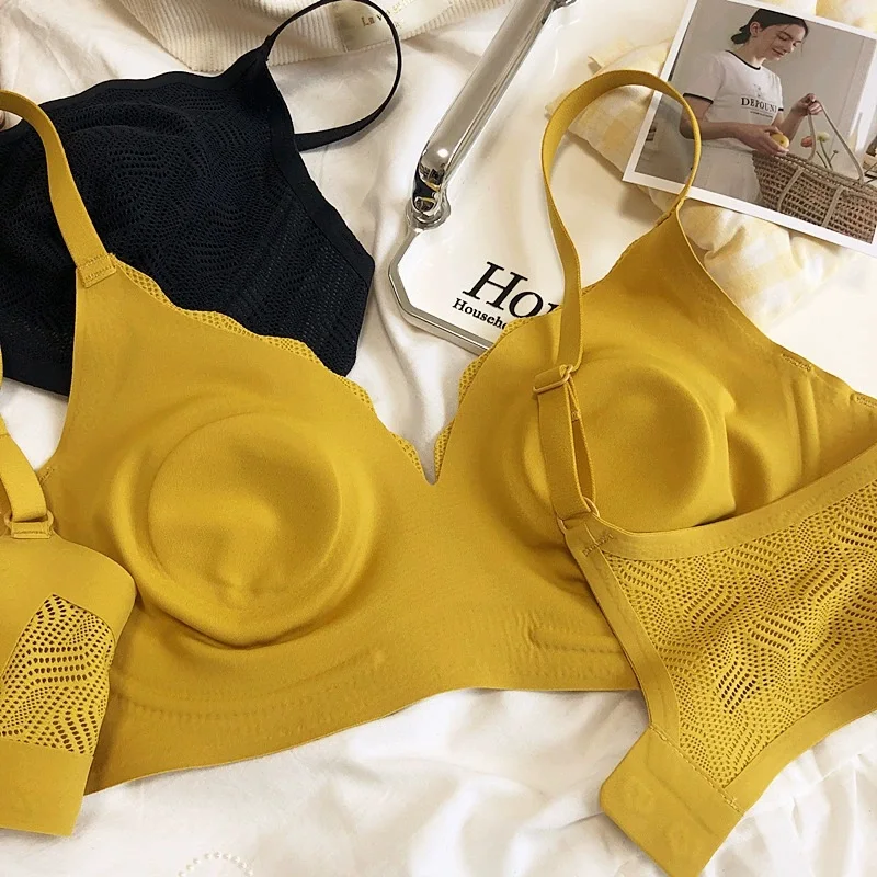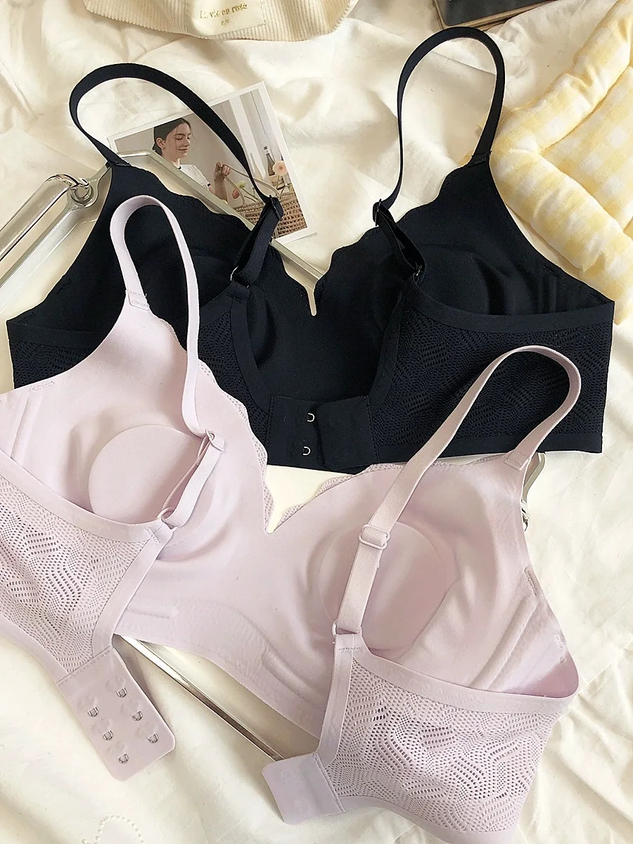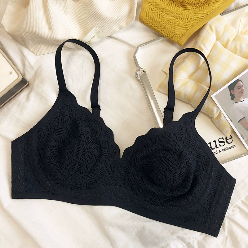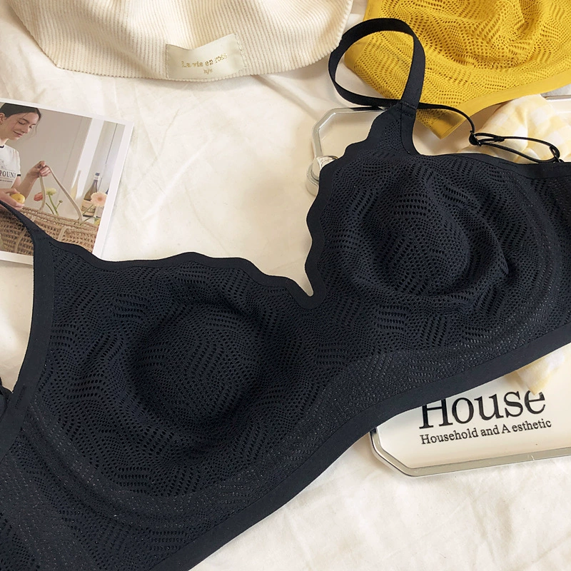 Simple sexy hollow ultra-thin breathable rabbit ears crystal cup bra large breasts show small comfortable no steel ring underwea
