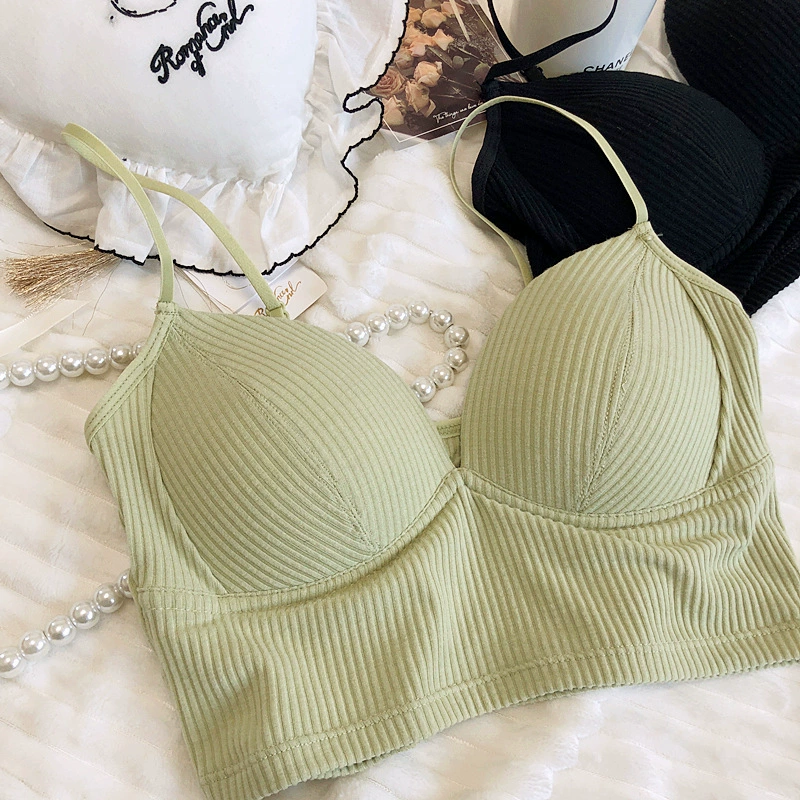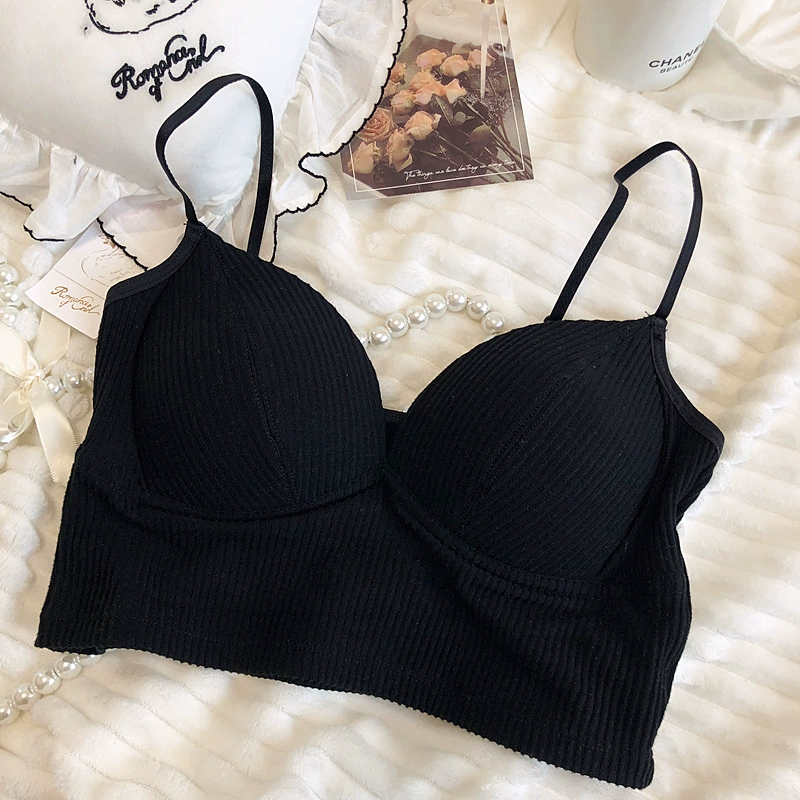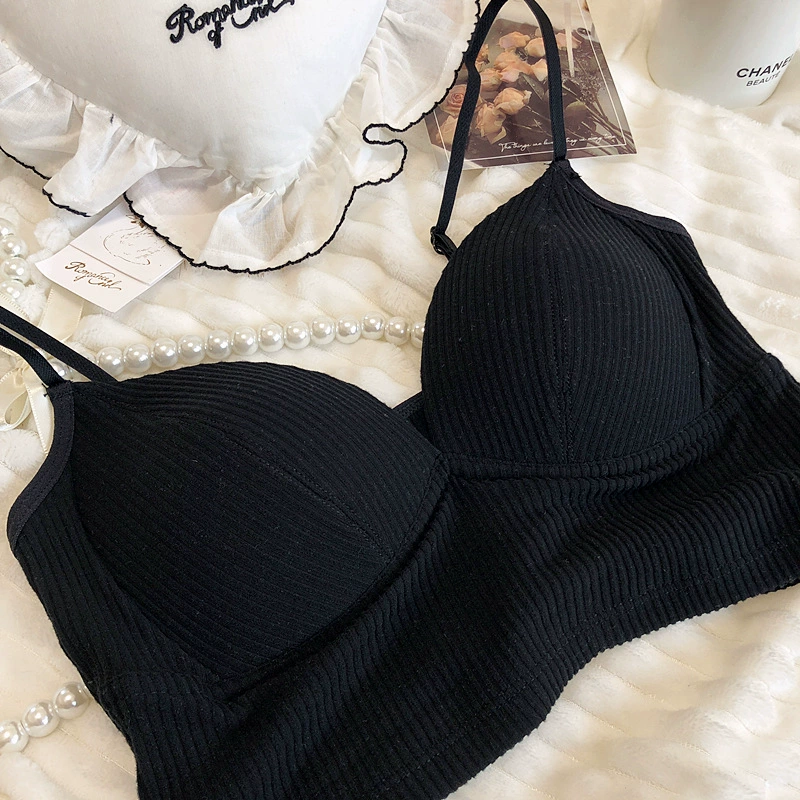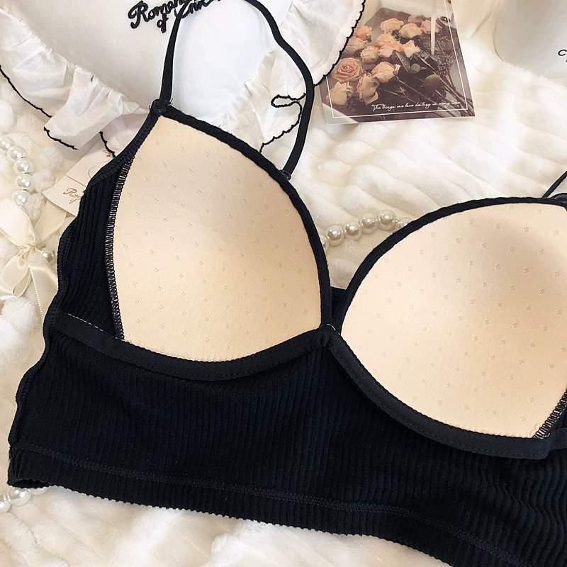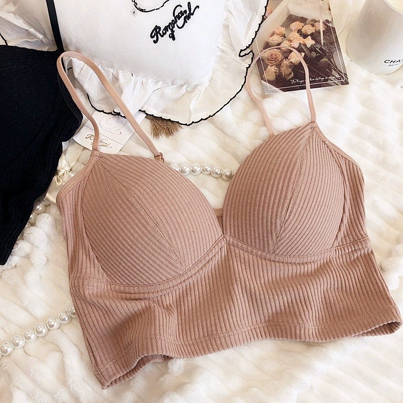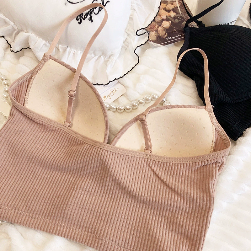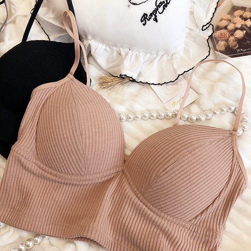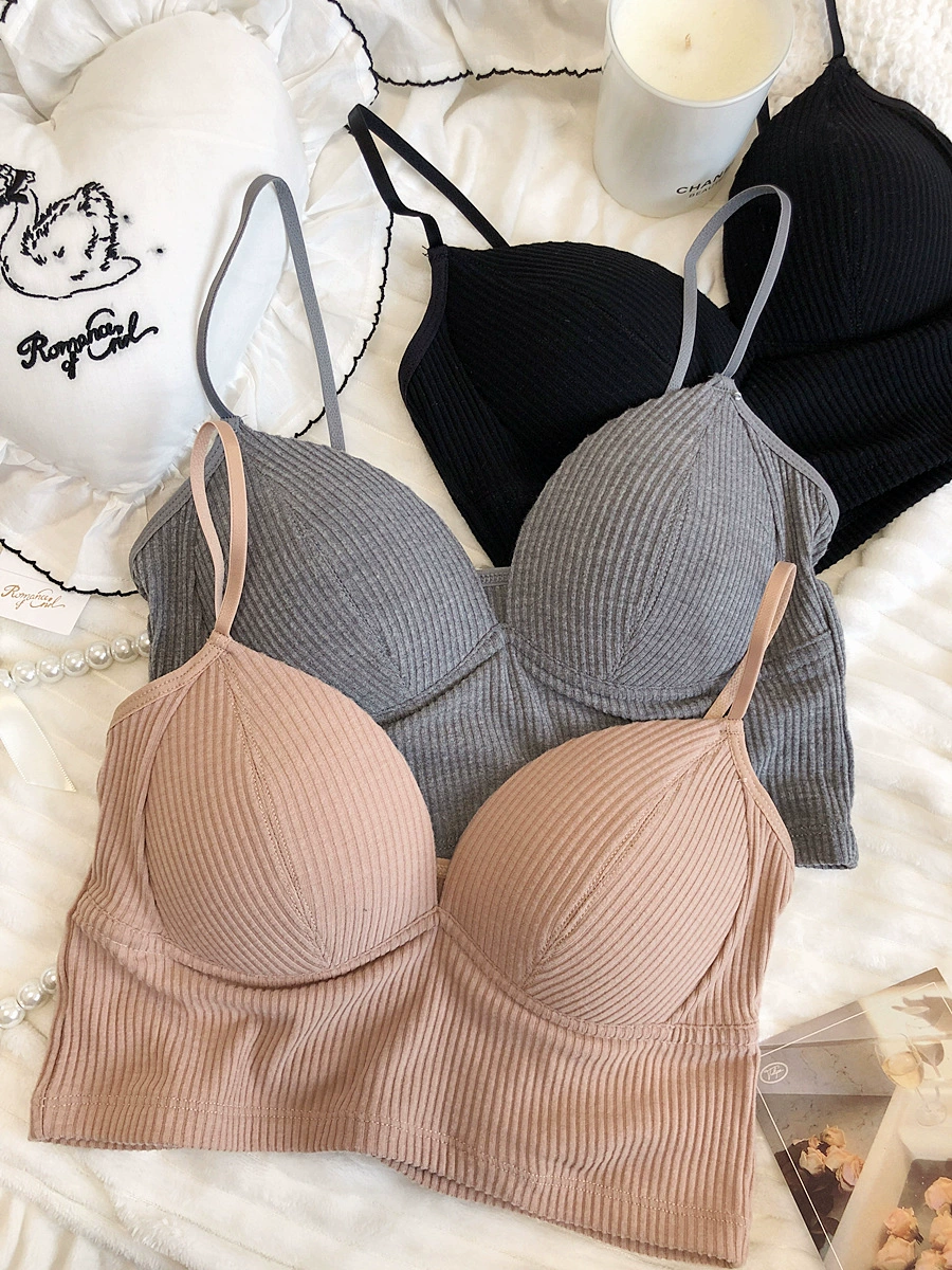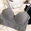 Simple velvet warm sling bra detachable chest pad no steel ring upper support thin strap big chest showing small underwear