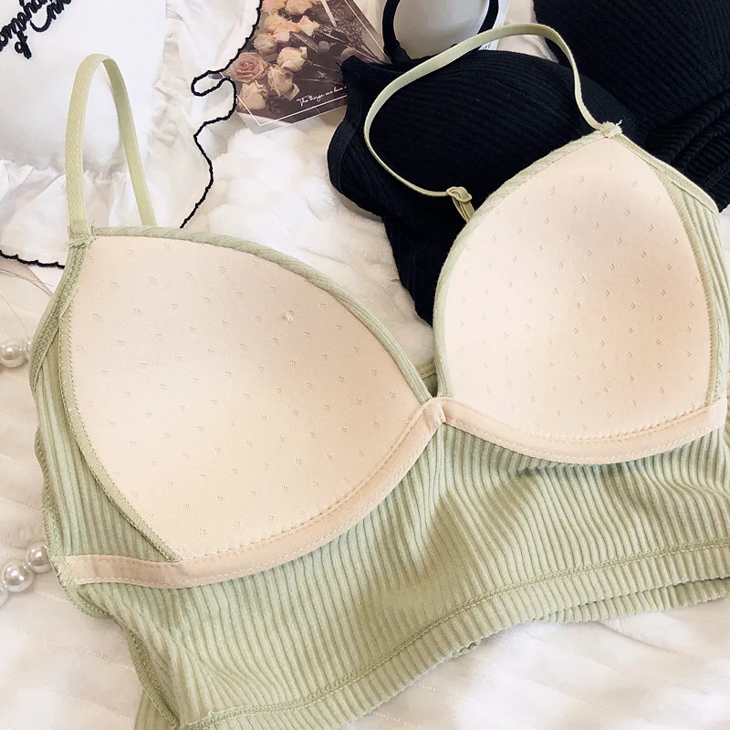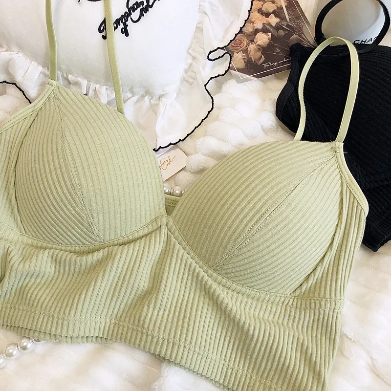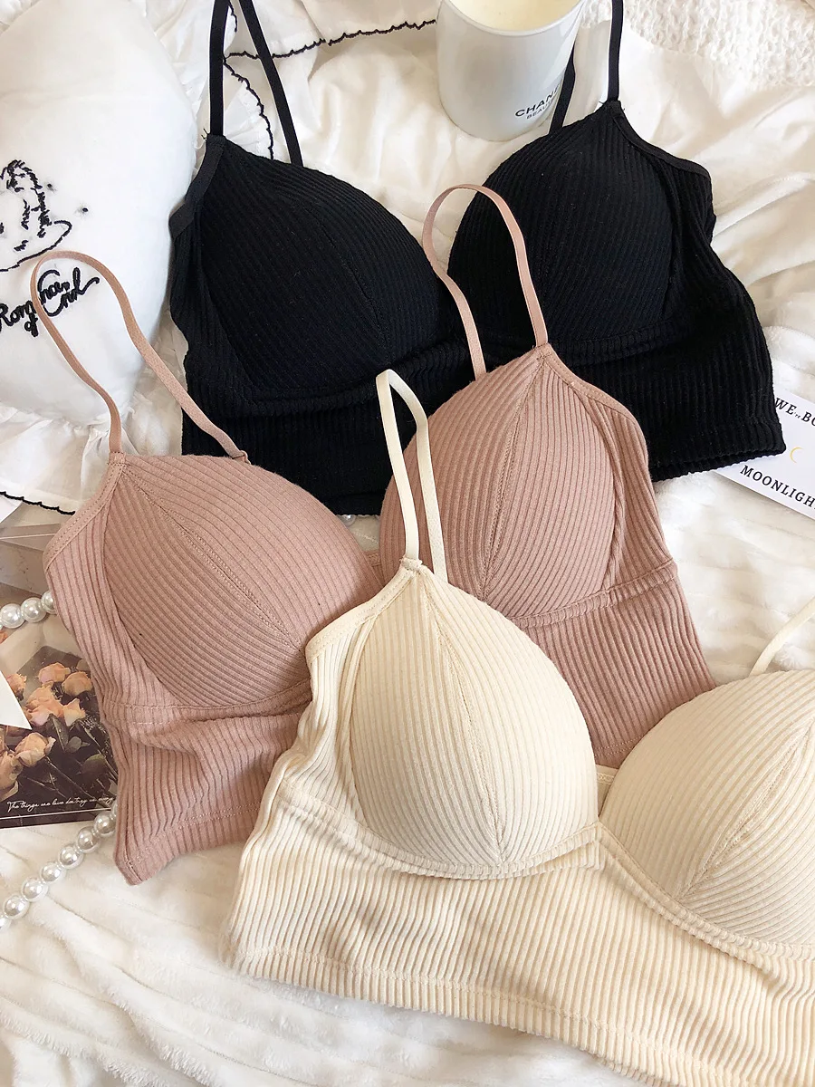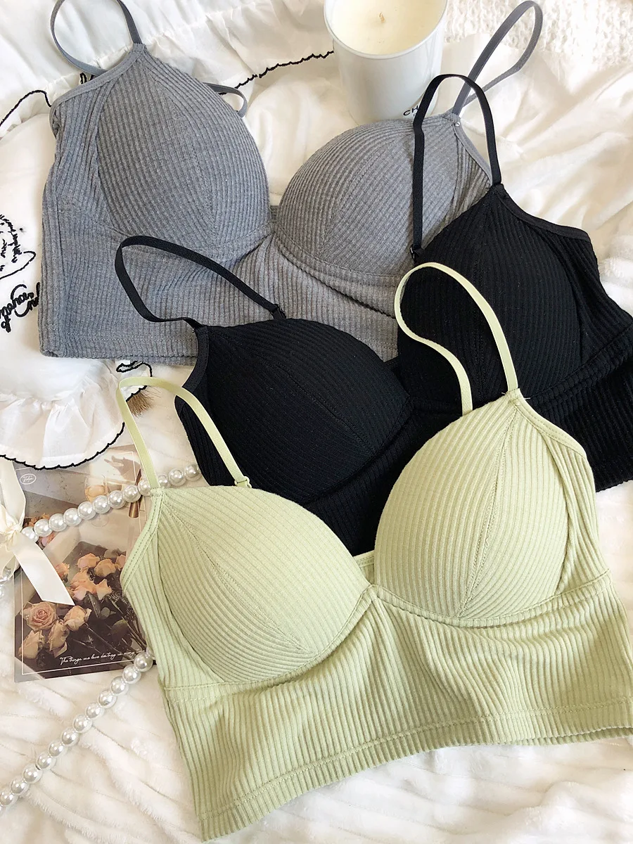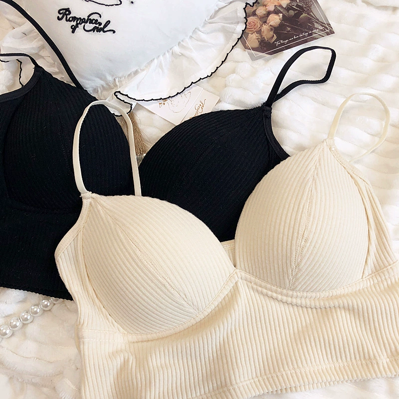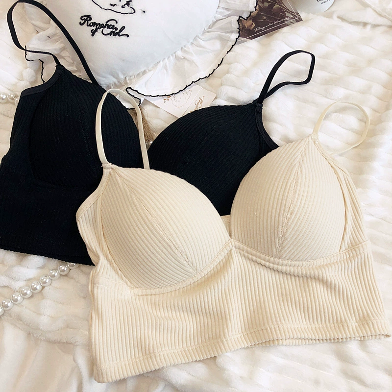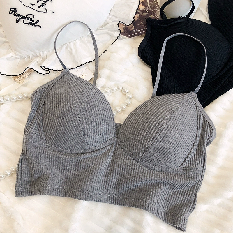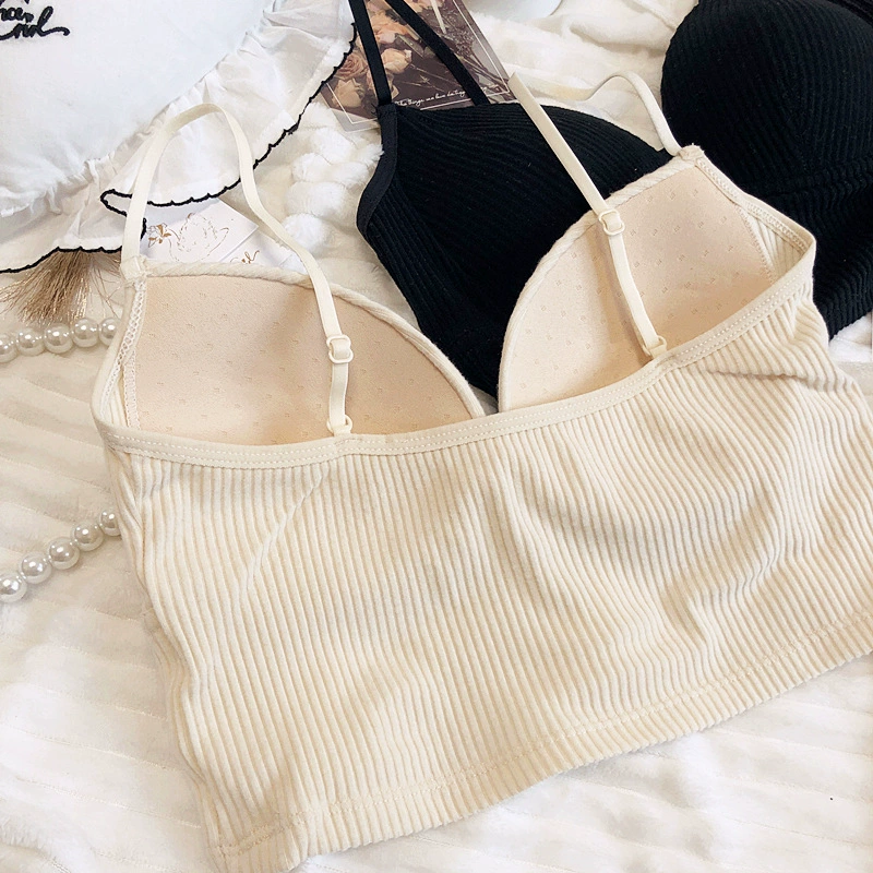 Simple velvet warm sling bra detachable chest pad no steel ring upper support thin strap big chest showing small underwear
