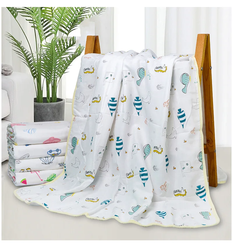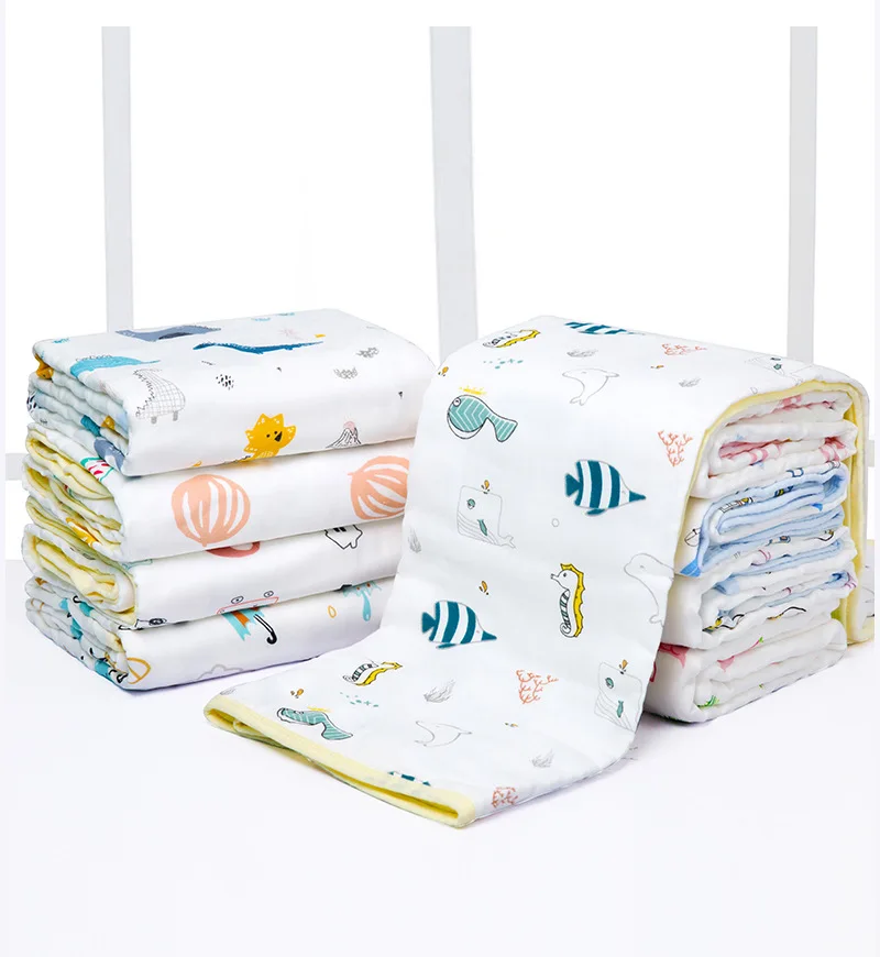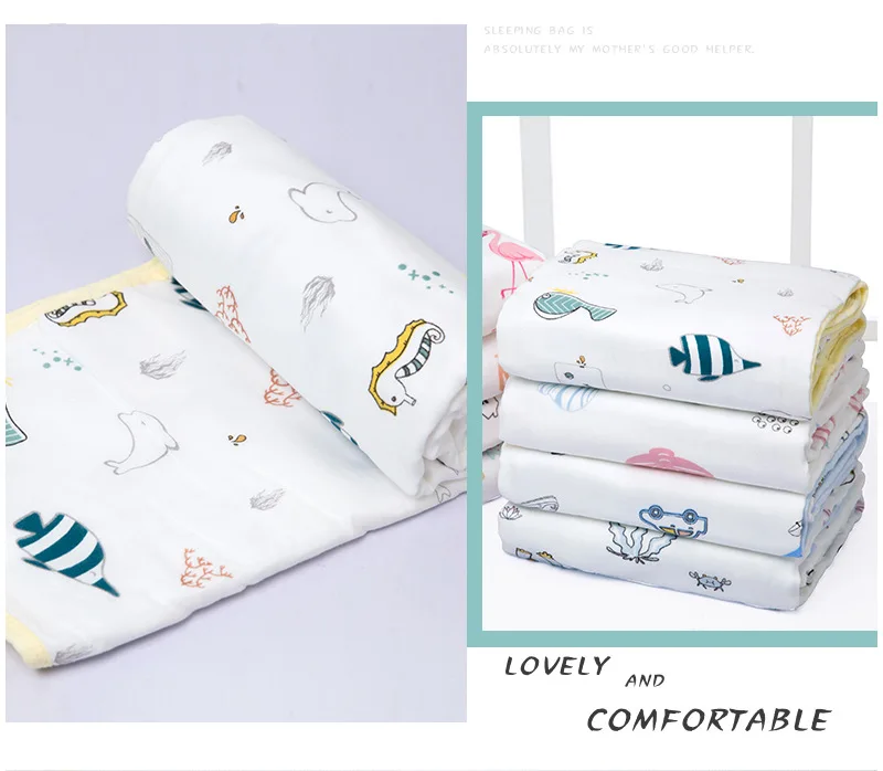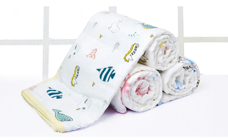 Six Layers Muslin Baby Swaddler Blanket Cotton Scarf Infant Spring Summer Stroller Blanket Baby Quilt Cartoon Blanket 100*150CM