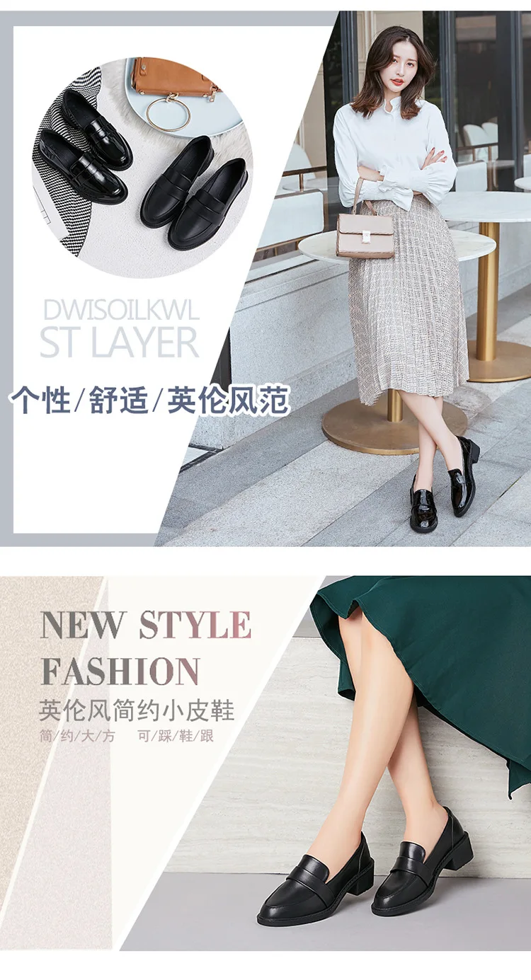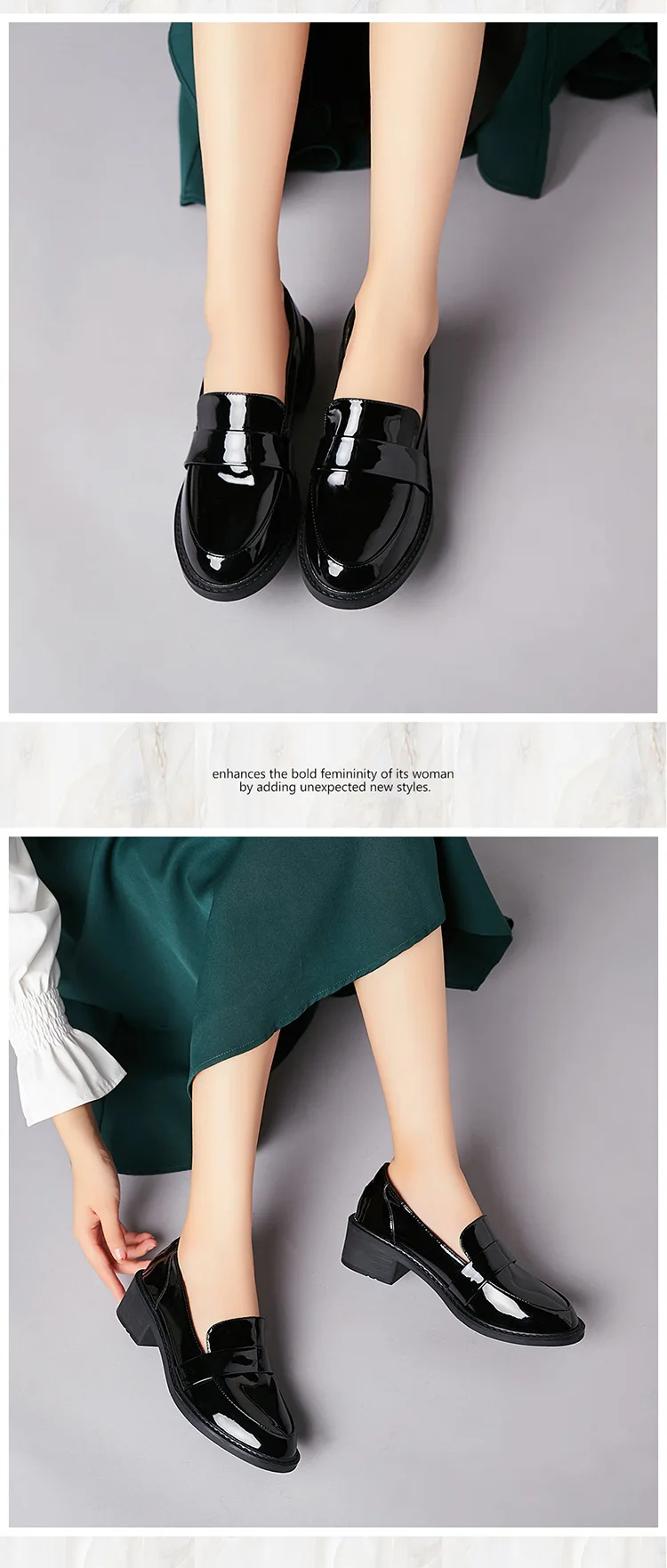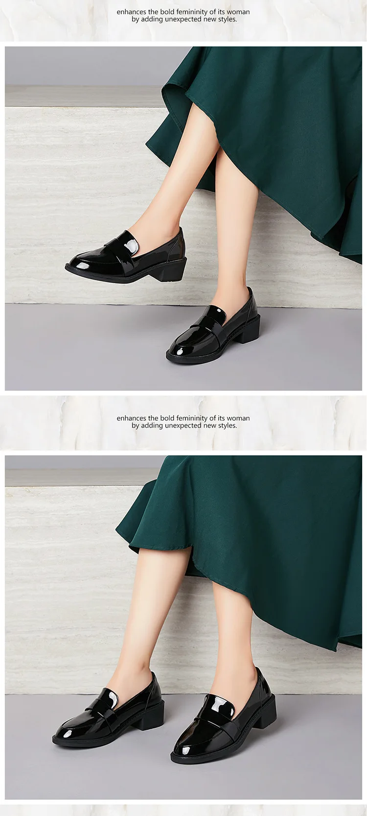 Shine Soft Leather Office Shoes Slip On Work Single Shoes