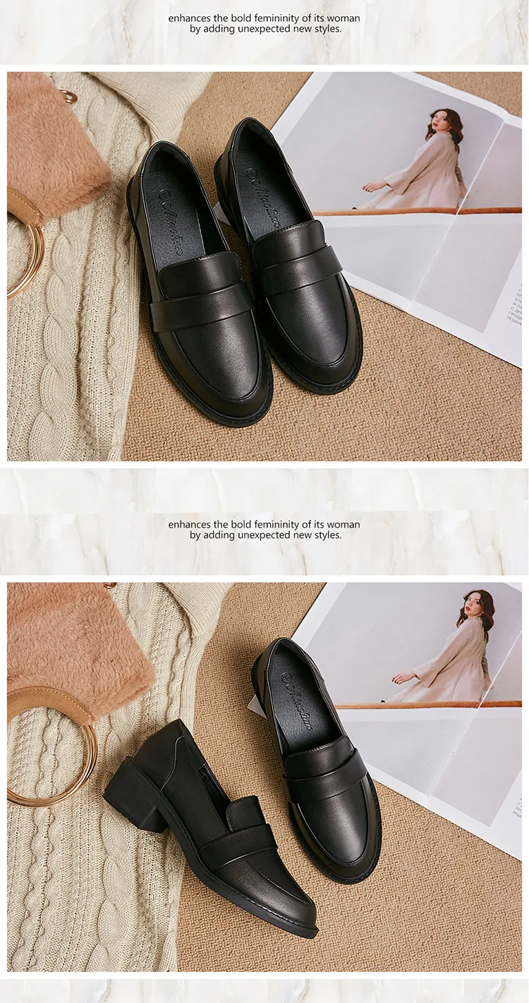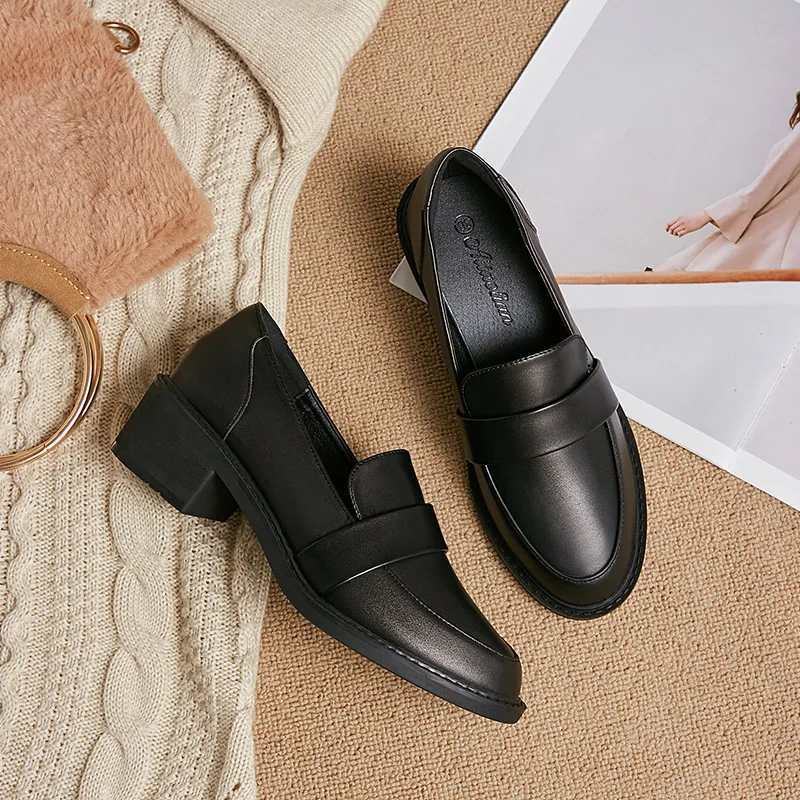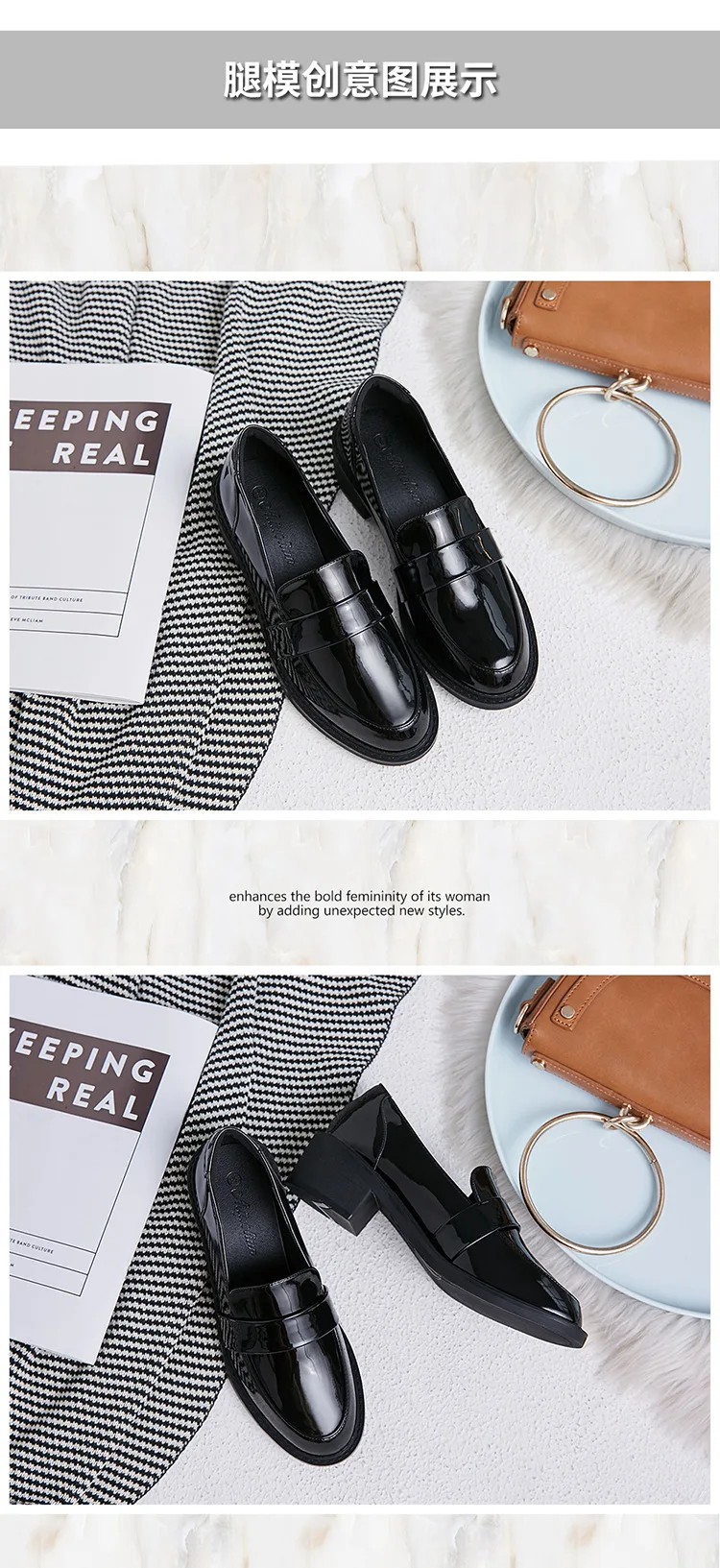 Shine Soft Leather Office Shoes Slip On Work Single Shoes