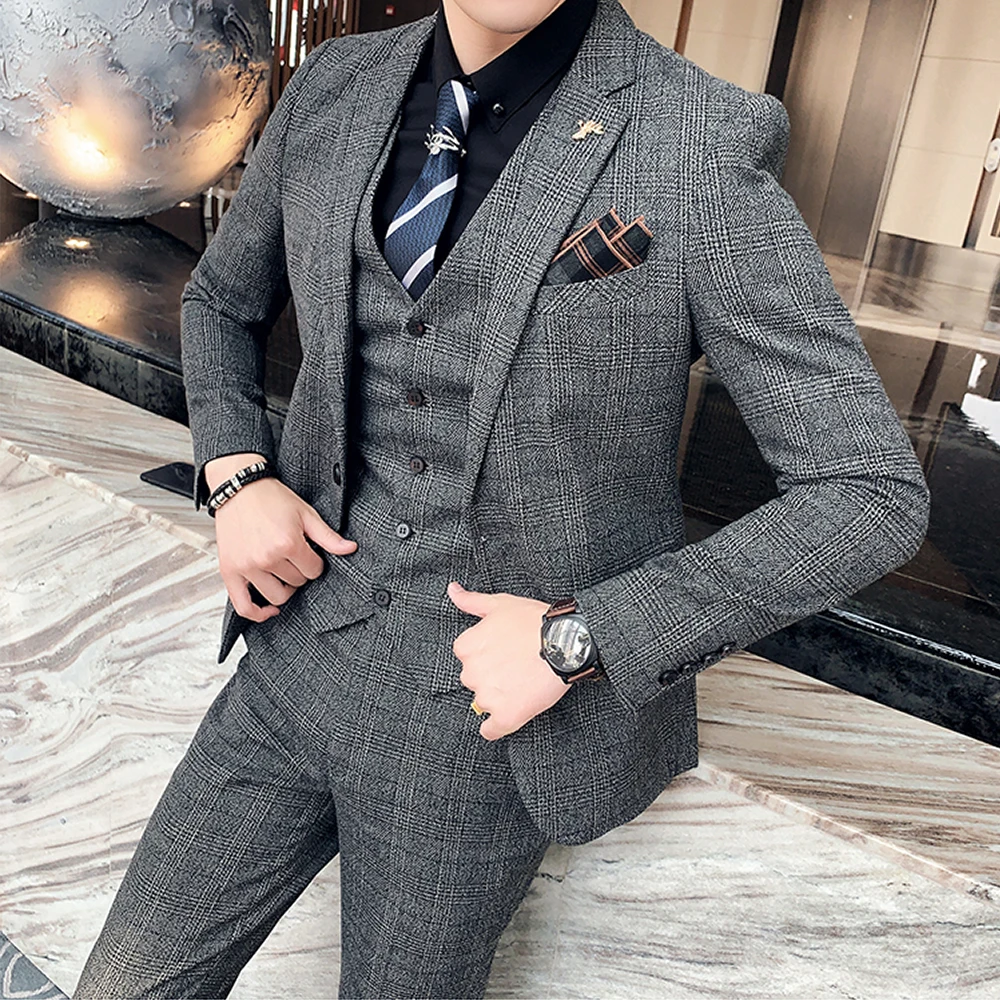 Size 7XL ( Jacket + Vest + Pants ) Brand Boutique Lattice Retro Design Mens Casual Business Slim Suit Groom Wedding Dress Tuxedo