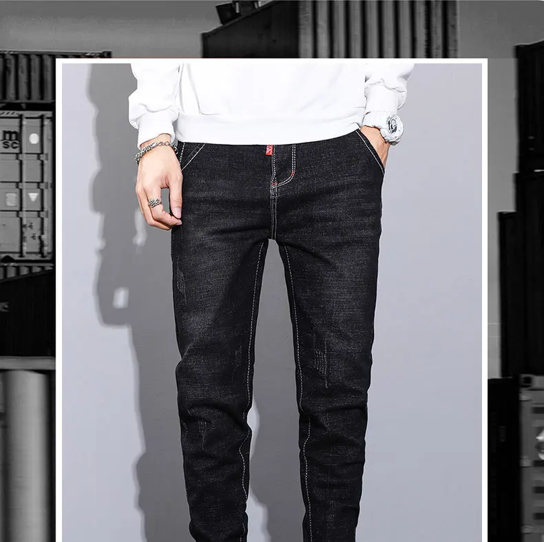 秋冬新款牛仔裤男士潮牌修身小脚长裤子韩版潮流百搭