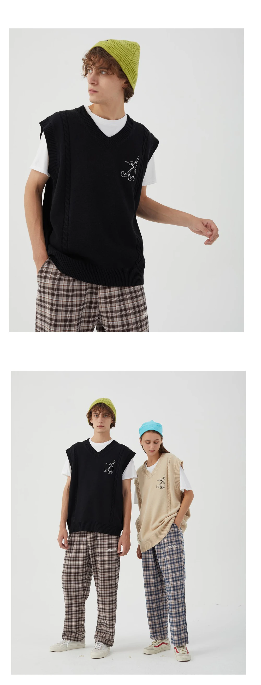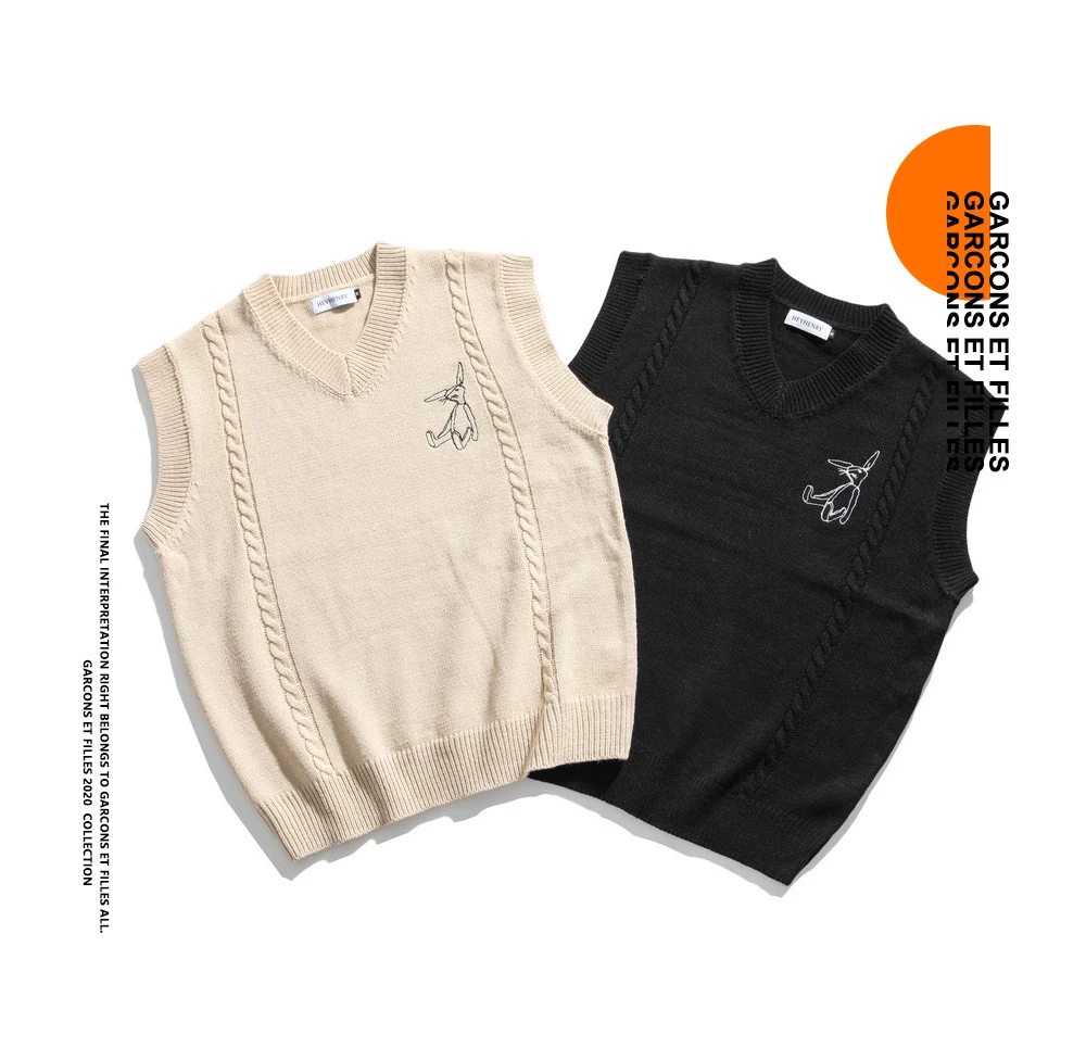 Sleeveless Vest Vintage Sweater Mens Clothes Knitted Retro Sweater Harajuku Pull Homme Tops Sweaters Pullover Sweter