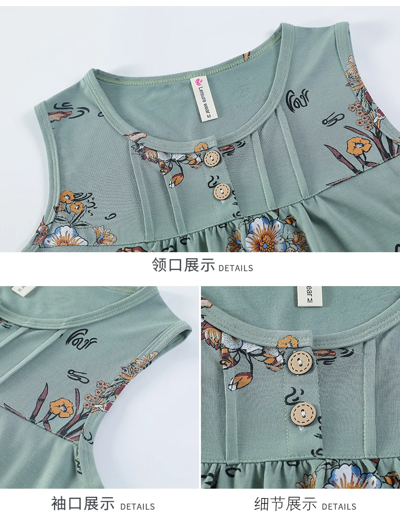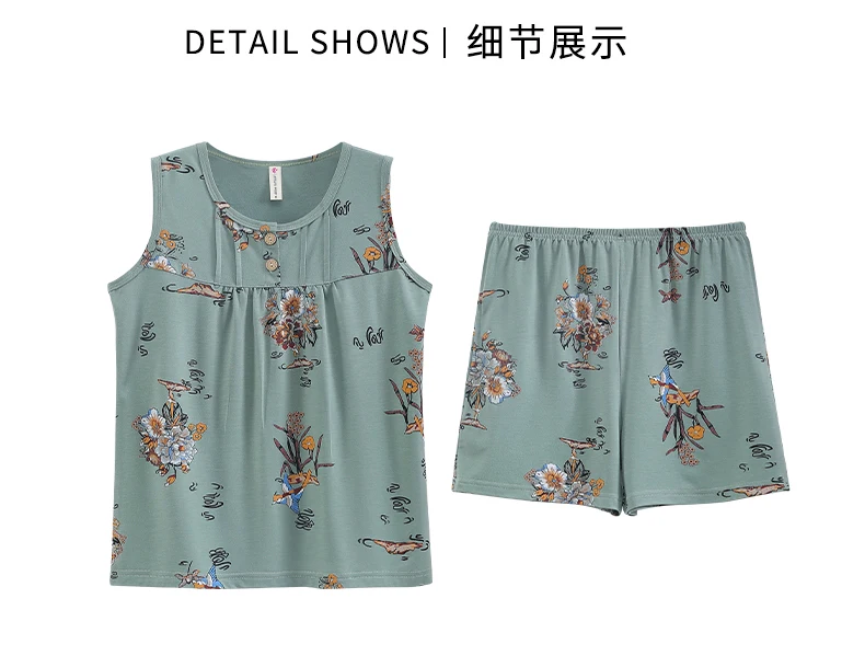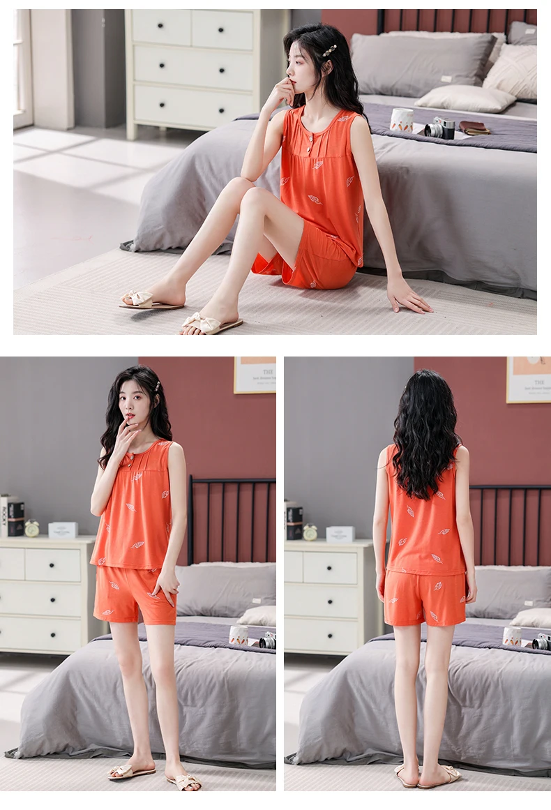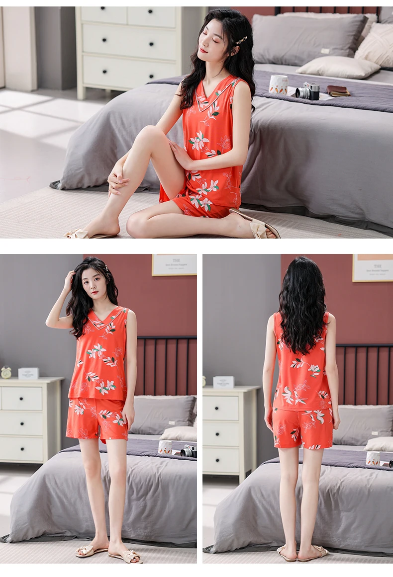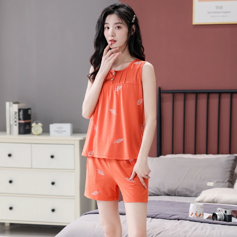 Small Flower Print Women Vest Pajama Sets Stretch Modal Sleepwear Casual Tracksuit 2 Pcs/set Sleeveless Summer Home Lounge Gift