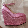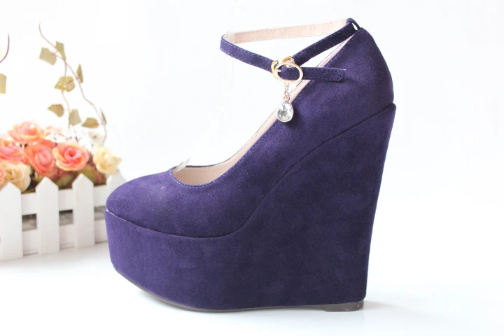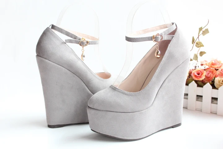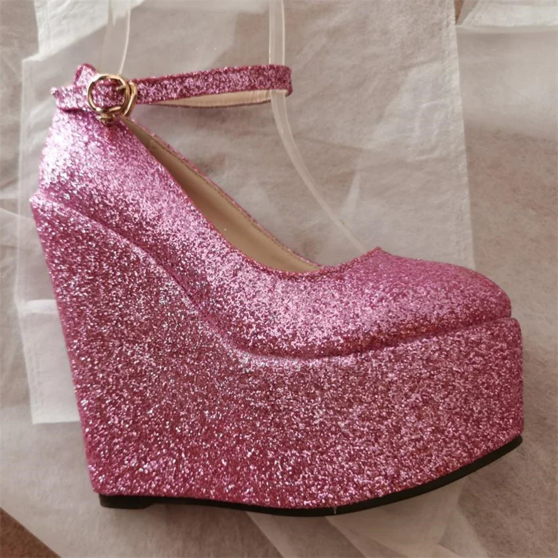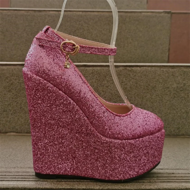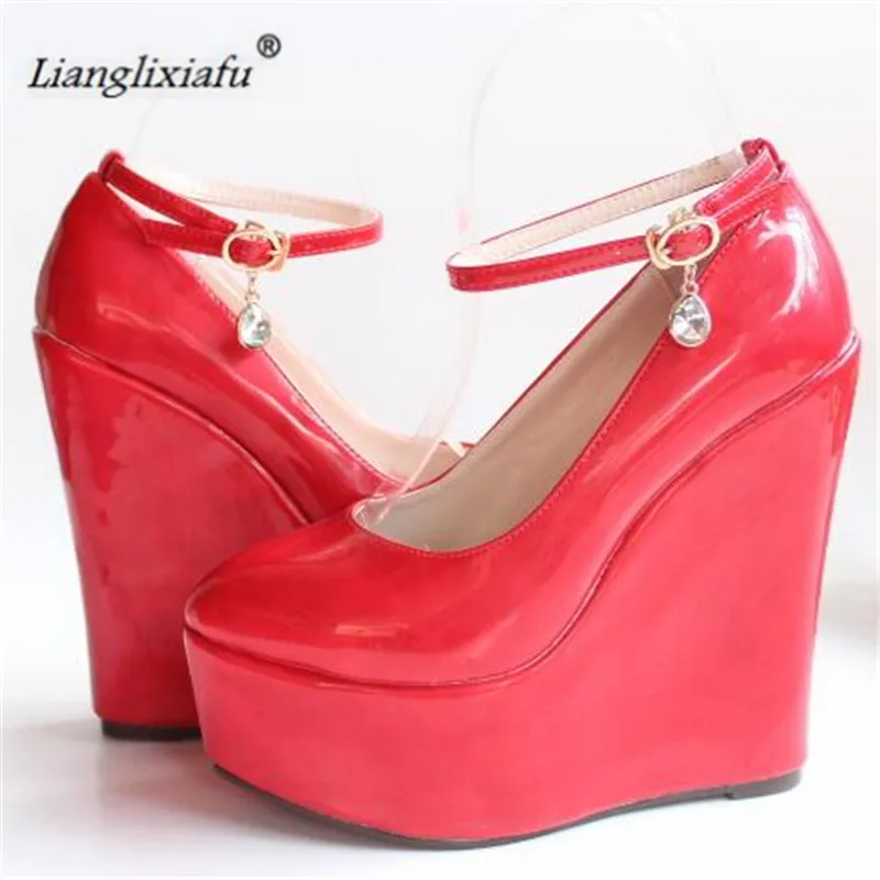 Small Yards:30 31 32 33 34 Plus Size Sweet Wedges Stilettos Wedding Shoes For Woman Sexy 15cm High Heels Platform Buckle Pumps