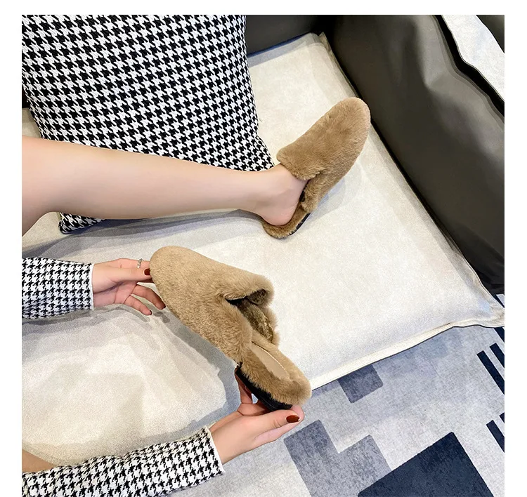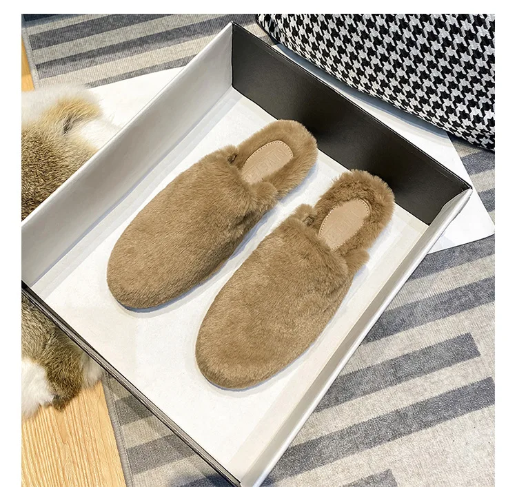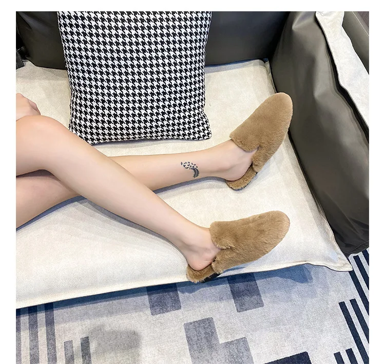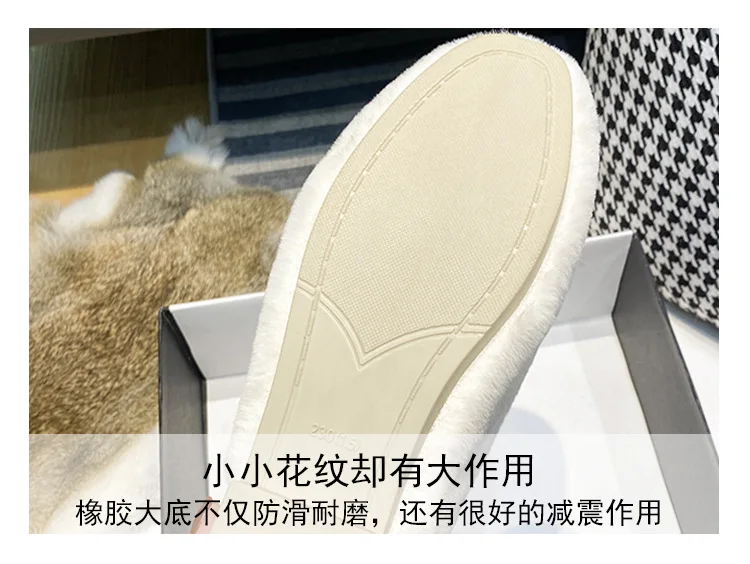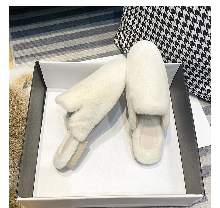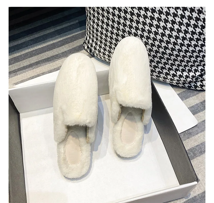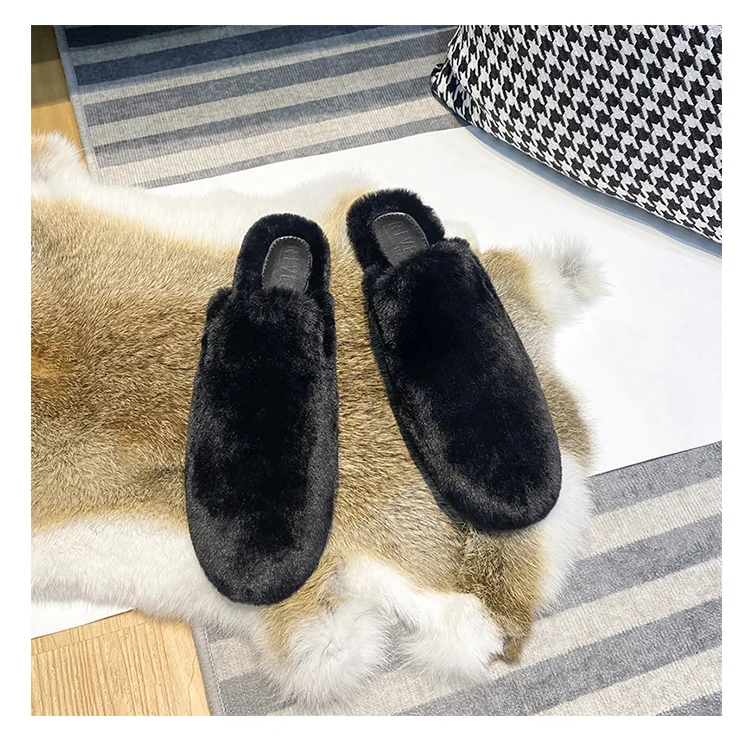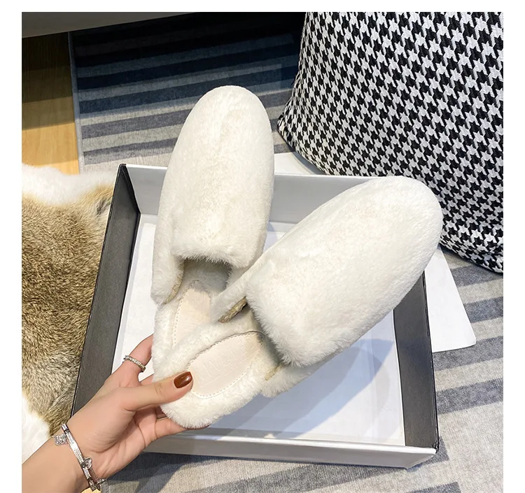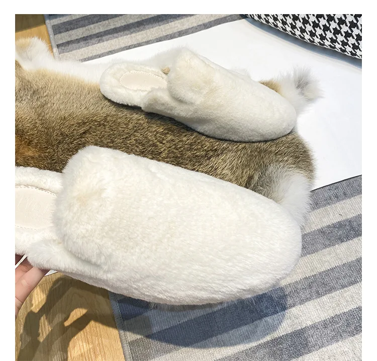 Smooth Faux Fur Slippers Women Home&Outdoor Shoes Winter White Wool Slides Fluffy Rabbit/Mink Hair Mules Bedroom Pantuflas Mujer