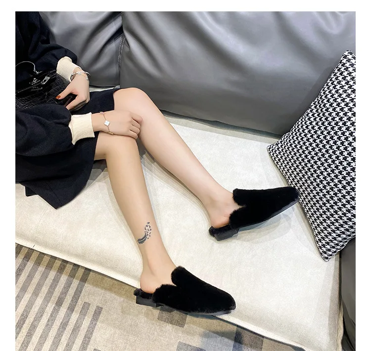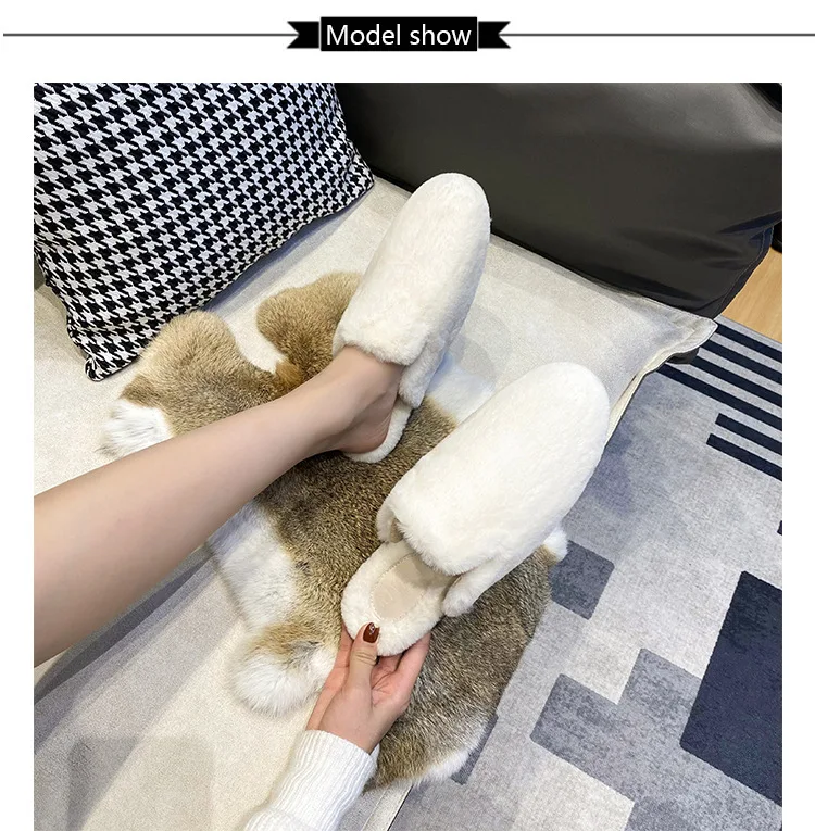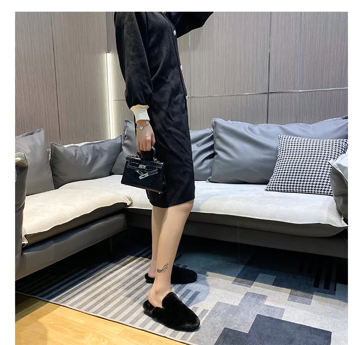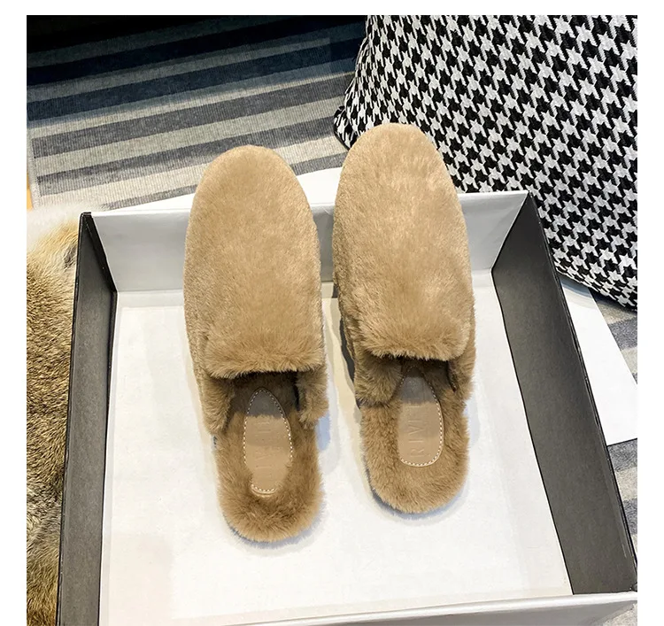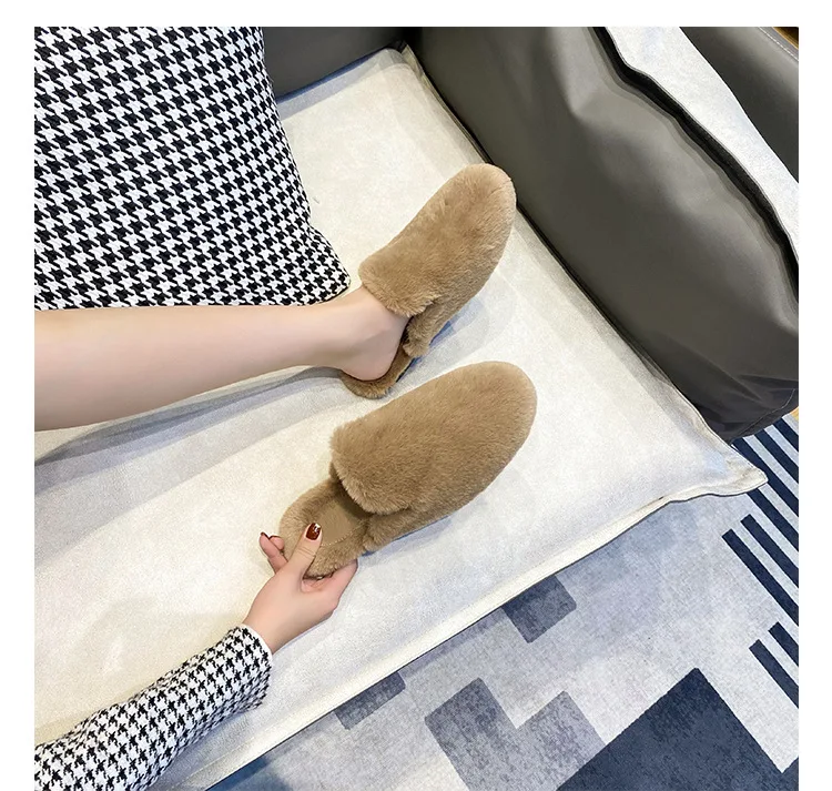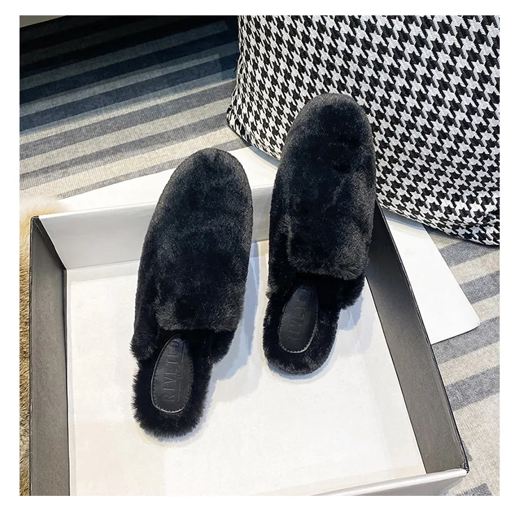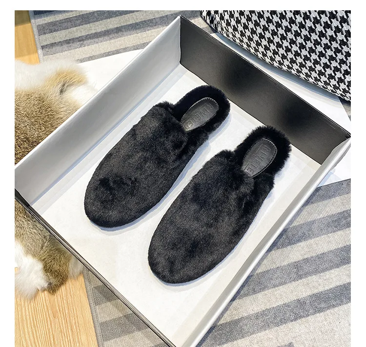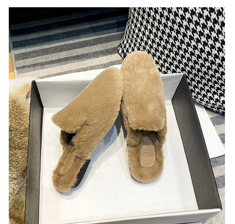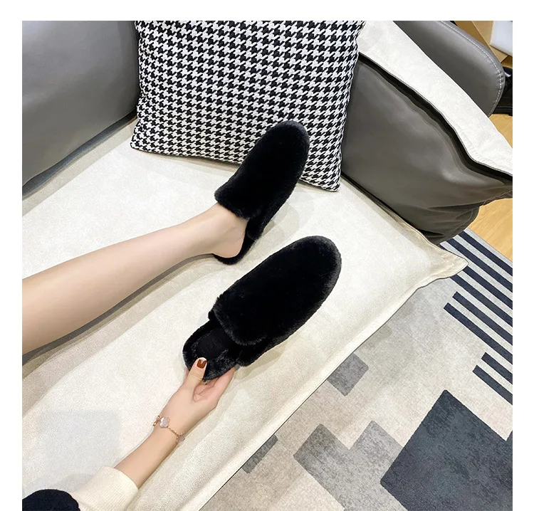 Smooth Faux Fur Slippers Women Home&Outdoor Shoes Winter White Wool Slides Fluffy Rabbit/Mink Hair Mules Bedroom Pantuflas Mujer