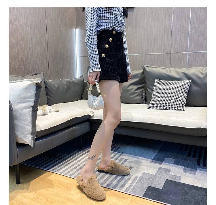2022 Winter Fur Slides Home Plush Cotton Slippers