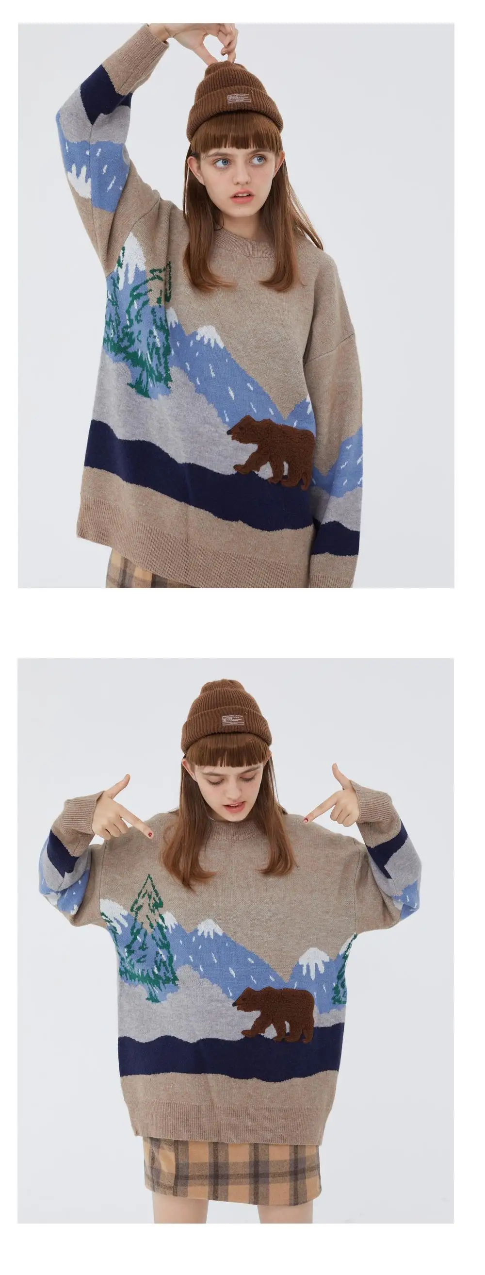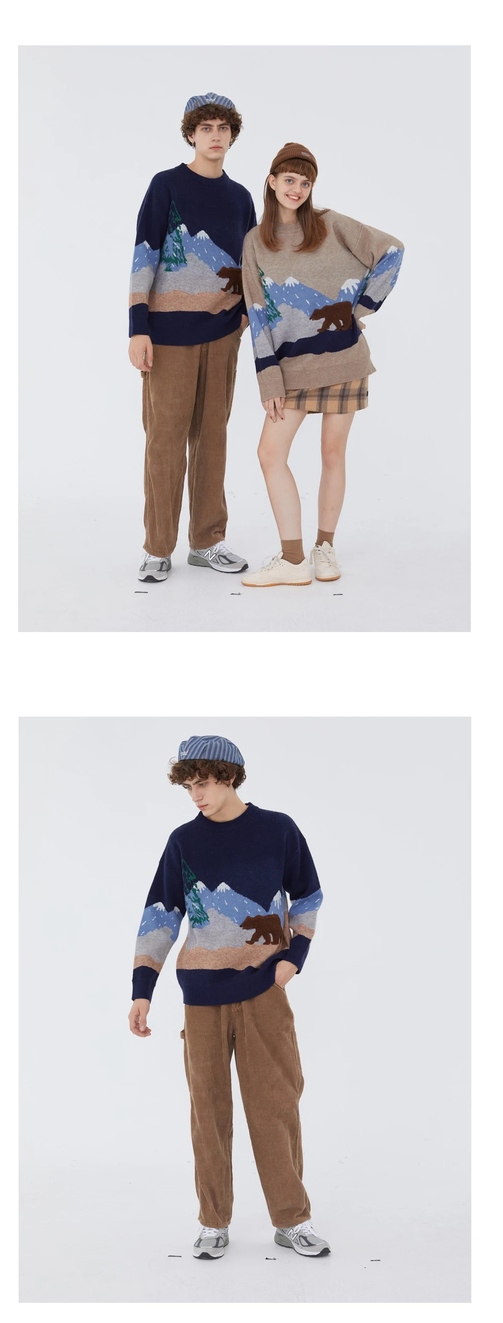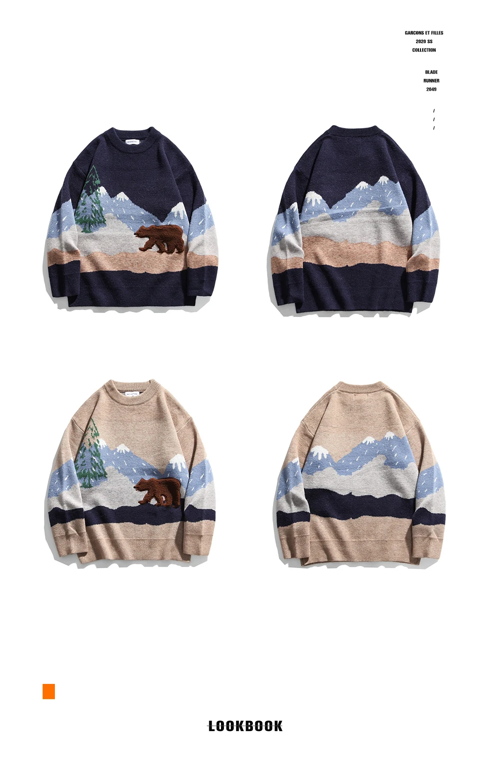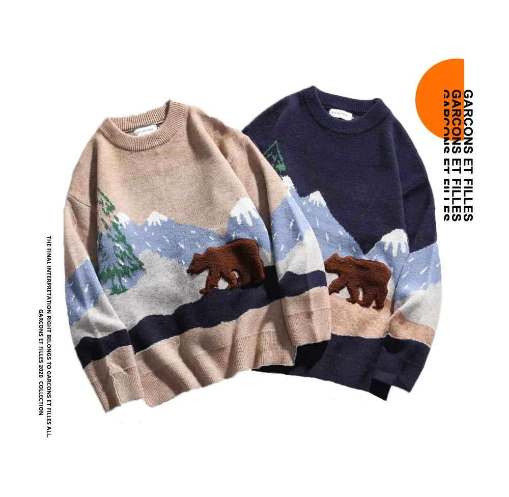 Snowy Funny Couple Clothes Vintage Clothes Knitted Retro Sweater Harajuku Men Clothing Pull Homme Tops Nice Pullover Sweter