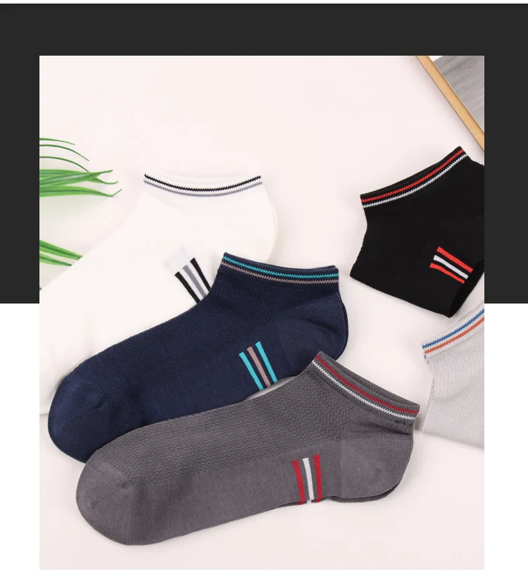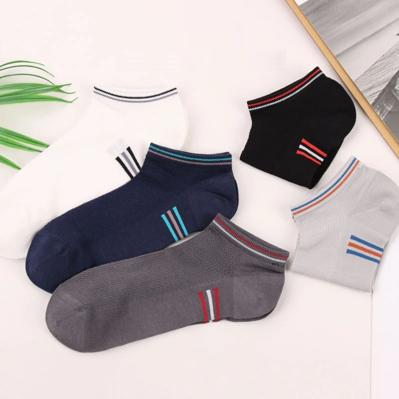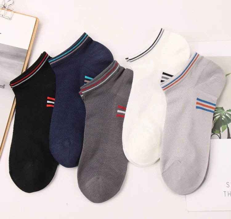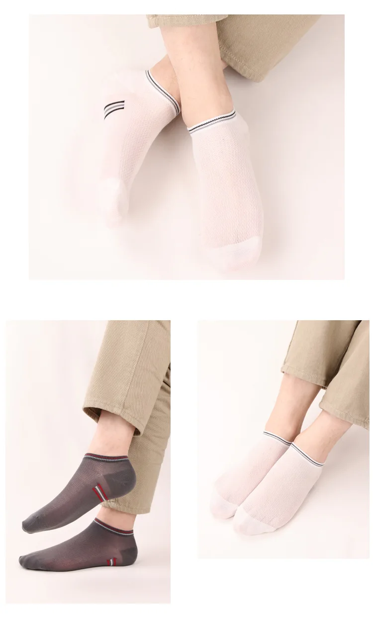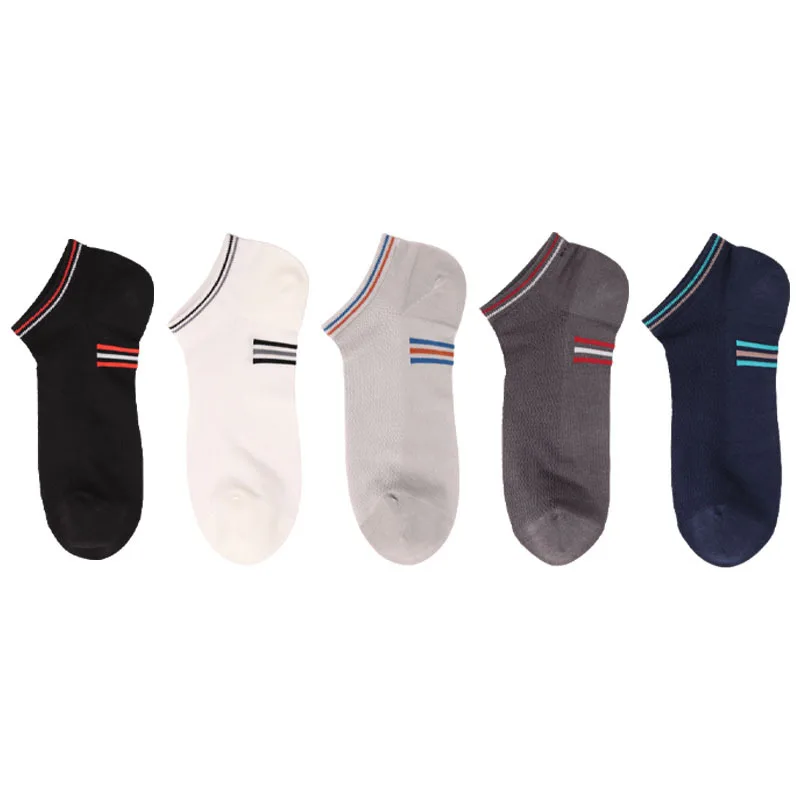 Socks Men New Harajuku Male Thin Cotton Medias Hombre Sports Foot Breathable Cool Mesh Horizontal Strip Ankle Sokken 5 Pairs