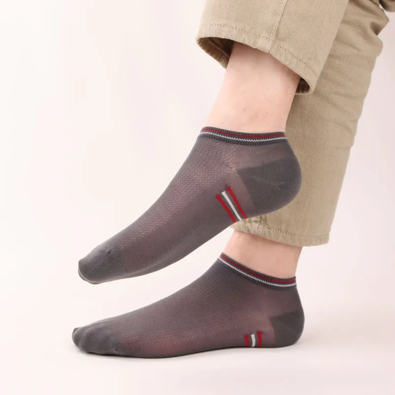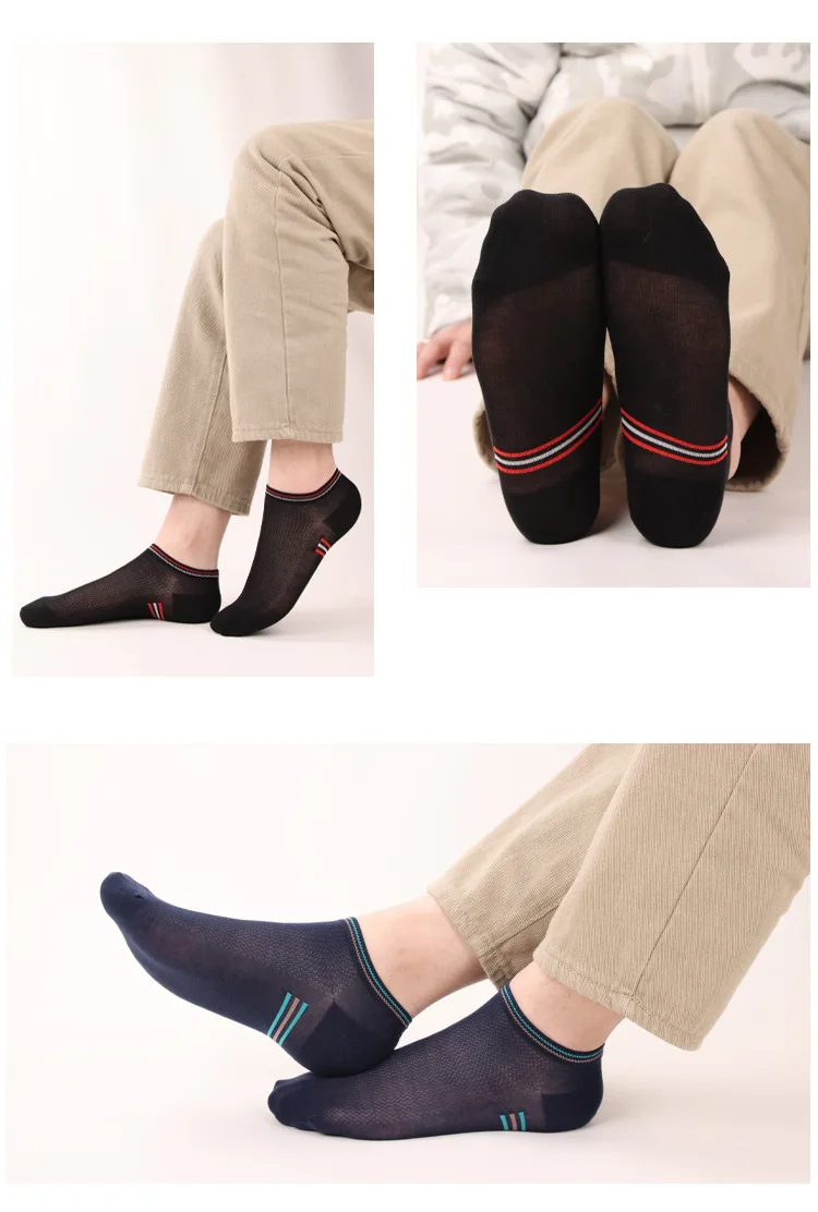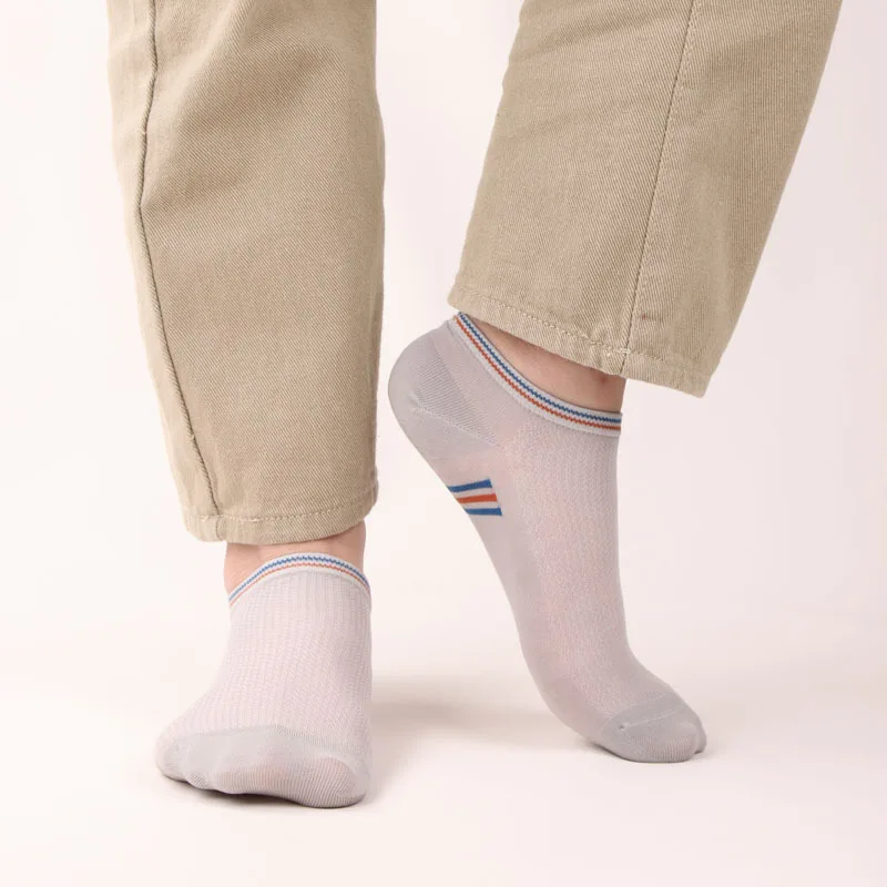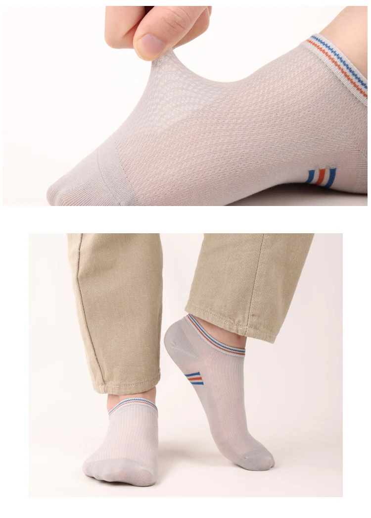 Socks Men New Harajuku Male Thin Cotton Medias Hombre Sports Foot Breathable Cool Mesh Horizontal Strip Ankle Sokken 5 Pairs