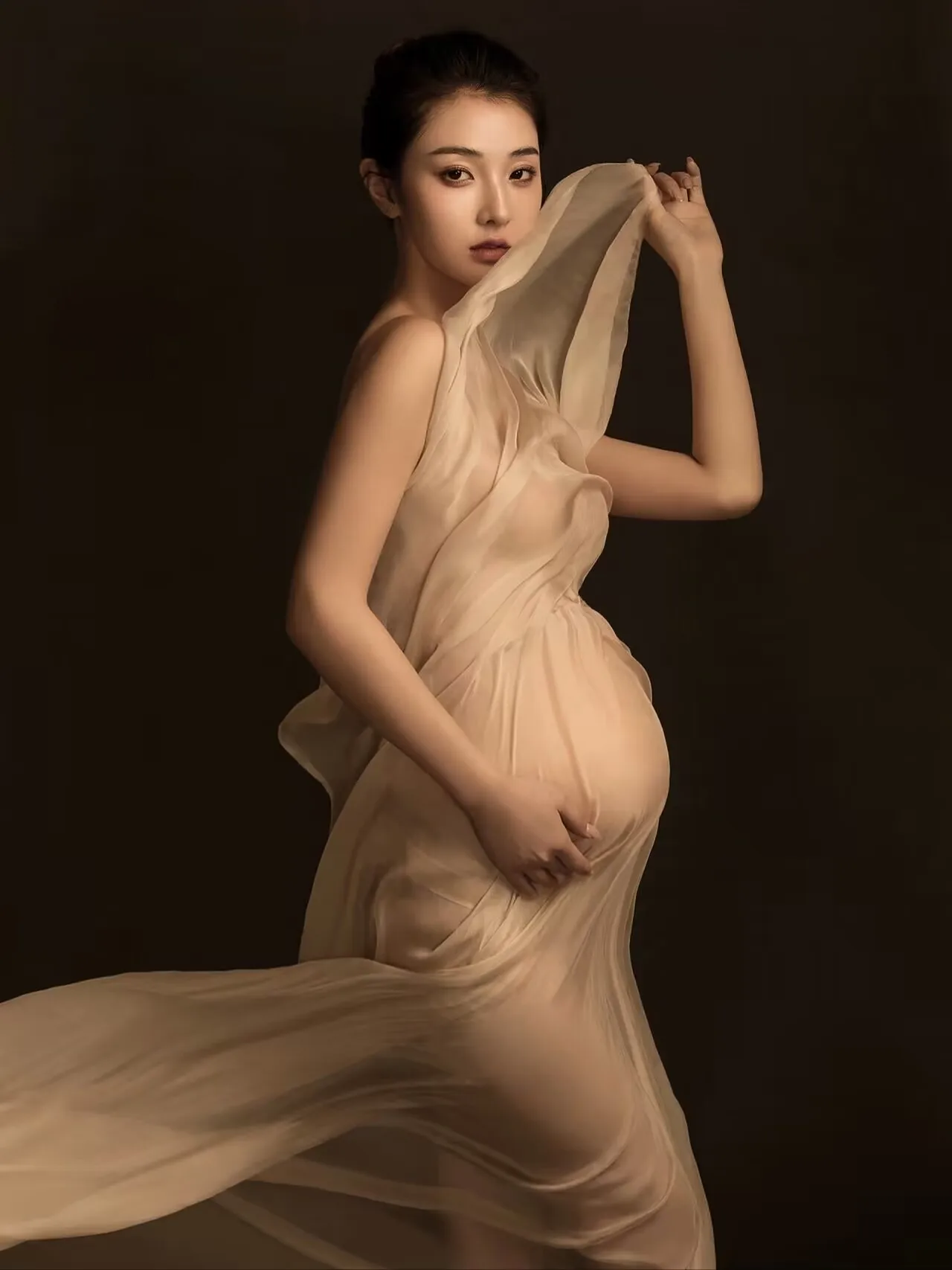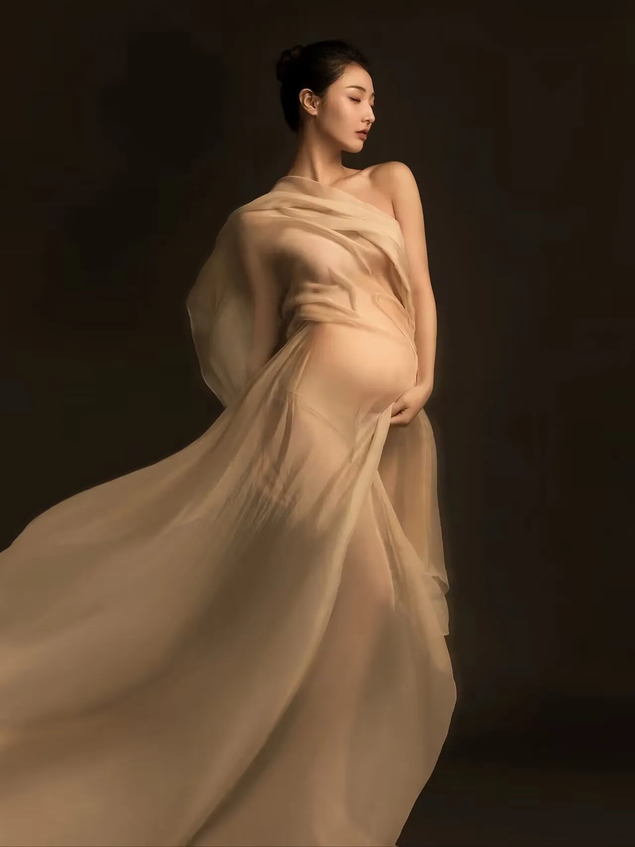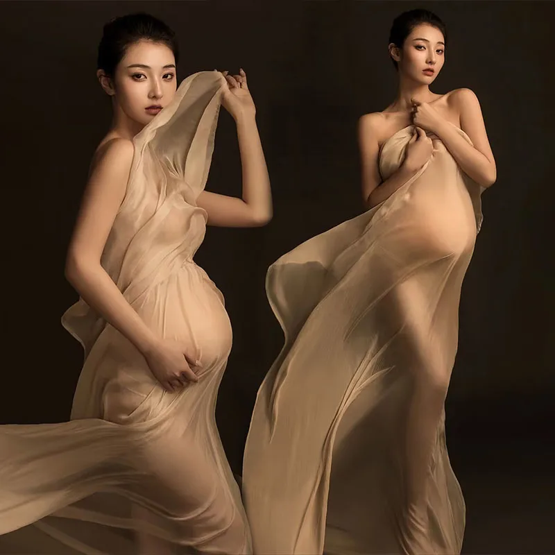 Soft Fabric Maternity Photography Props Dress Studio Shooting Accessories Transparent Tulle Elegant Simple Modeling Fabric