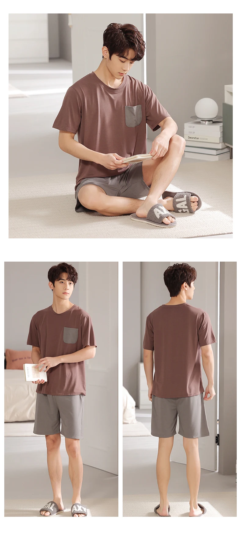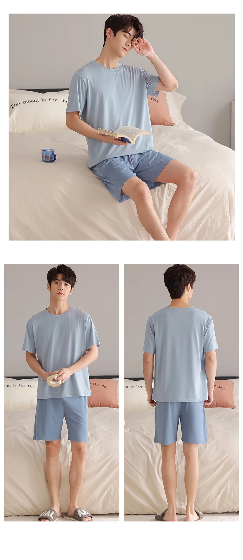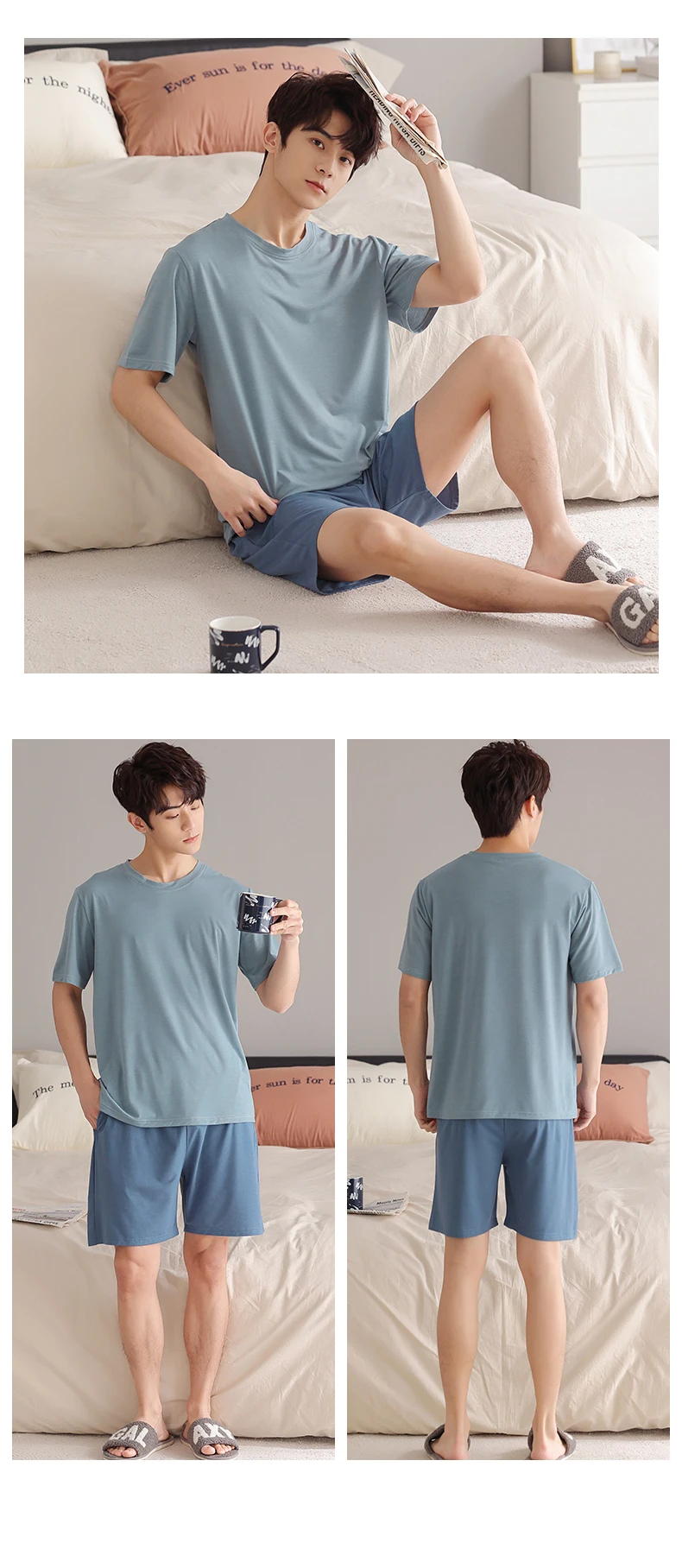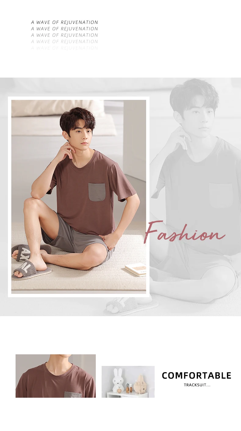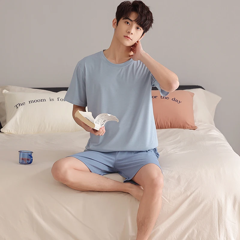 Soft Modal Men Pyjama Set Summer L-4XL Men Pajama Suit Short Sleeve Solid Pajama Male Sleepwear Spring Pijama Man Nightgown XXXL