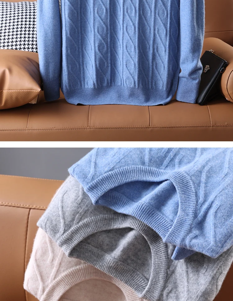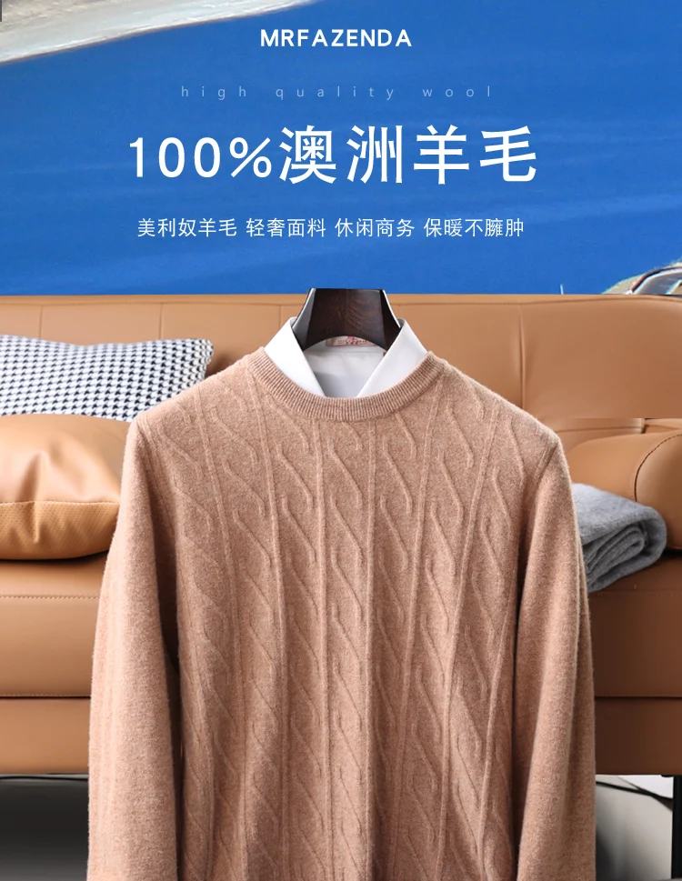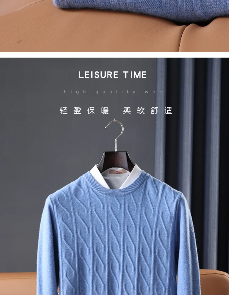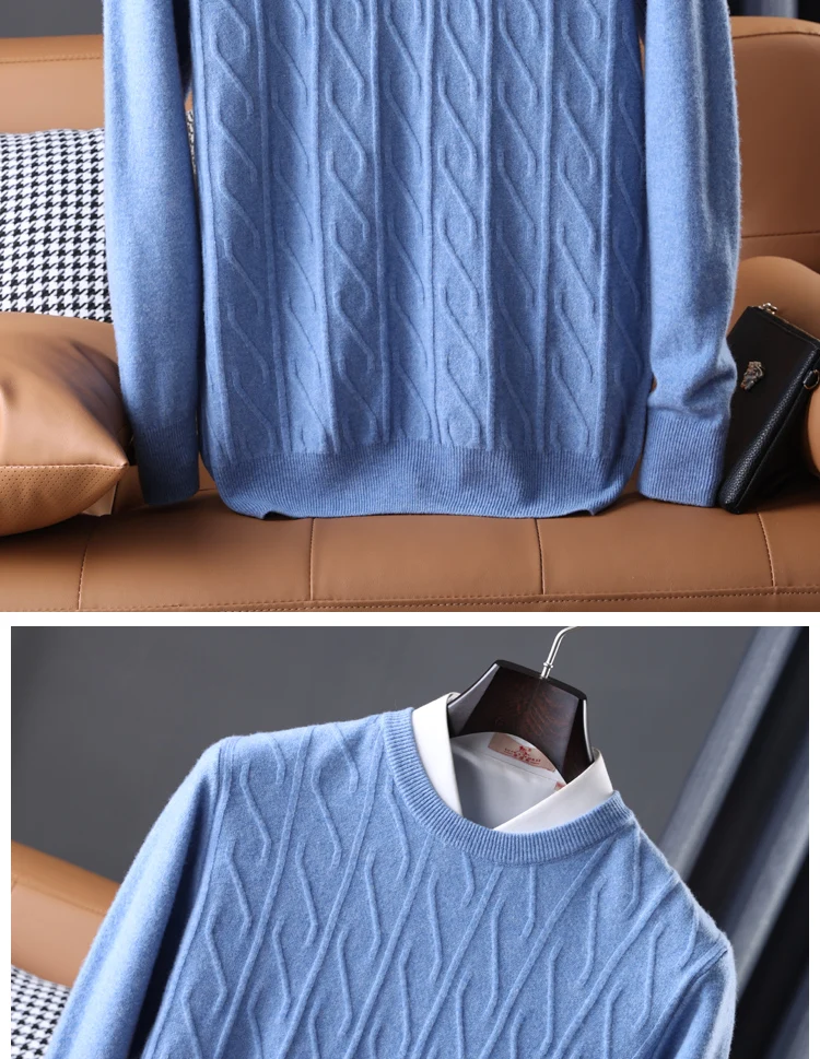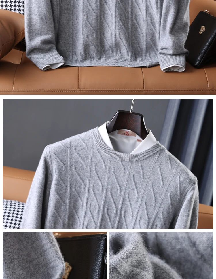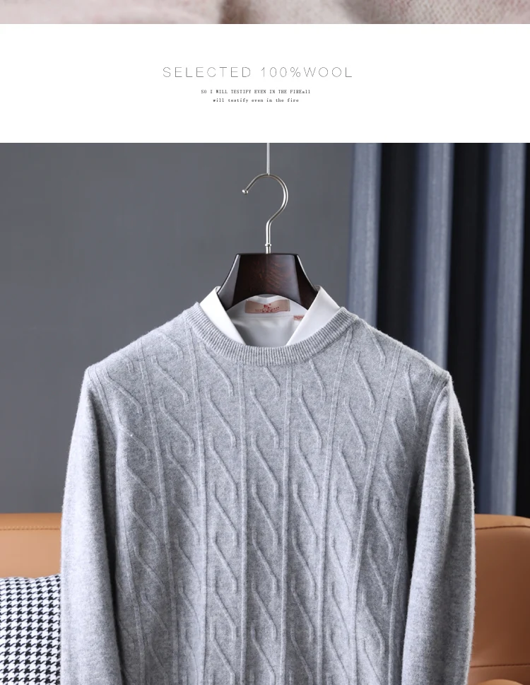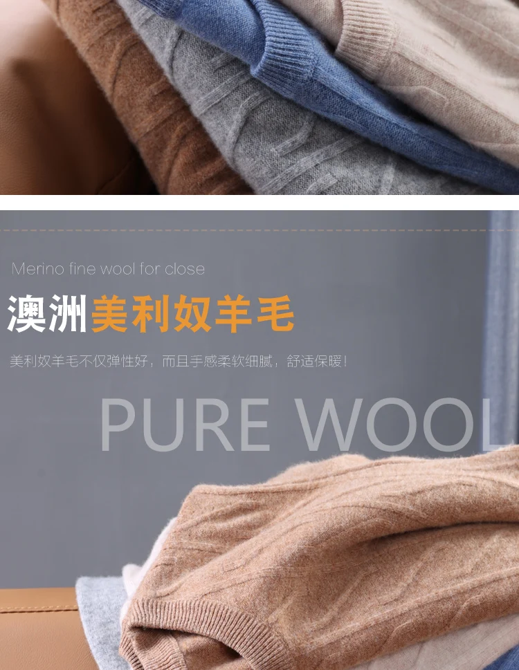 Soft Warm Sweaters Men 100% Pure Wool Knitted Jumpers Hot Sale Winter Oneck Full Sleeve Thick Pullovers Solid Color Clothes