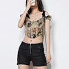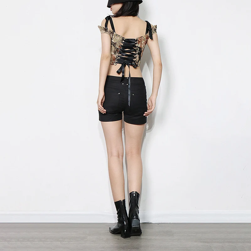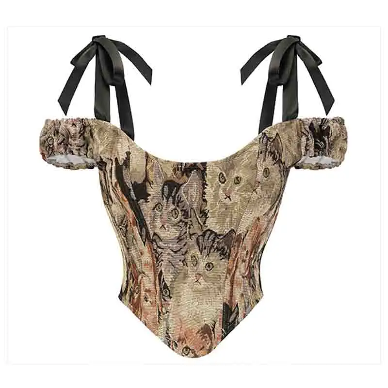 Spaghetti Strap Crop Top Women’s Lovely Cat Bandage Bones Side Zipper Overbust Corset Vest Lace Up Princess Corset Top