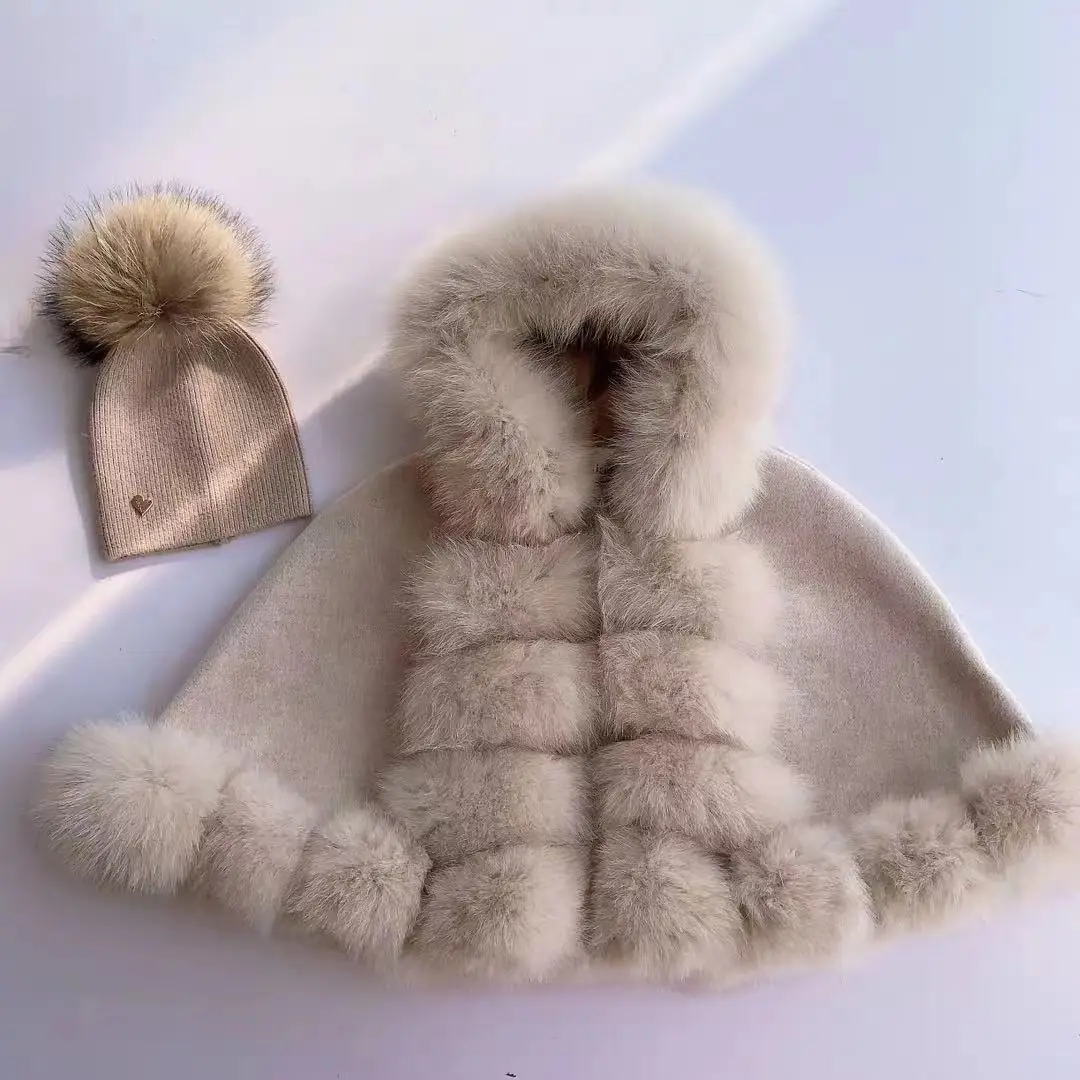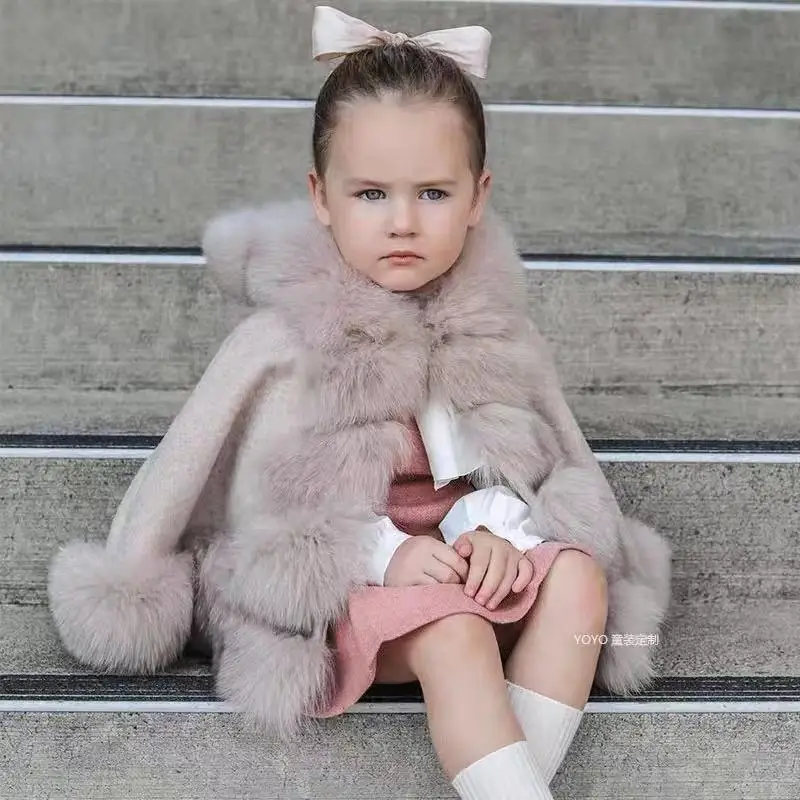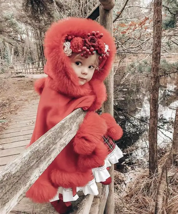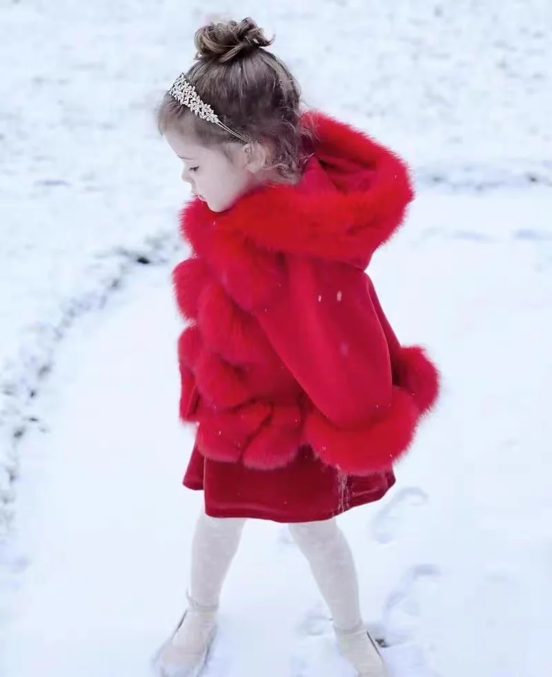 Spanish Children Wind-proof Fox Fur Princess Coat Wool Jacket Baby Thickened Toddler Girl Winter Clothes Christmas Jacket
