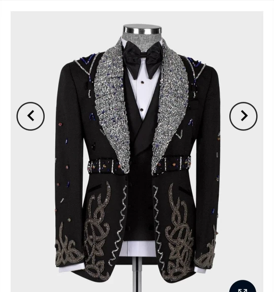 Sparkly Men’s Suits Tailor-Made 3 Pieces Blazer Vest Pants One Button Sequins Satin Peaked Lapel Business Wedding Groom Tailored