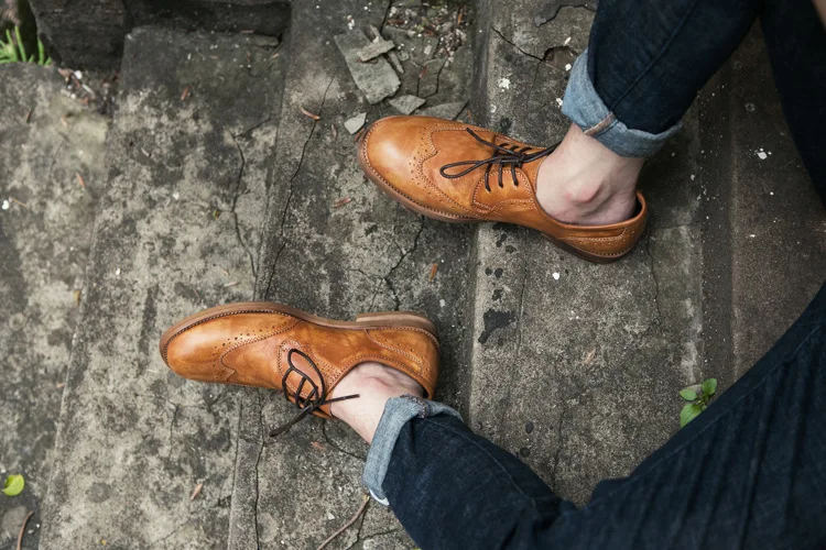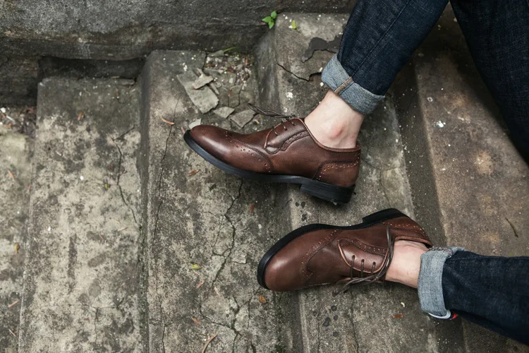 Spring and autumn new fashion casual shoes breathable retro versatile trend men’s shoes outdoor hand make Carved Loafers