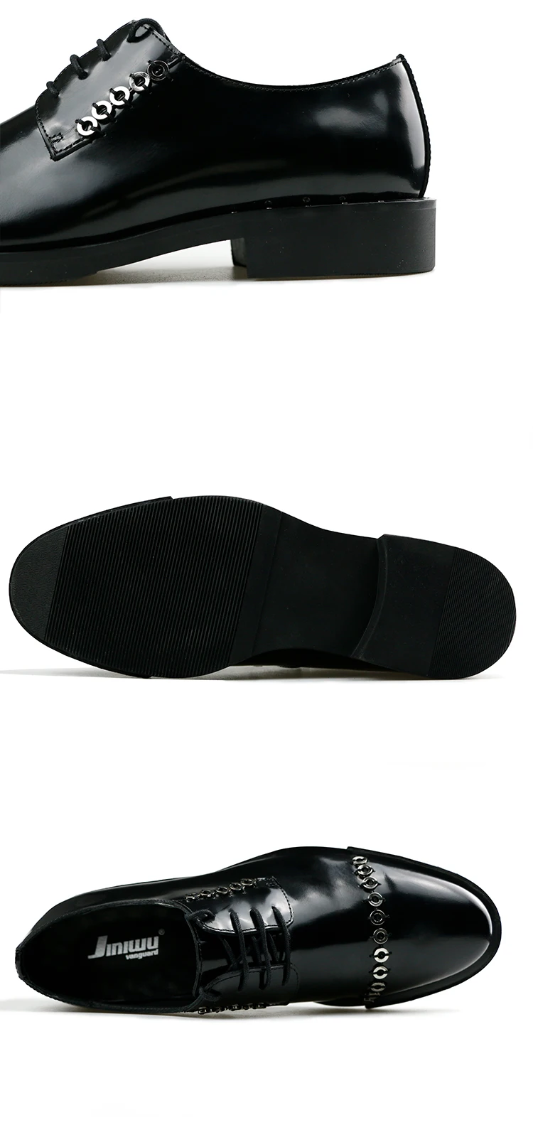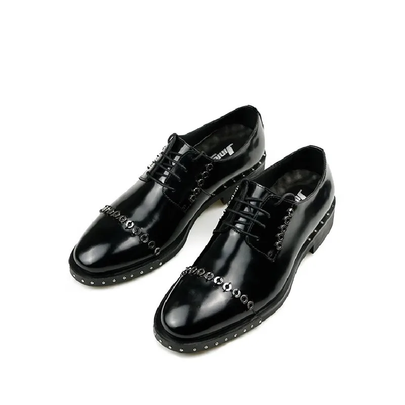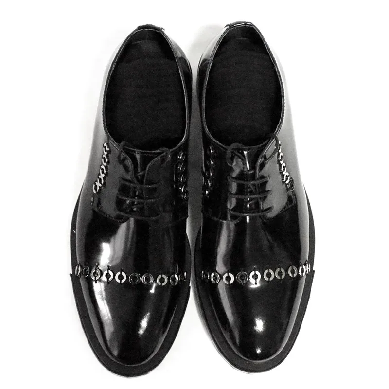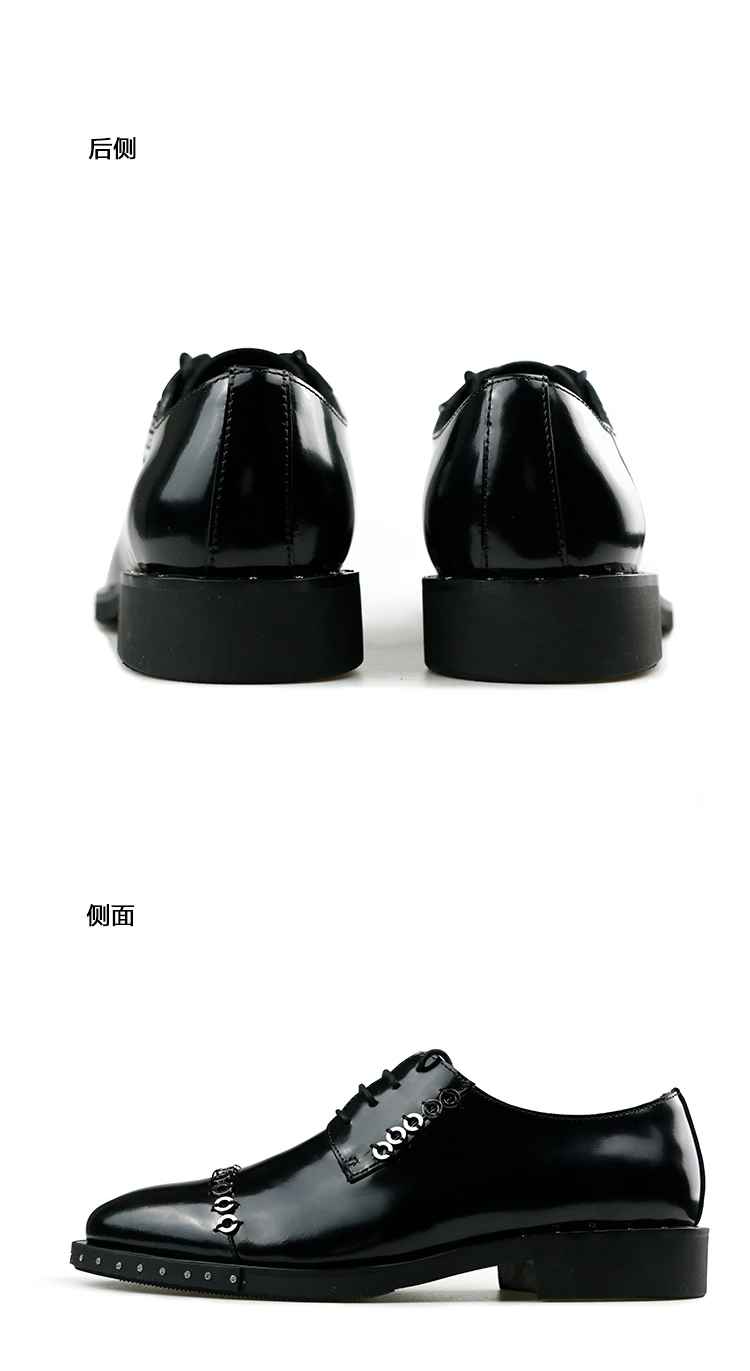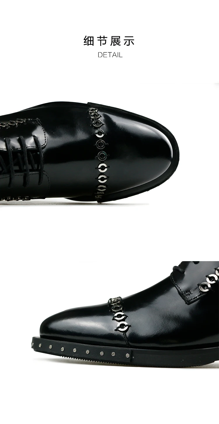 Spring and Summer Copper Ring Bright Leather Lace up Derby Shoes Banquet Rivet Square Heel Flat Bottom Large and Small Men Shoes