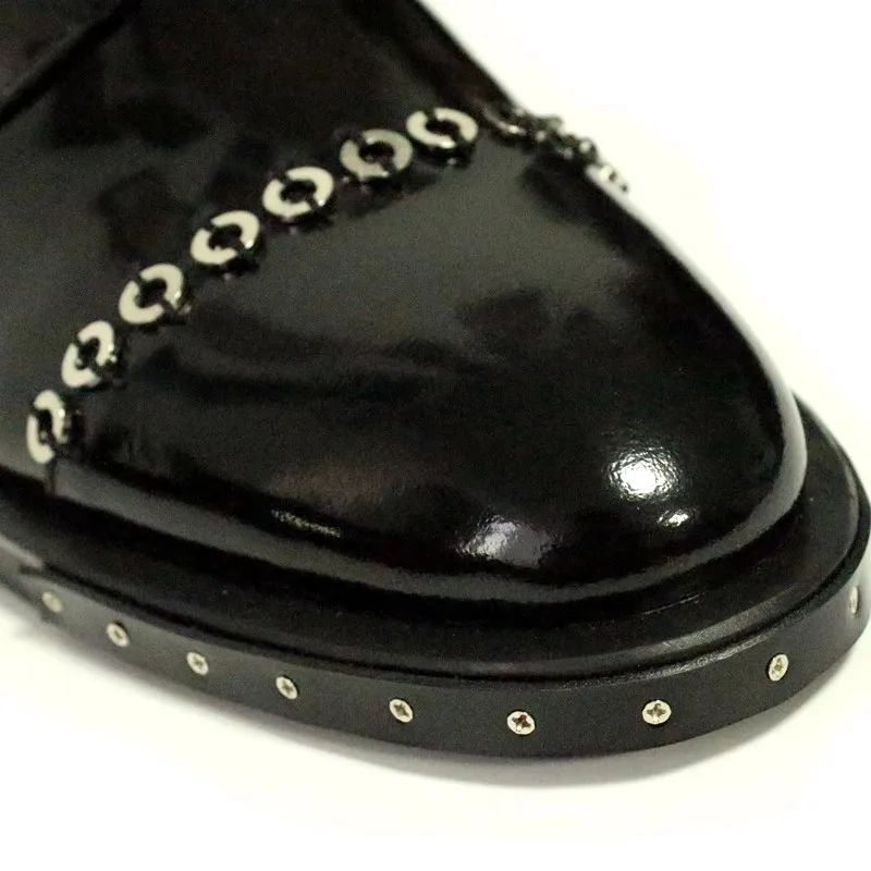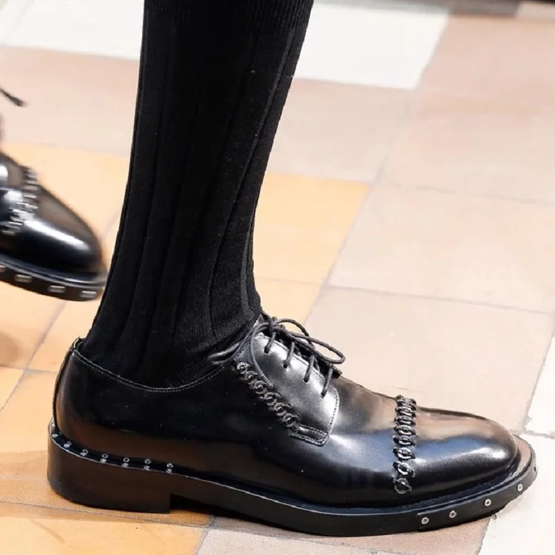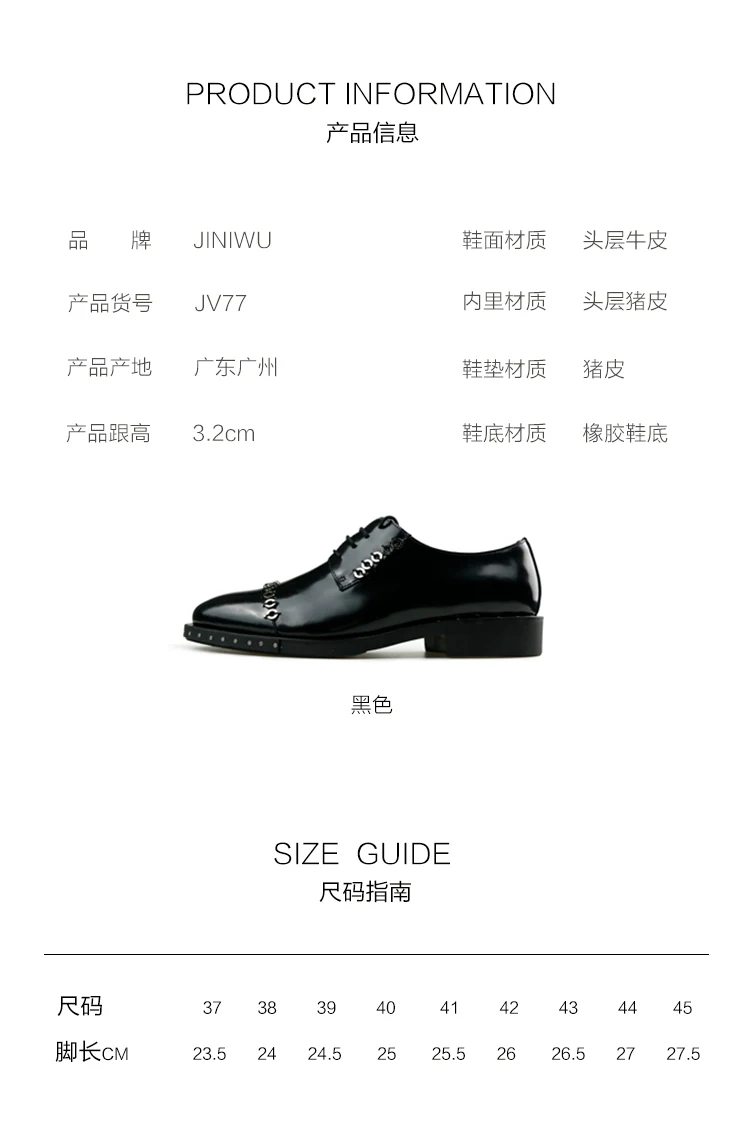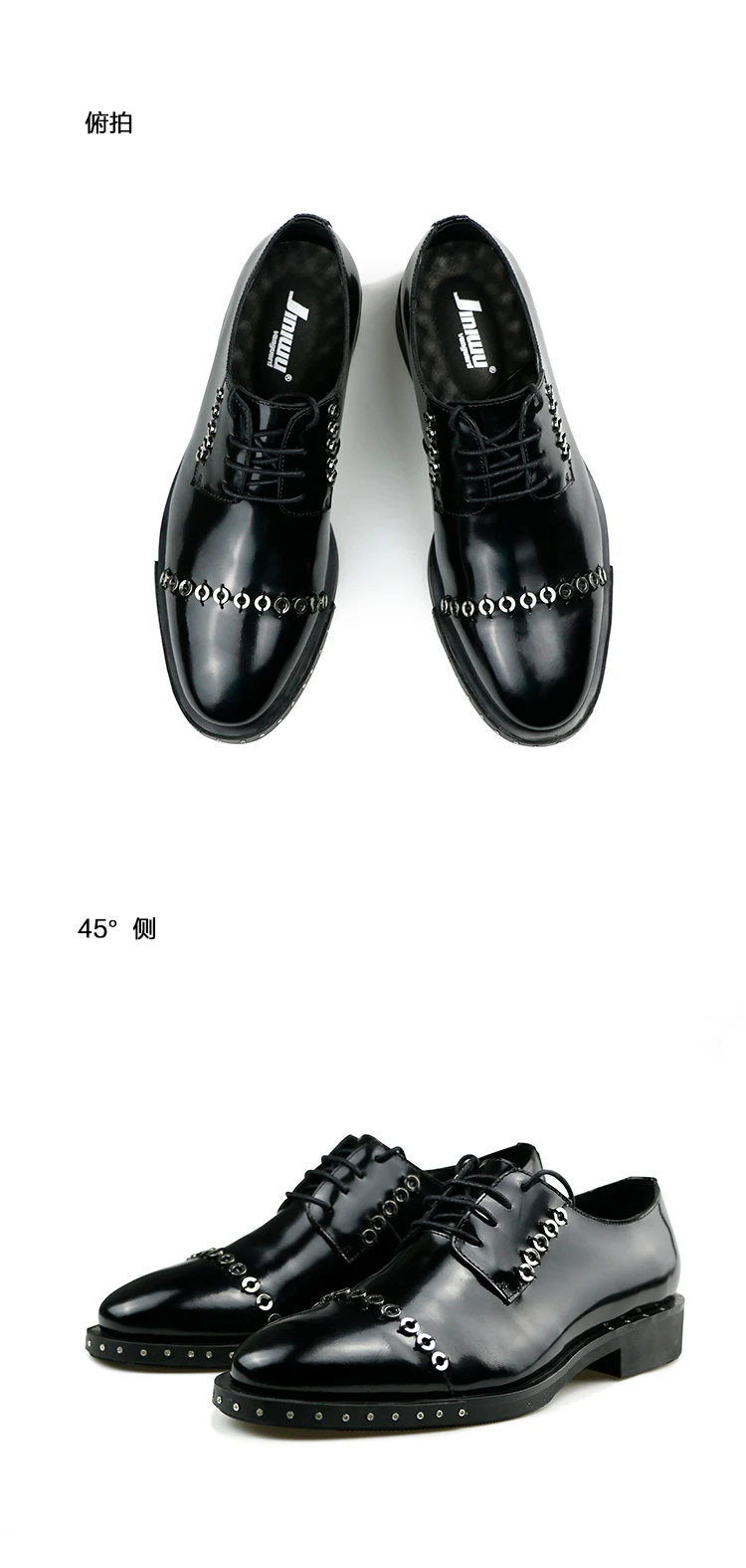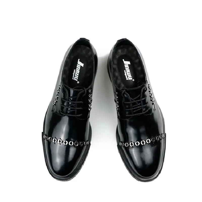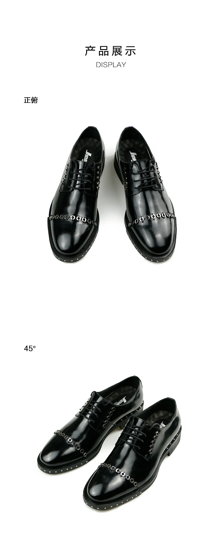 Spring and Summer Copper Ring Bright Leather Lace up Derby Shoes Banquet Rivet Square Heel Flat Bottom Large and Small Men Shoes