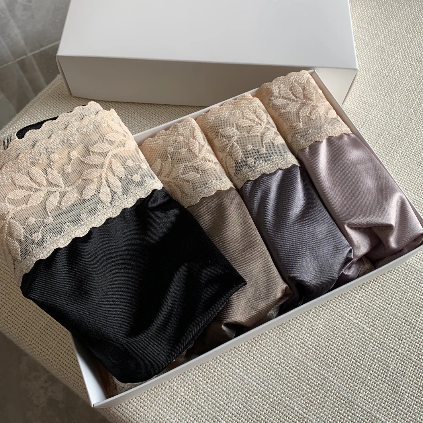 Spring and Summer New 2022 Sexy Lace Comfortable Panties 4 Packs Bottoms Panties Glossy Seamless Comfortable Briefs