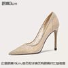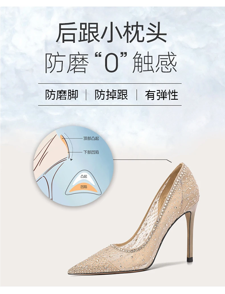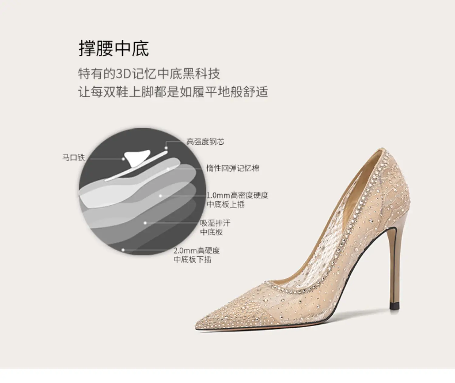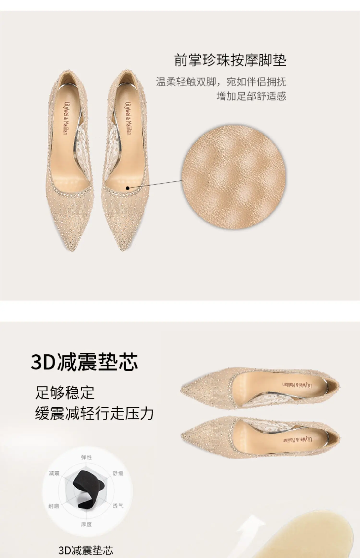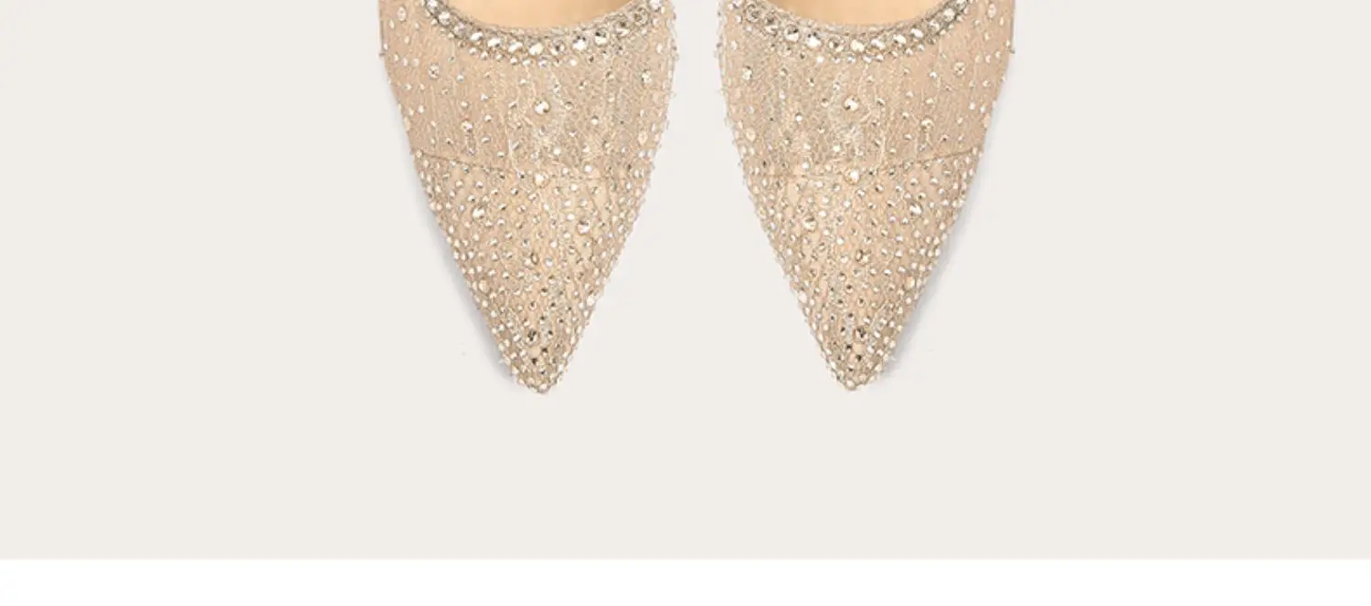 Spring and Summer New Pointed Rhinestone Lace Mesh Sandals Slim High Heel Party Dress Large and Small Women’s Single Shoes