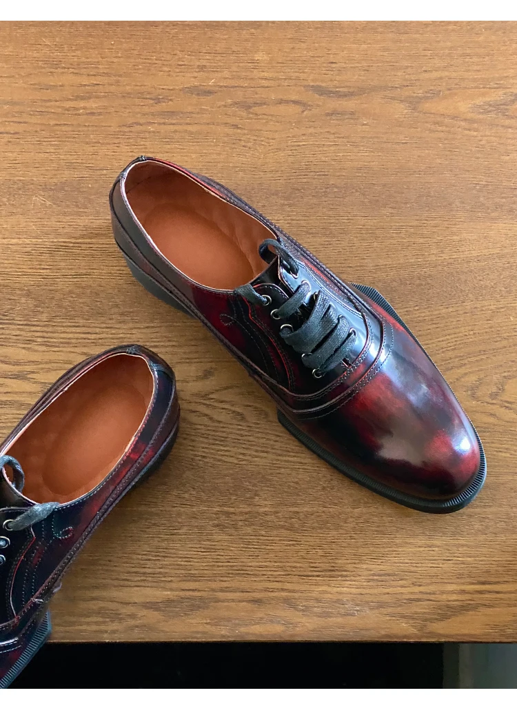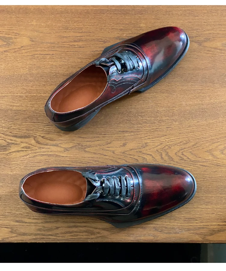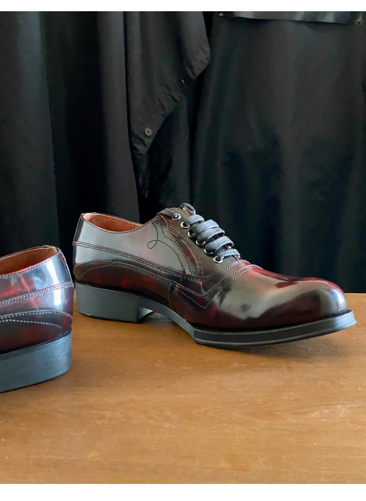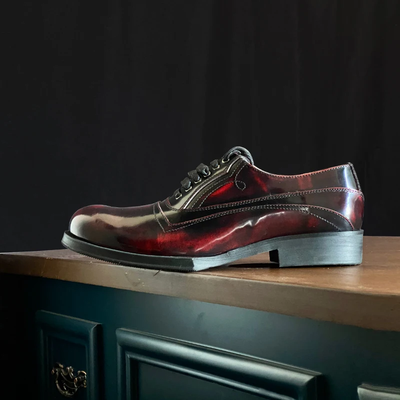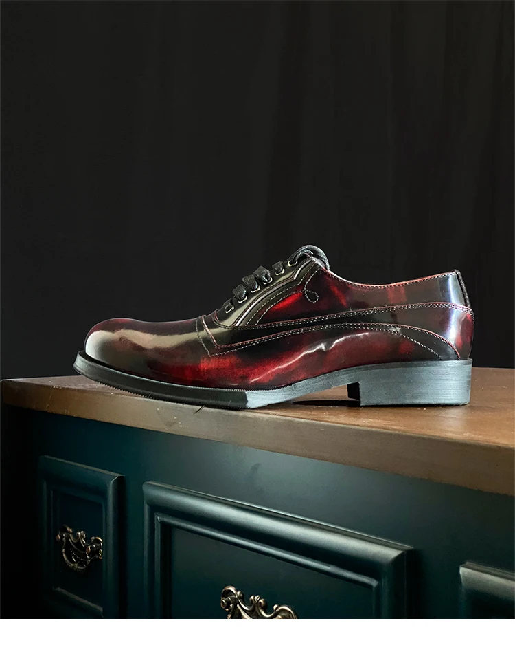 This is a pair of fashionable handmade leather lovers’ shoes,