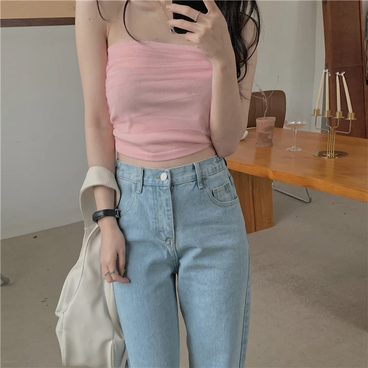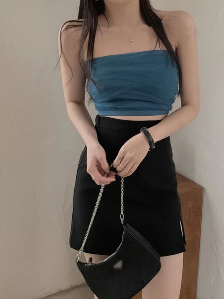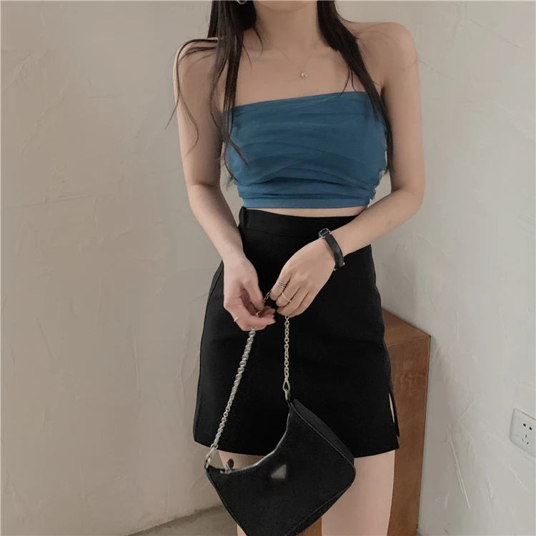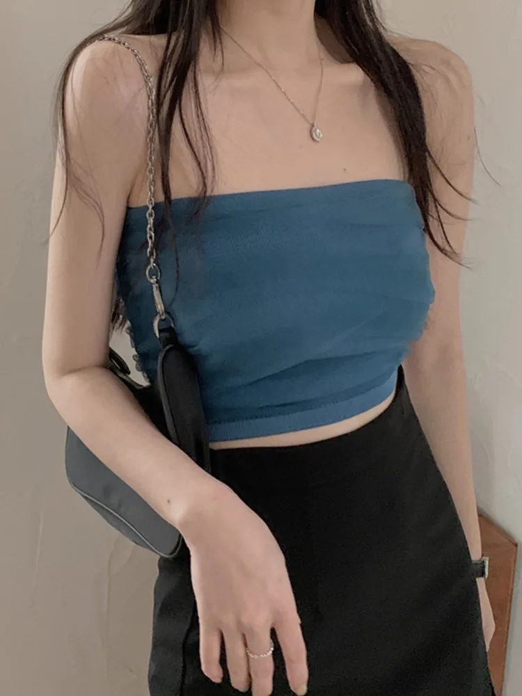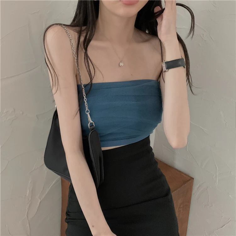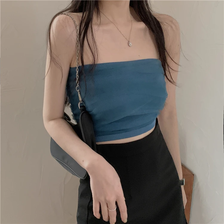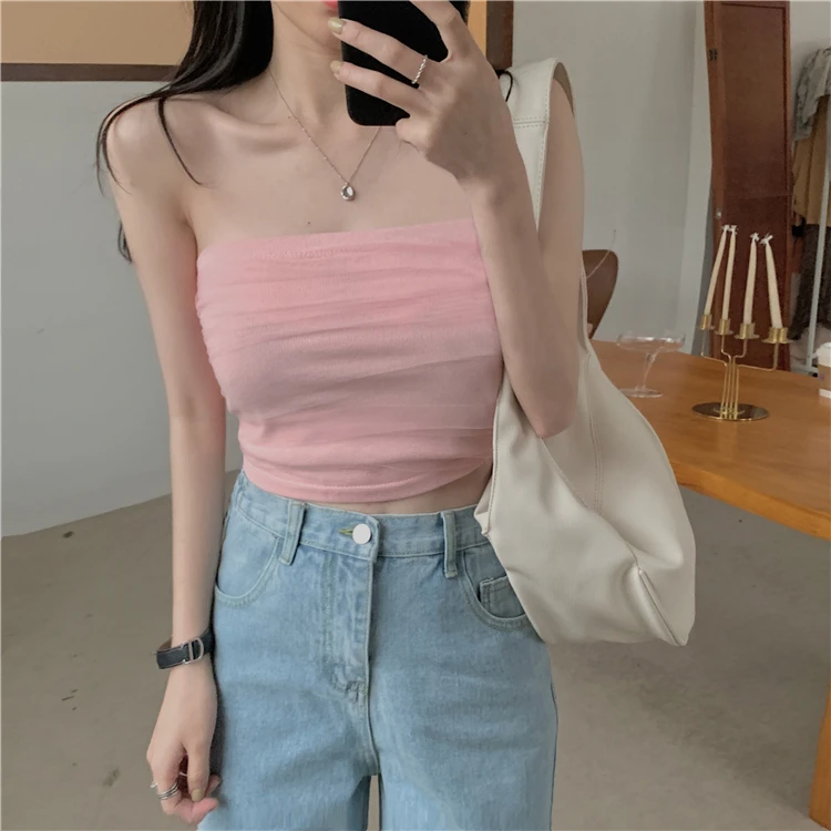 Spring and Summer New Sexy Strapless Mesh Tube Top Female Korean Version of Pure Color Used Navel Underwear Tube Top