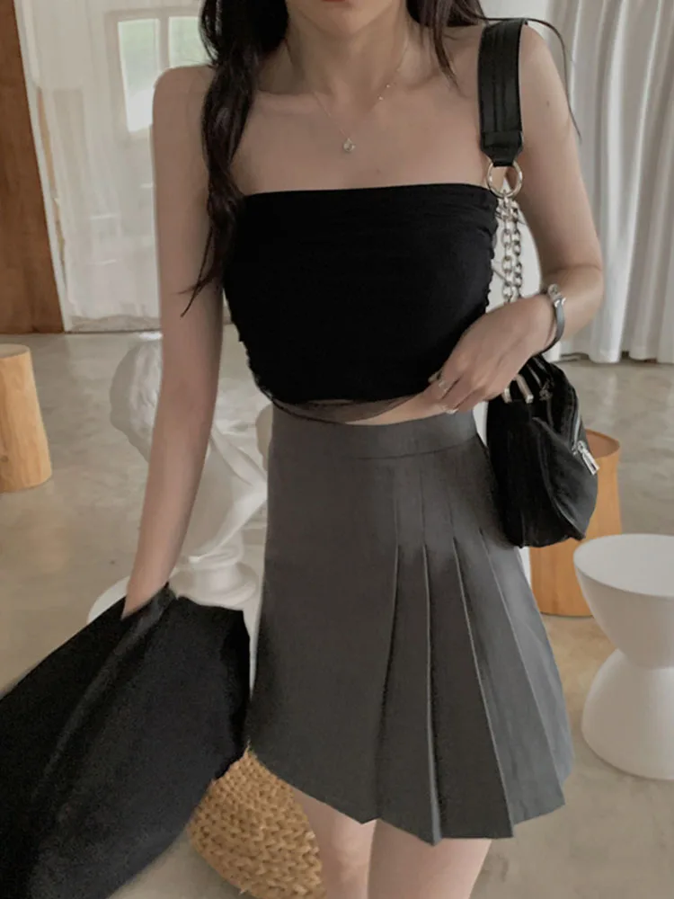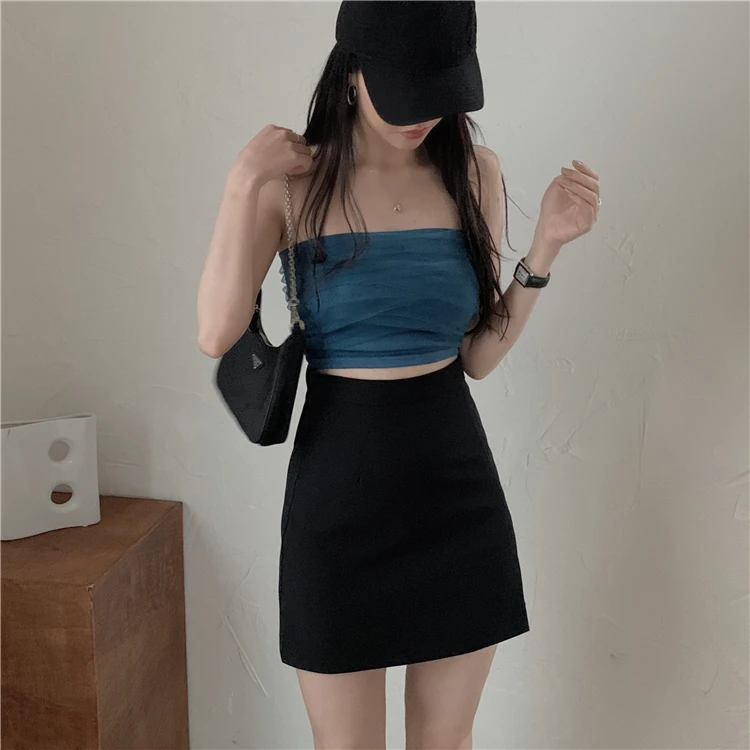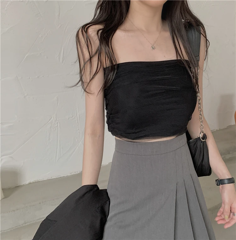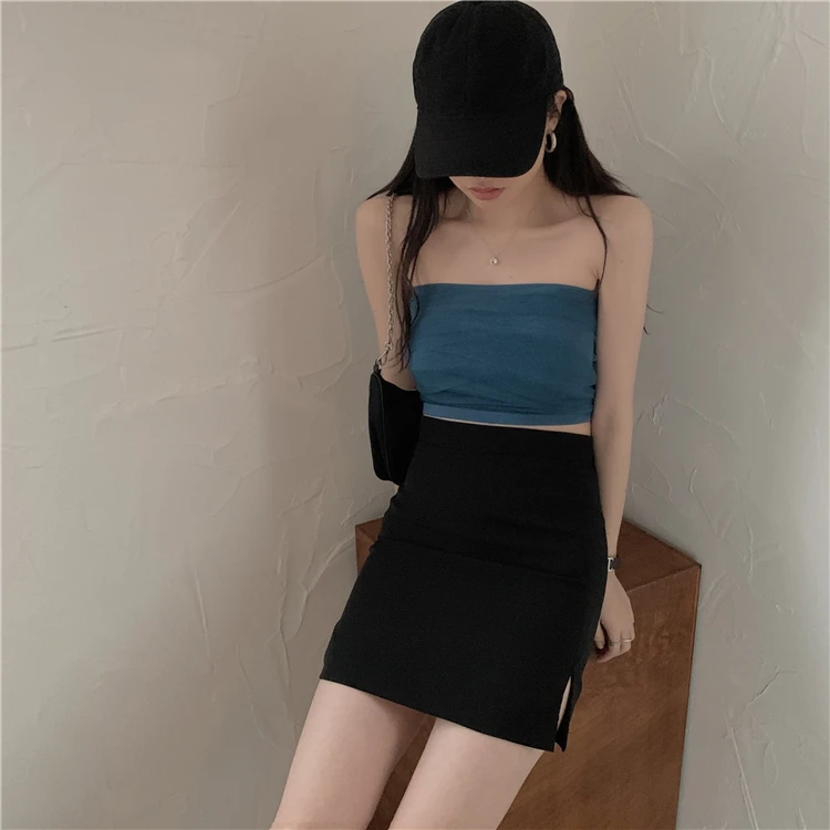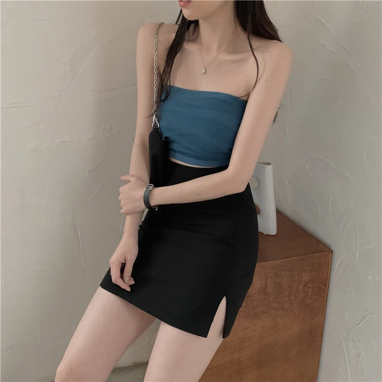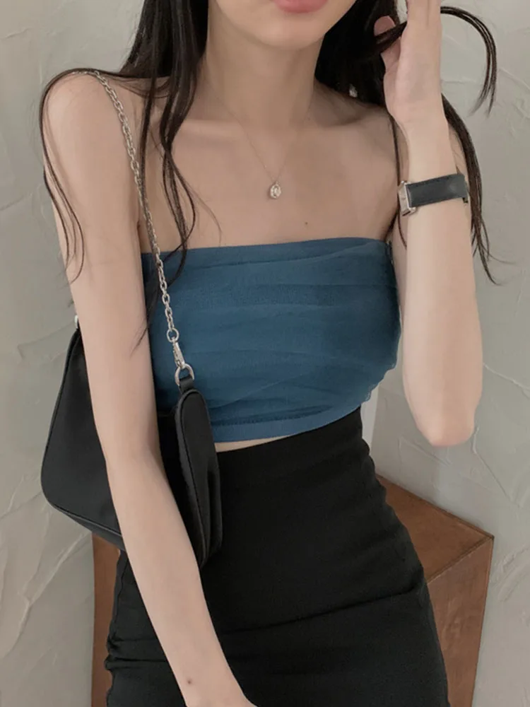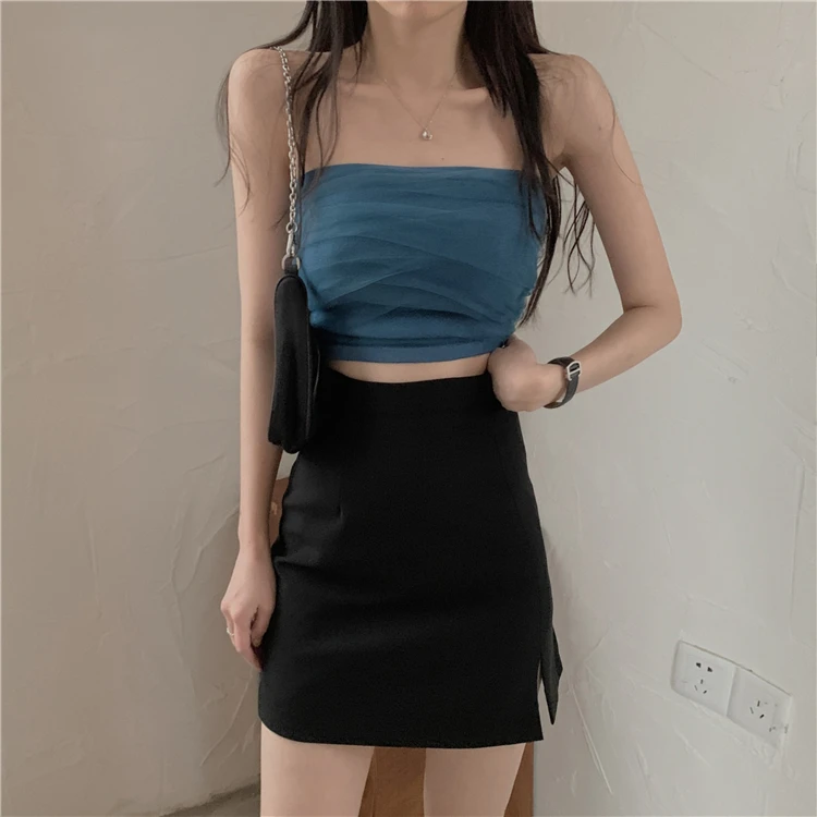 Spring and Summer New Sexy Strapless Mesh Tube Top Female Korean Version of Pure Color Used Navel Underwear Tube Top