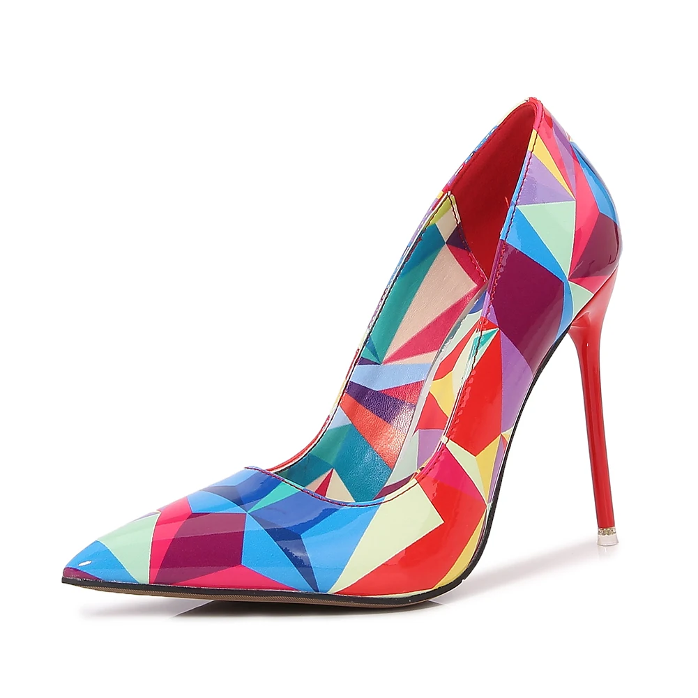 Spring Autumn 11cm Thin High Heels Pumps Pointed Toe Multicolour Stilettos Sexy Ladies Wedding Shoes Woman Big Size 35-44 45 46