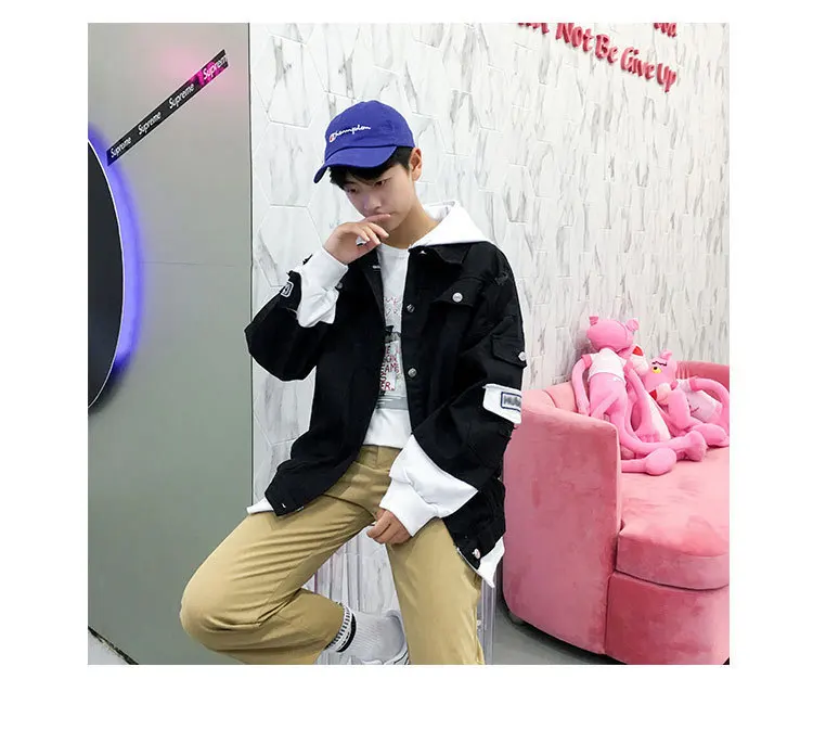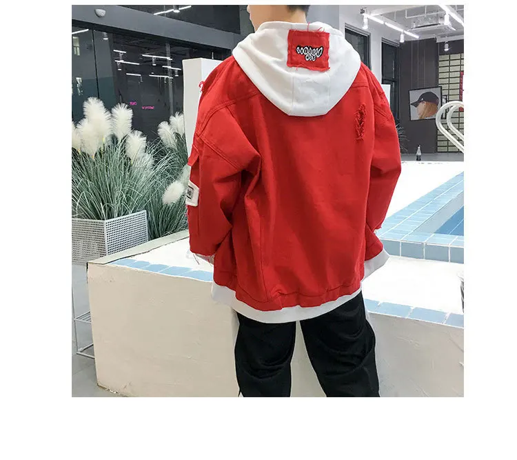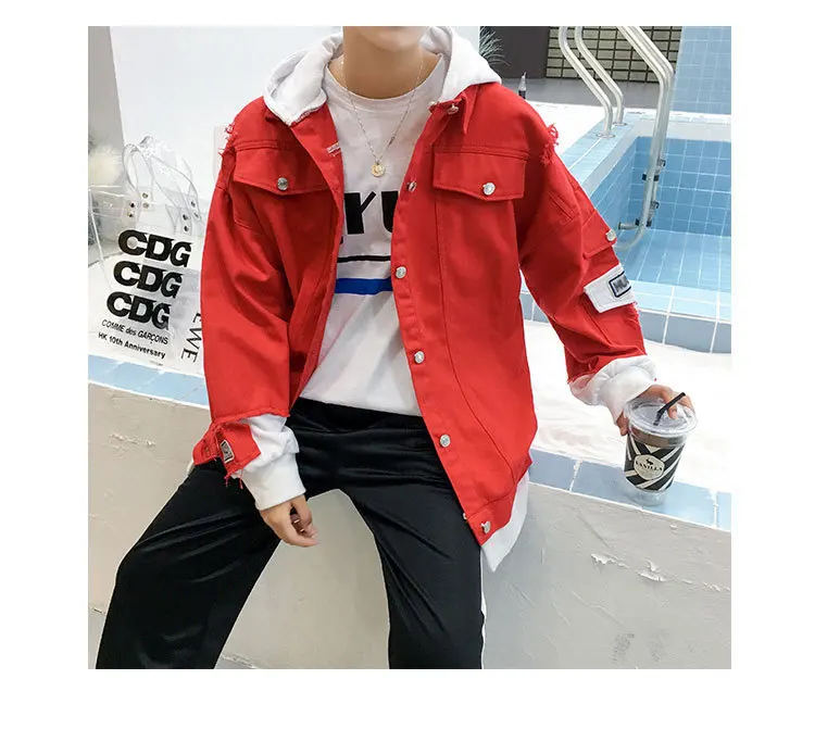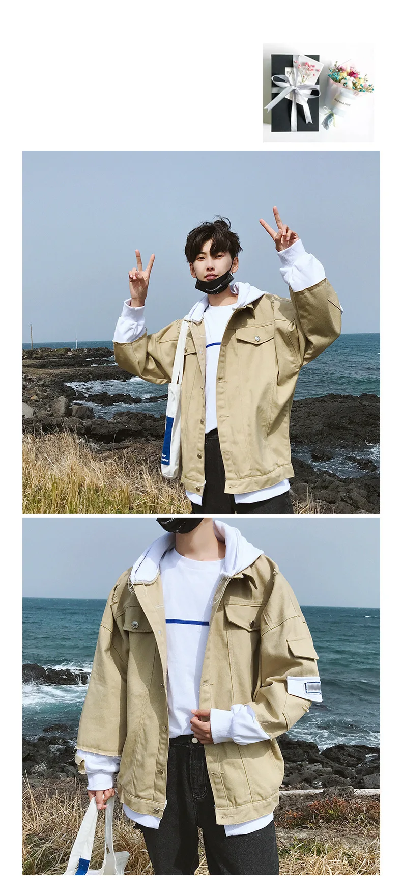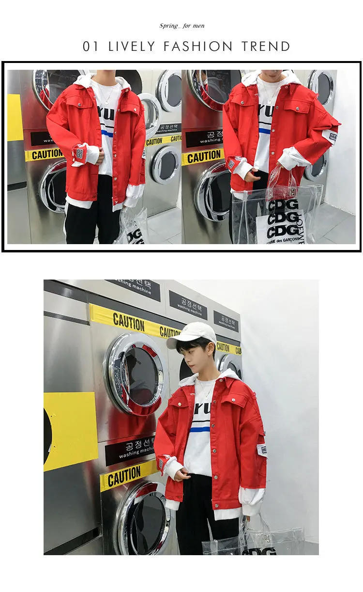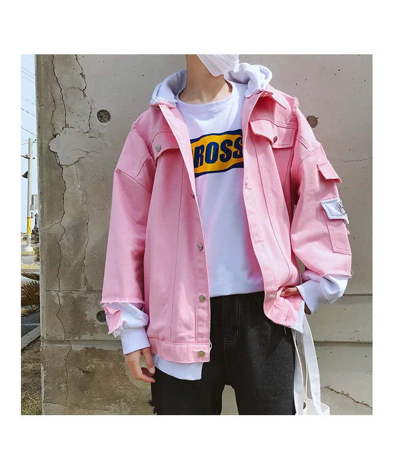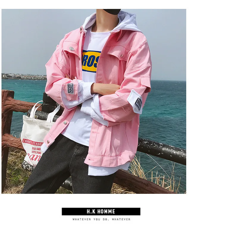 Spring autumn 2020 new street loose teenager pink denim jacket mens Korean trendy hooded handsome jacket male student loose coat